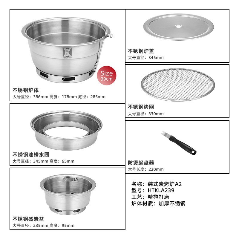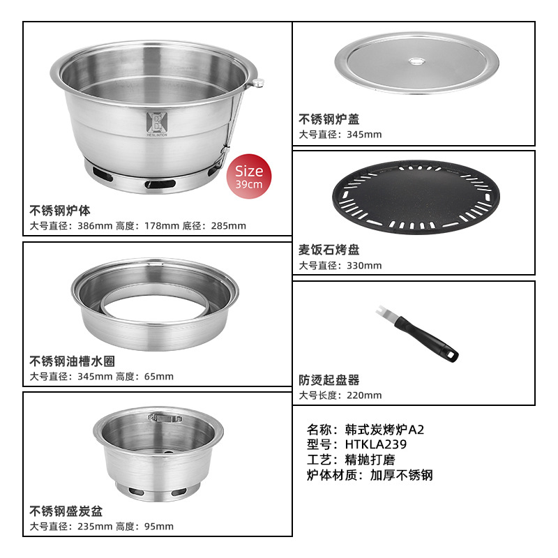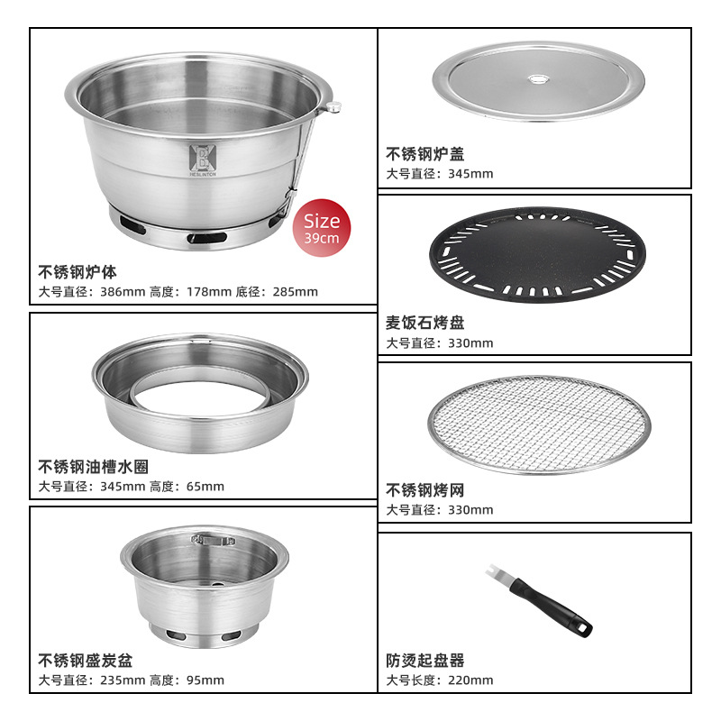 두꺼운 스테인레스 스틸 한국 탄소 오븐 상업용 원형 바베큐 오븐 레스토랑 Maifan 돌 붙지 않는 숯 바베큐 오븐