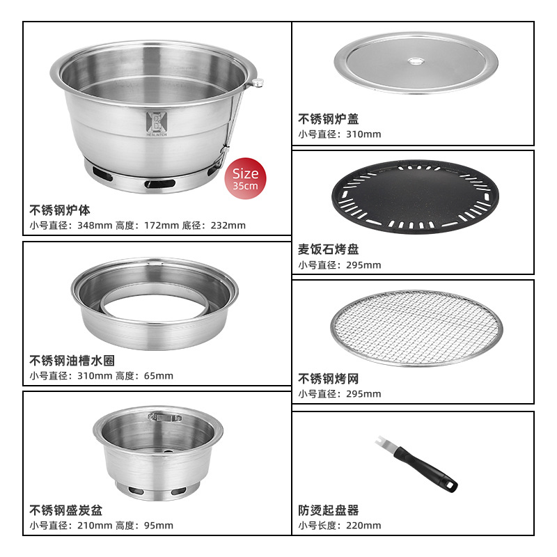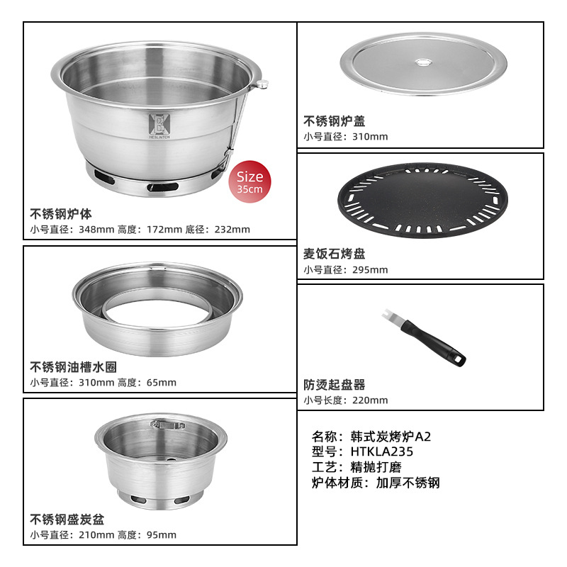 두꺼운 스테인레스 스틸 한국 탄소 오븐 상업용 원형 바베큐 오븐 레스토랑 Maifan 돌 붙지 않는 숯 바베큐 오븐스토어 가기