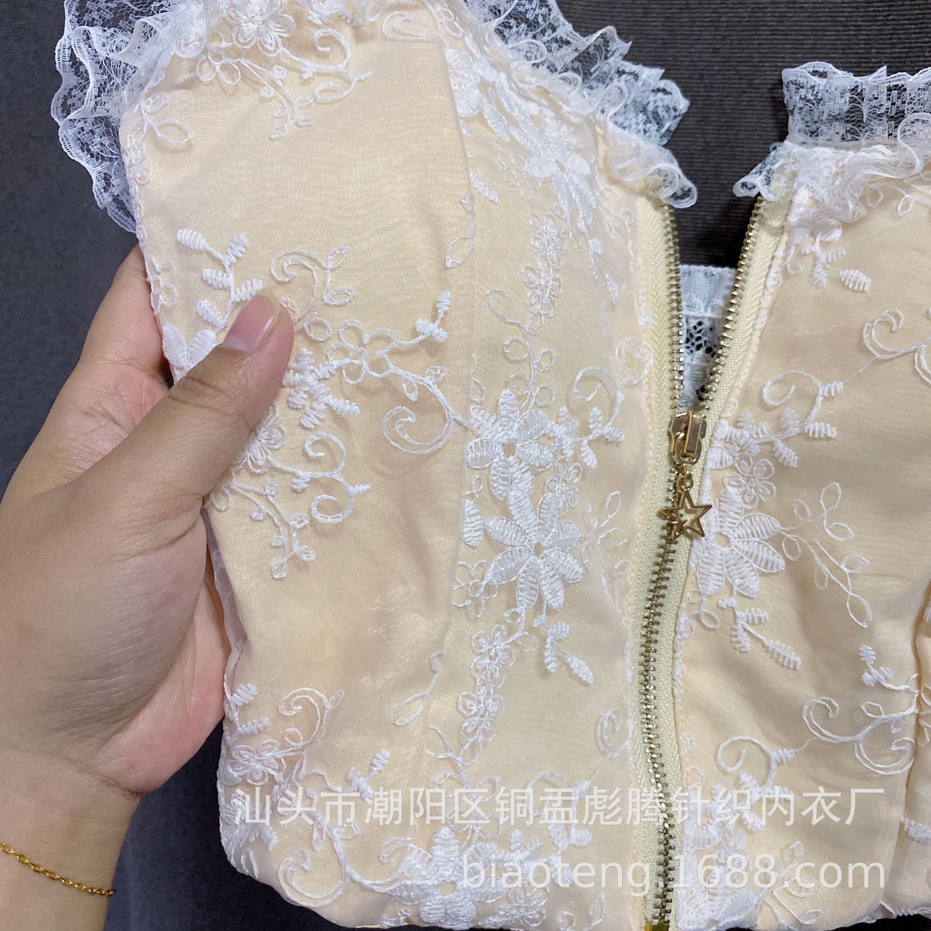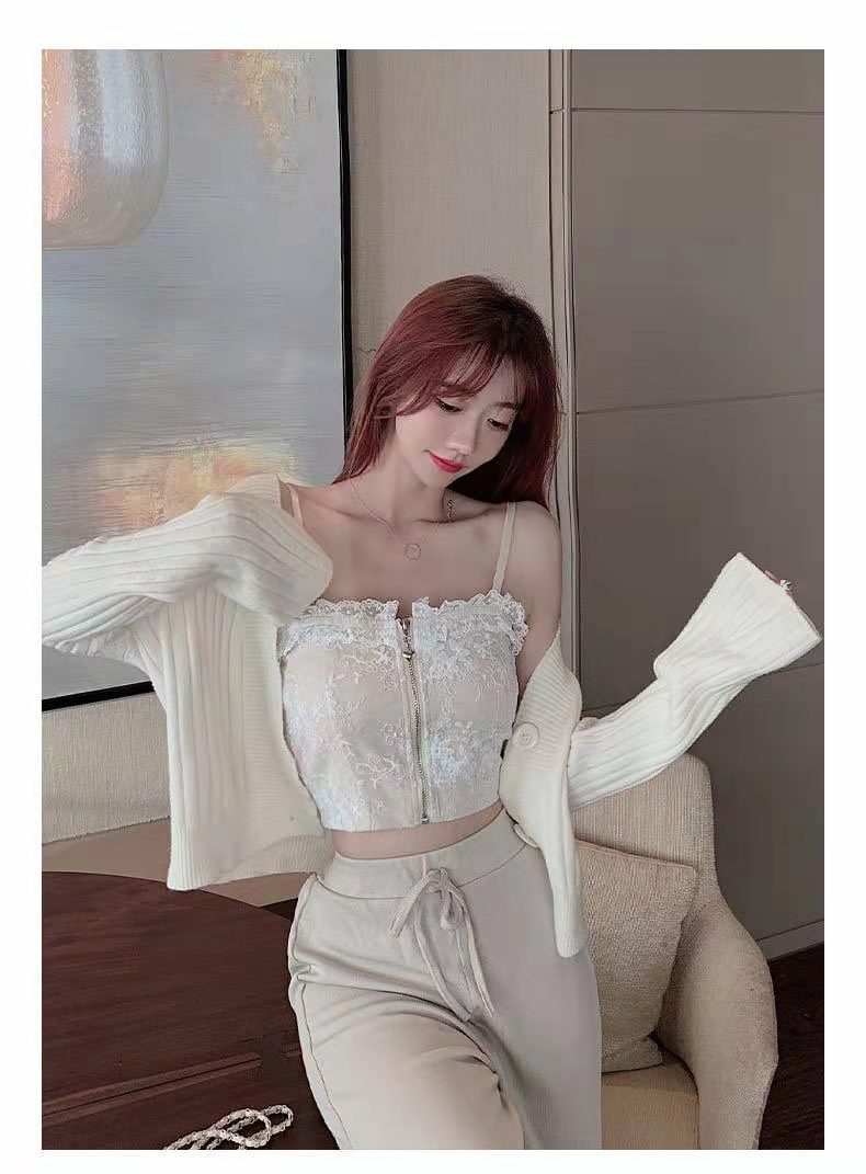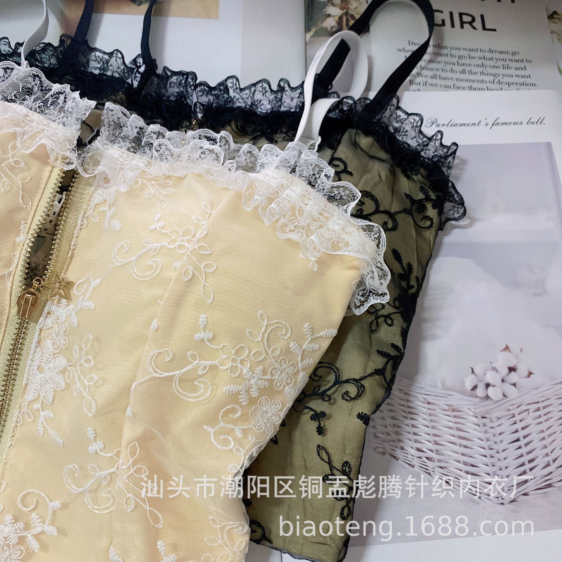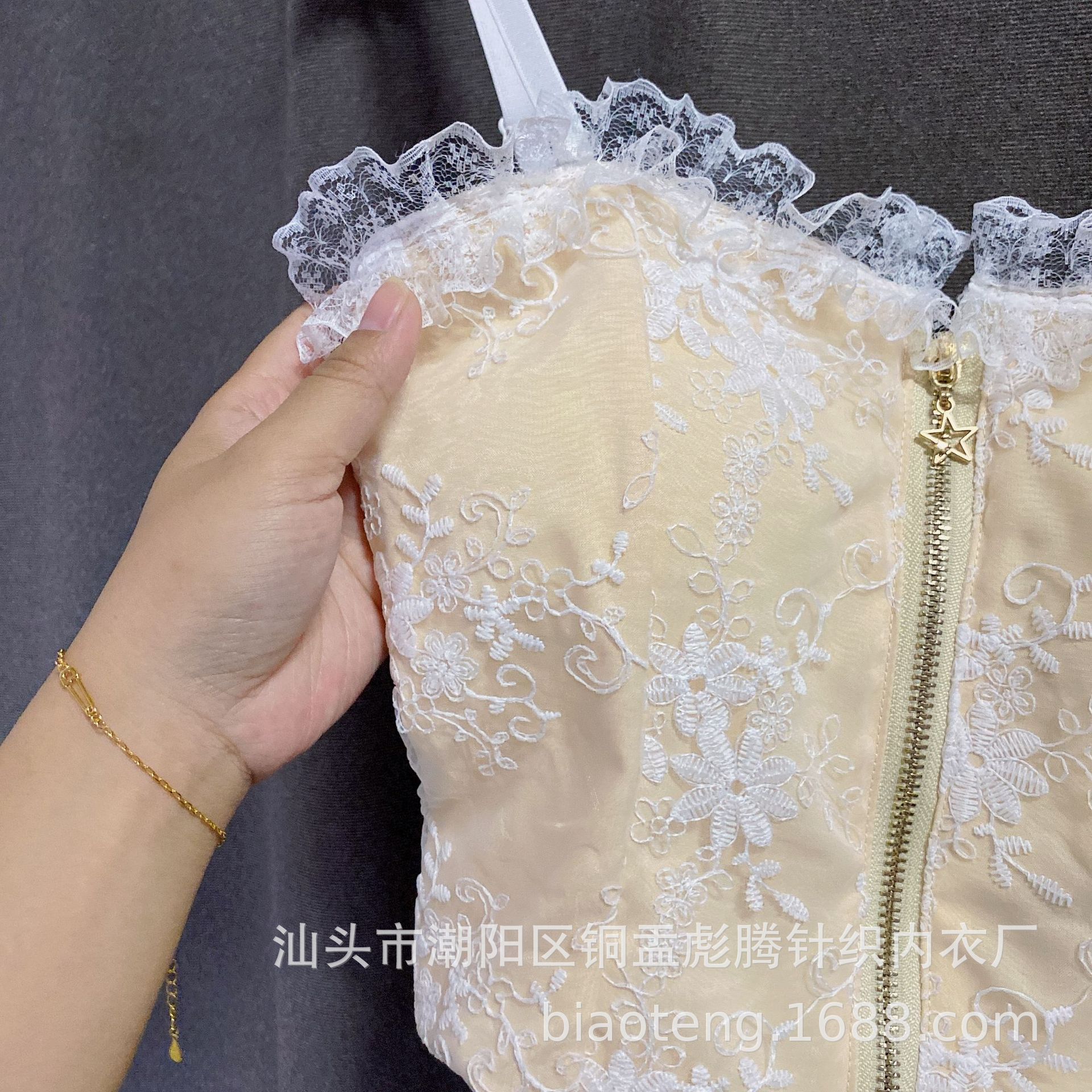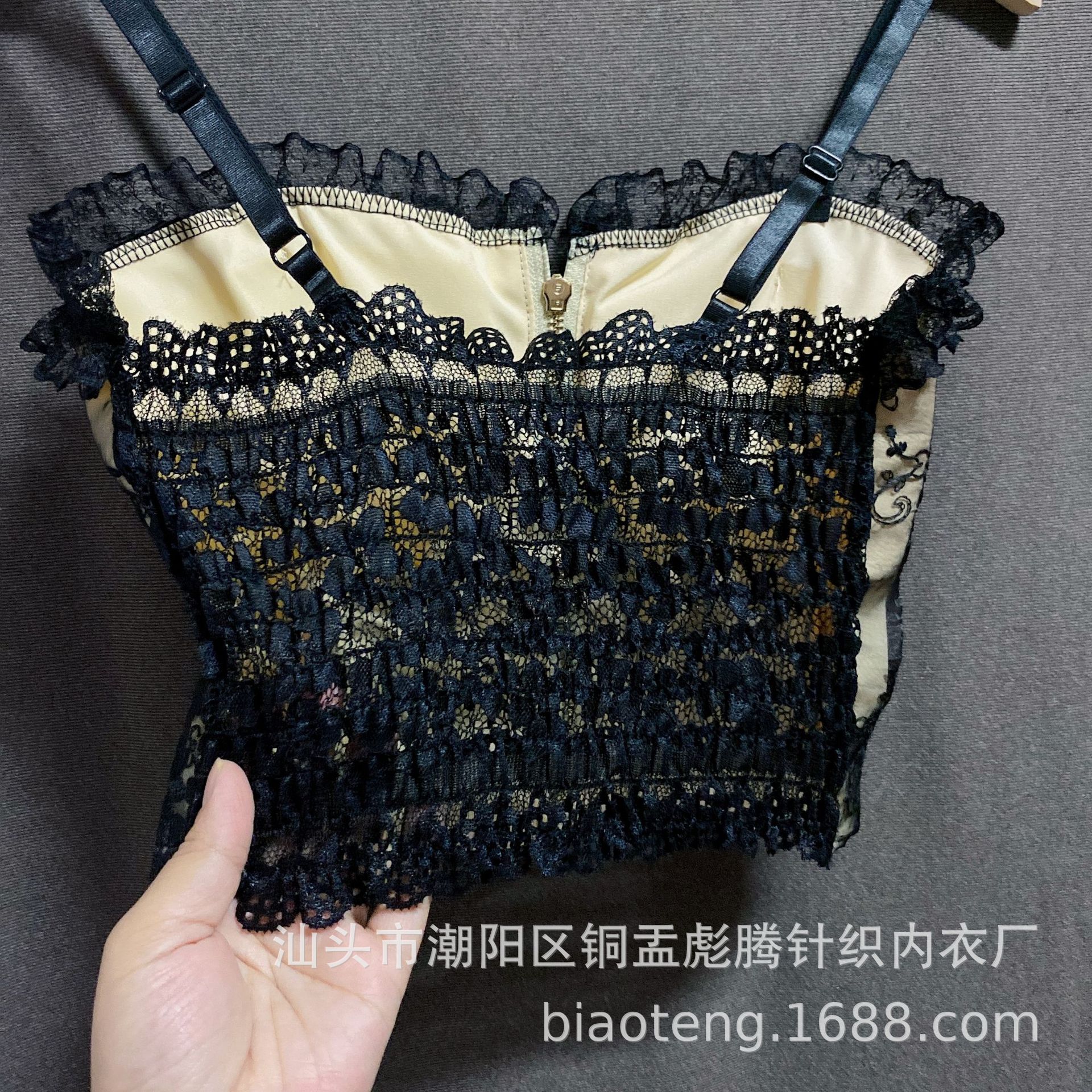 아름다운 등 레이스 레이스 지퍼 작은 캐미솔 조끼 여성용 여름 겉옷 가슴 패드가있는 청소년 민소매 탑
