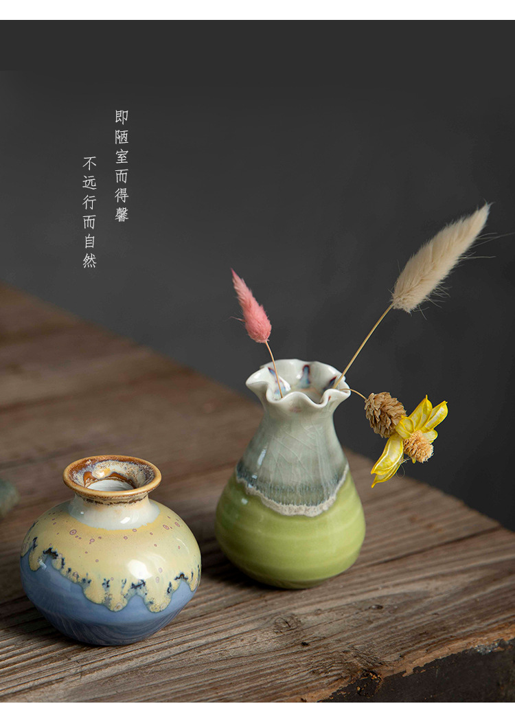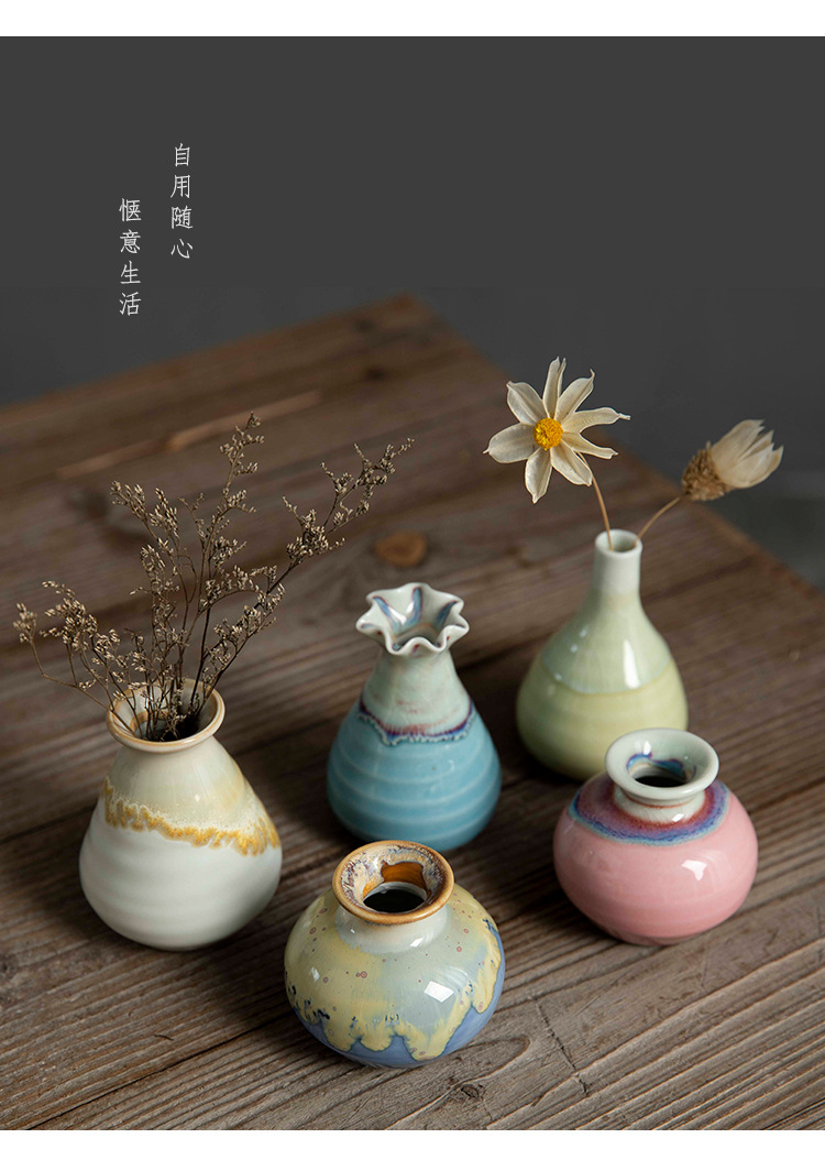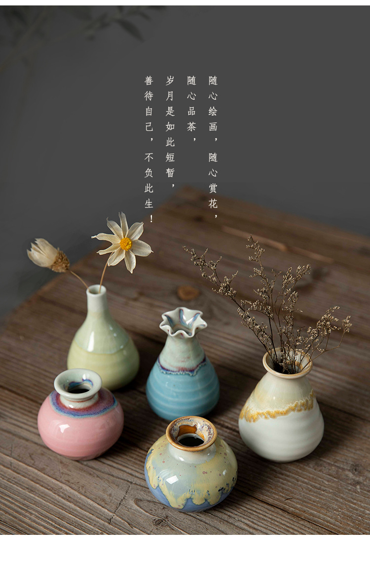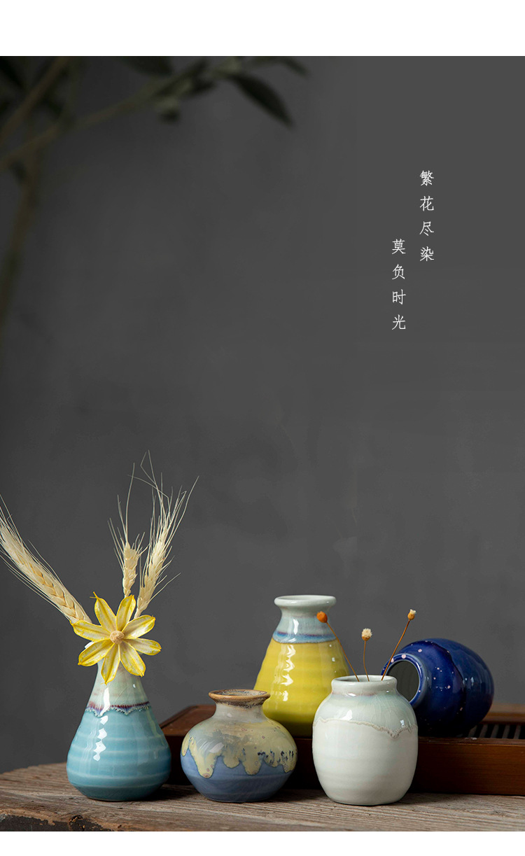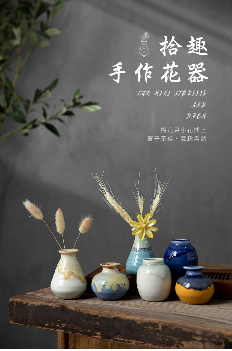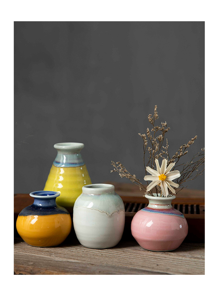 Jingdezhen 크리 에이 티브 스타일 미니 세라믹 꽃병 말린 꽃 사진 소품 예술적 장식 마카롱스토어 가기