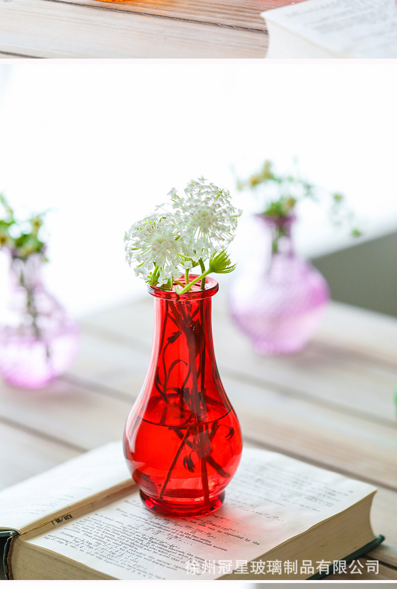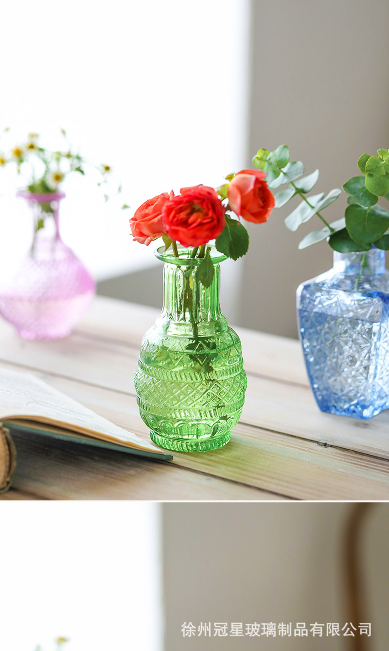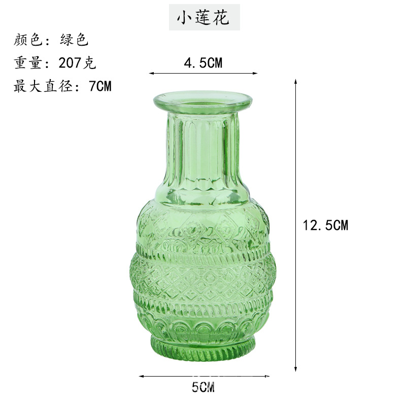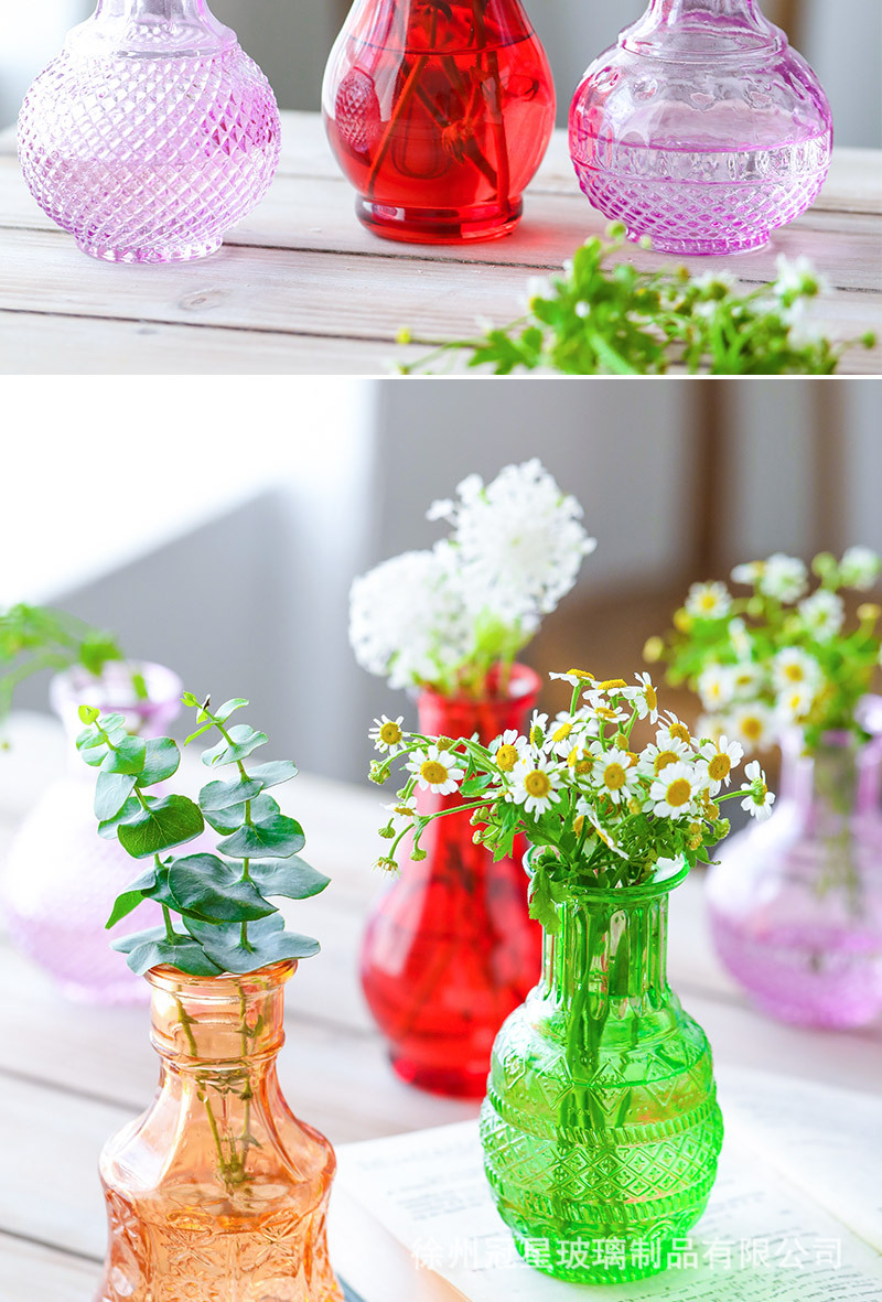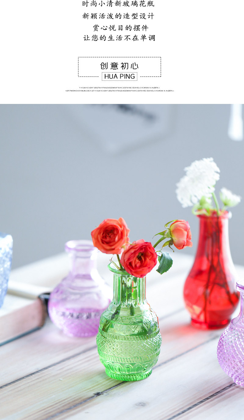 유럽 스타일 크리 에이 티브 스몰 사이즈 유리 꽃병 가정용 작은 입 꽃 장식 장식품 배열 거실 녹색 백합 수경 재배