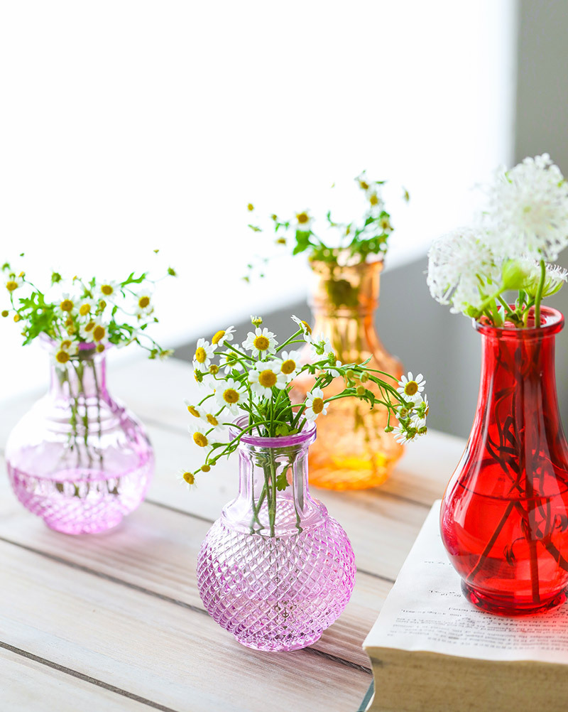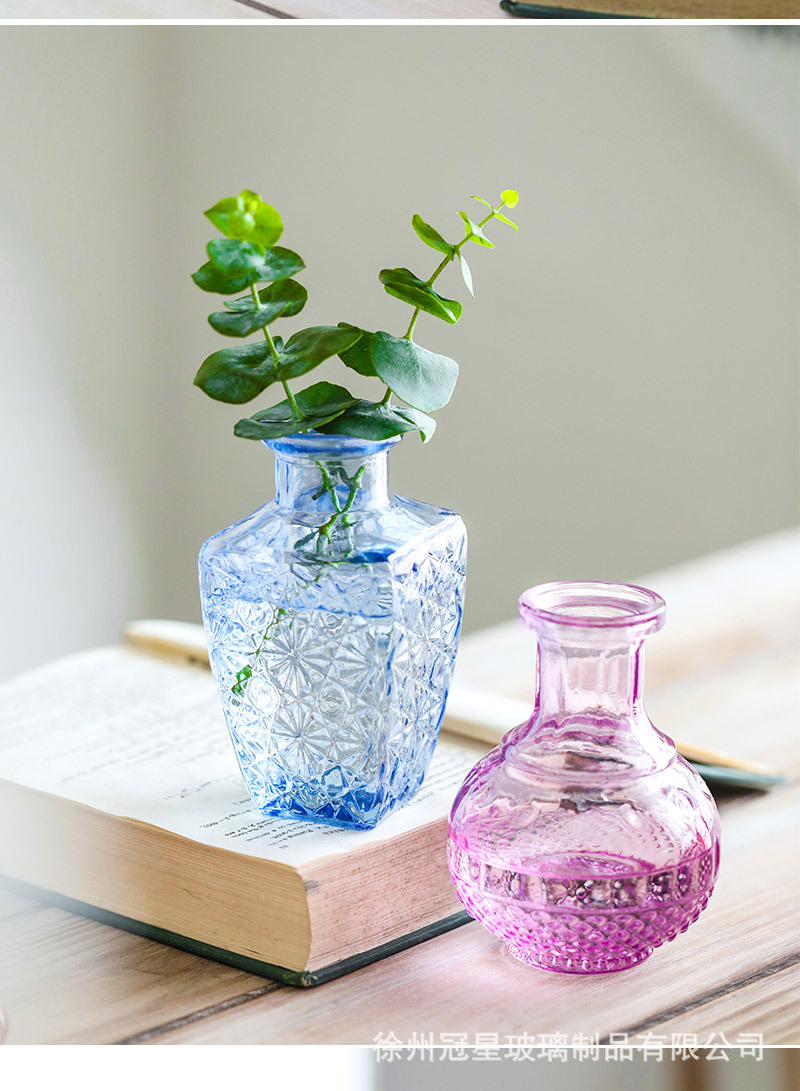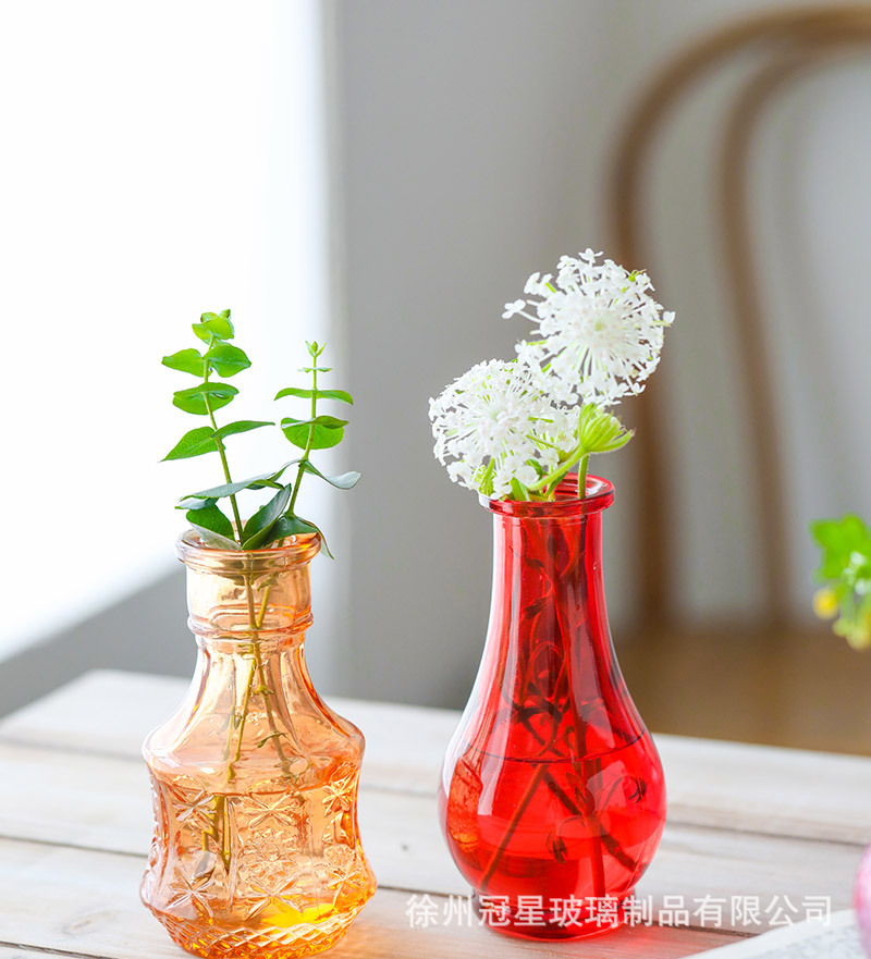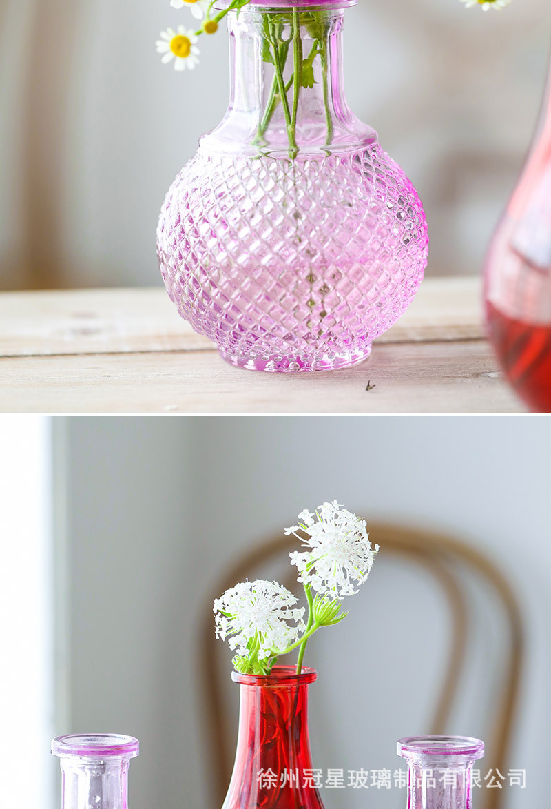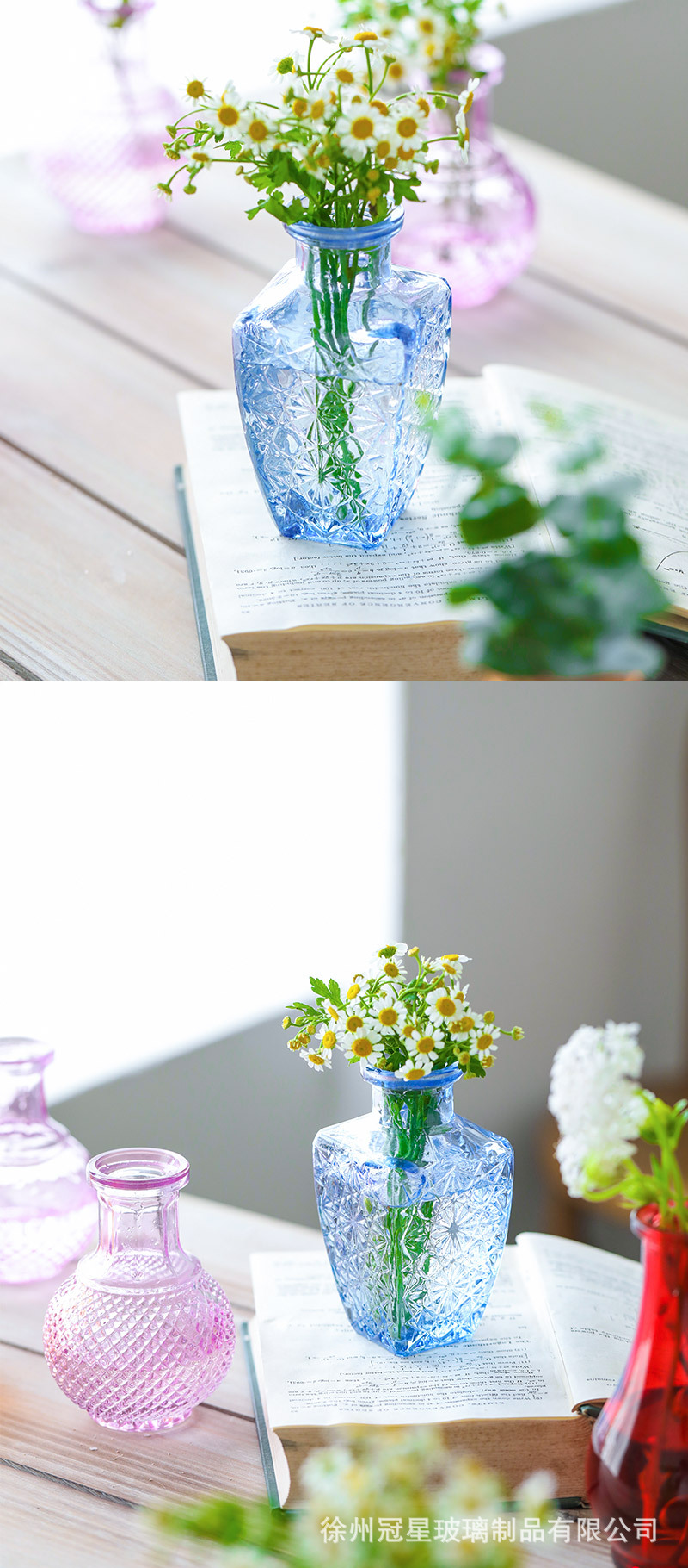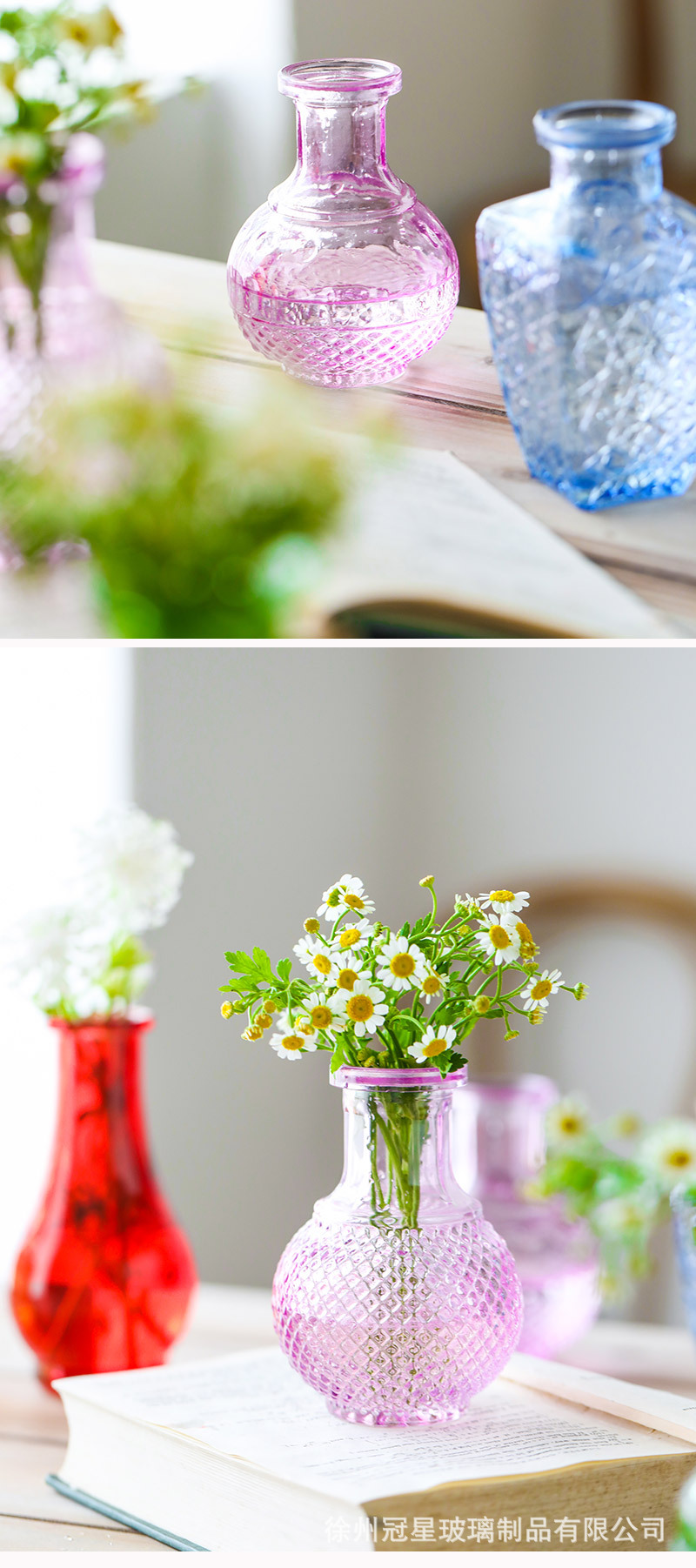 유럽 스타일 크리 에이 티브 스몰 사이즈 유리 꽃병 가정용 작은 입 꽃 장식 장식품 배열 거실 녹색 백합 수경 재배