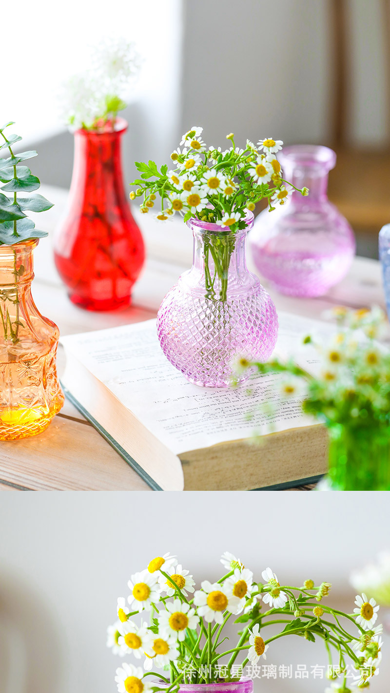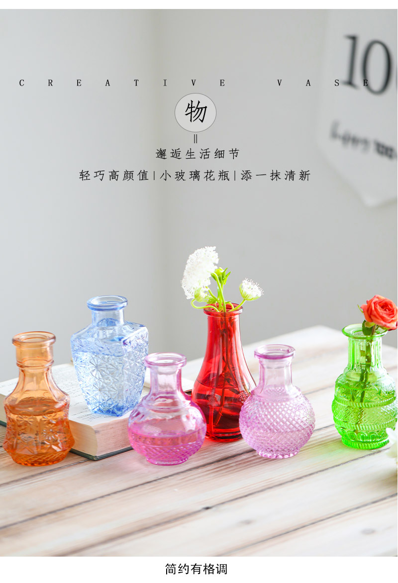 유럽 스타일 크리 에이 티브 스몰 사이즈 유리 꽃병 가정용 작은 입 꽃 장식 장식품 배열 거실 녹색 백합 수경 재배스토어 가기