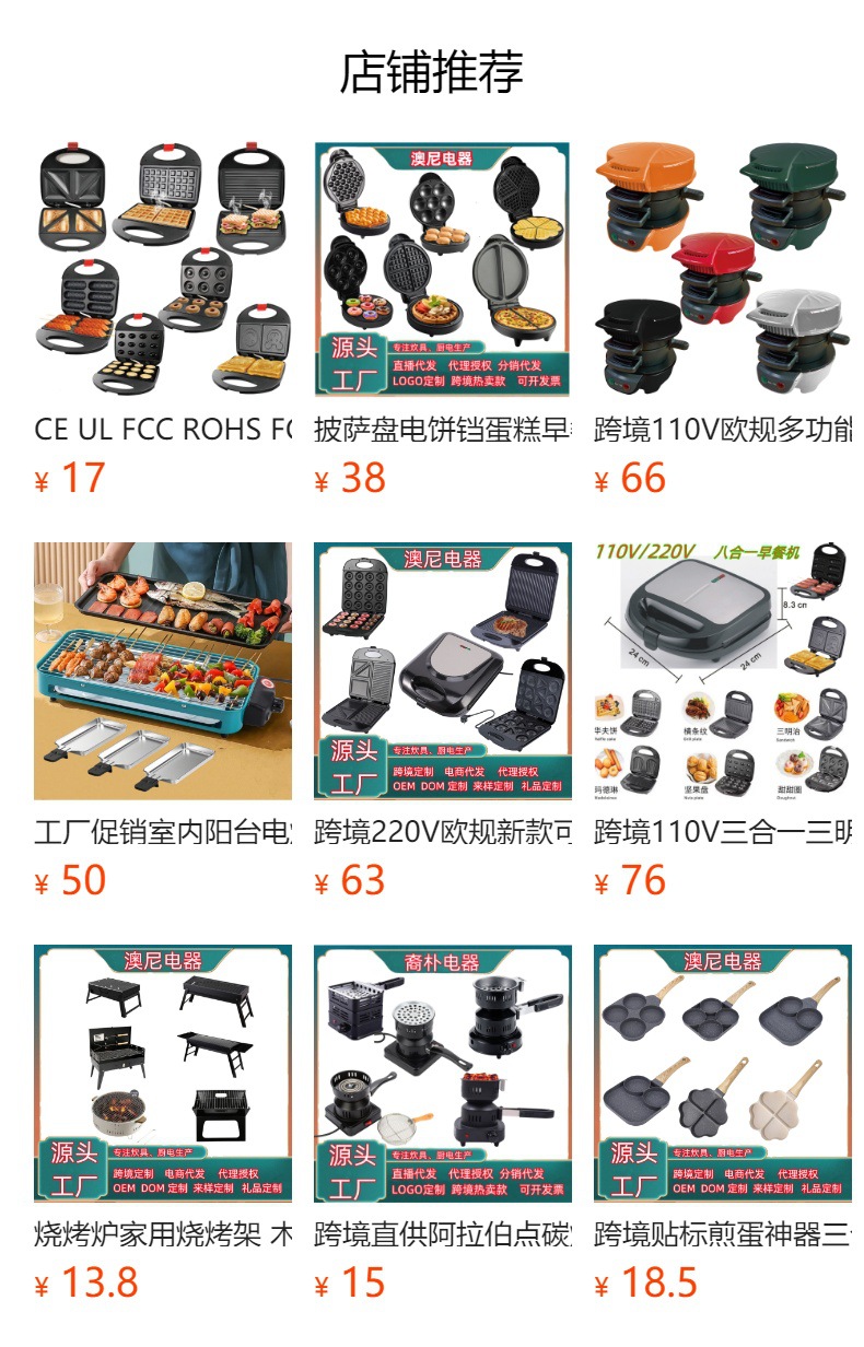 크로스보더 와플 메이커, 소시지 메이커, 버거 메이커, 계란 프라이 메이커, 스테이크 메이커, 샌드위치 메이커, 도넛 메이커, 버거 메이커