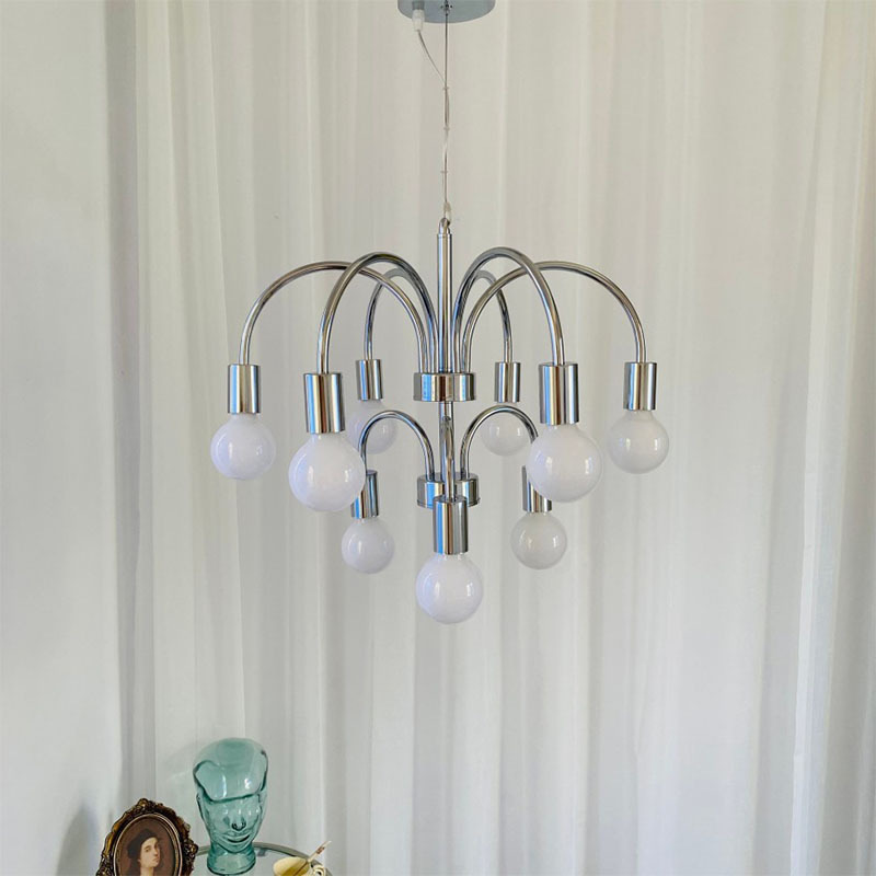 북유럽 단순 중간 고대 금속 원자 금도금 크롬 10 헤드 라이트 거실 모델 룸 카페 인터넷 연예인 샹들리에
