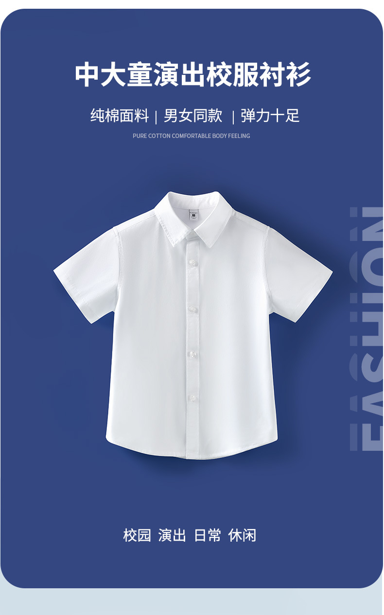 단색 어린이 교복 반팔 흰색 셔츠 아기 소년의 공연 의류 아기 소녀의 대학 스타일 순면 캐주얼 탑