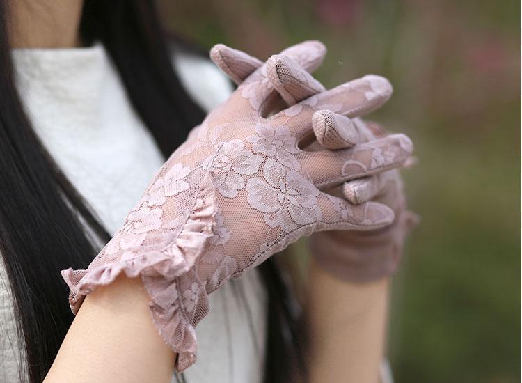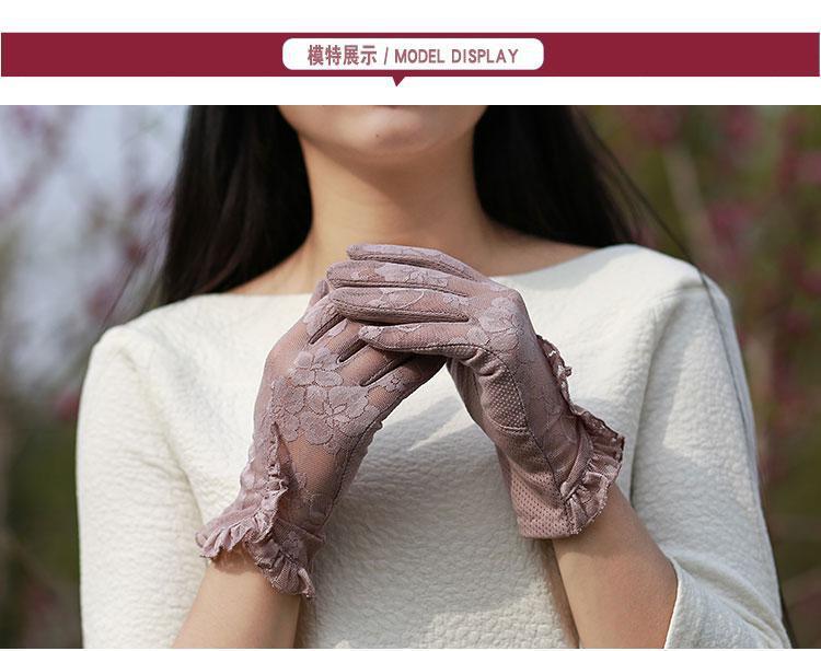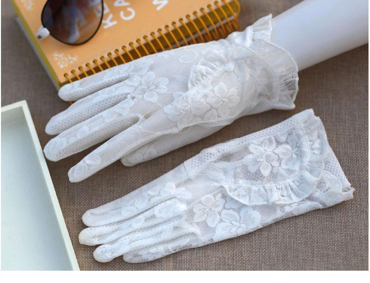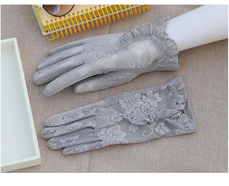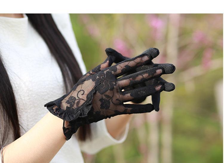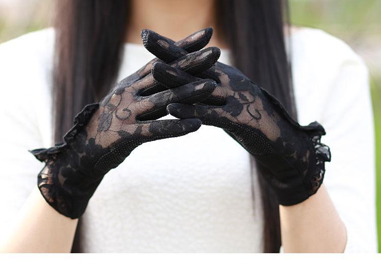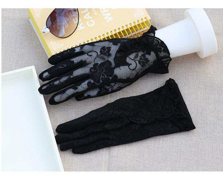 여름 레이스 짧은 섹시한 태양 보호 장갑 통기성 미끄럼 방지 터치 스크린 운전 여성 UV 보호 얇은 새로운 스타일스토어 가기