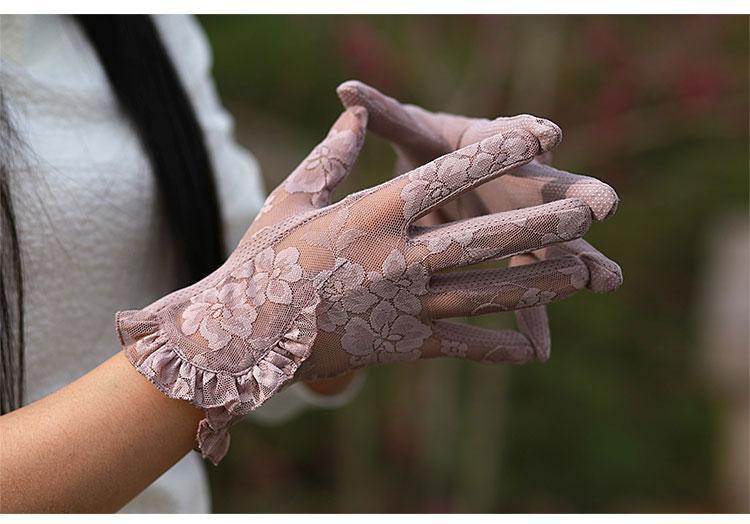 여름 레이스 짧은 섹시한 태양 보호 장갑 통기성 미끄럼 방지 터치 스크린 운전 여성 UV 보호 얇은 새로운 스타일