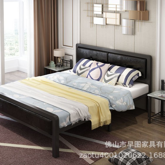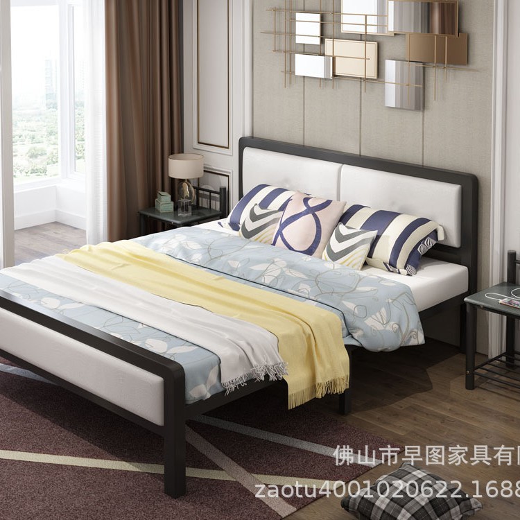 公寓床双人床铁艺床黄色布