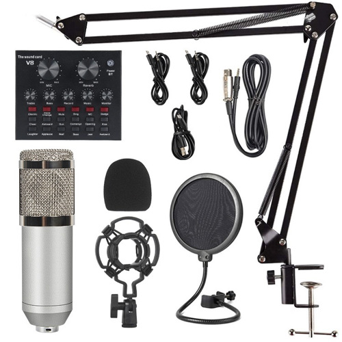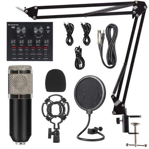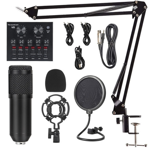 라이브 방송 세트 콘덴서 마이크 v8 녹음 장비 컴퓨터 앵커 가라오케 Douyin 외침 마이크 휴대 전화 사운드 카드