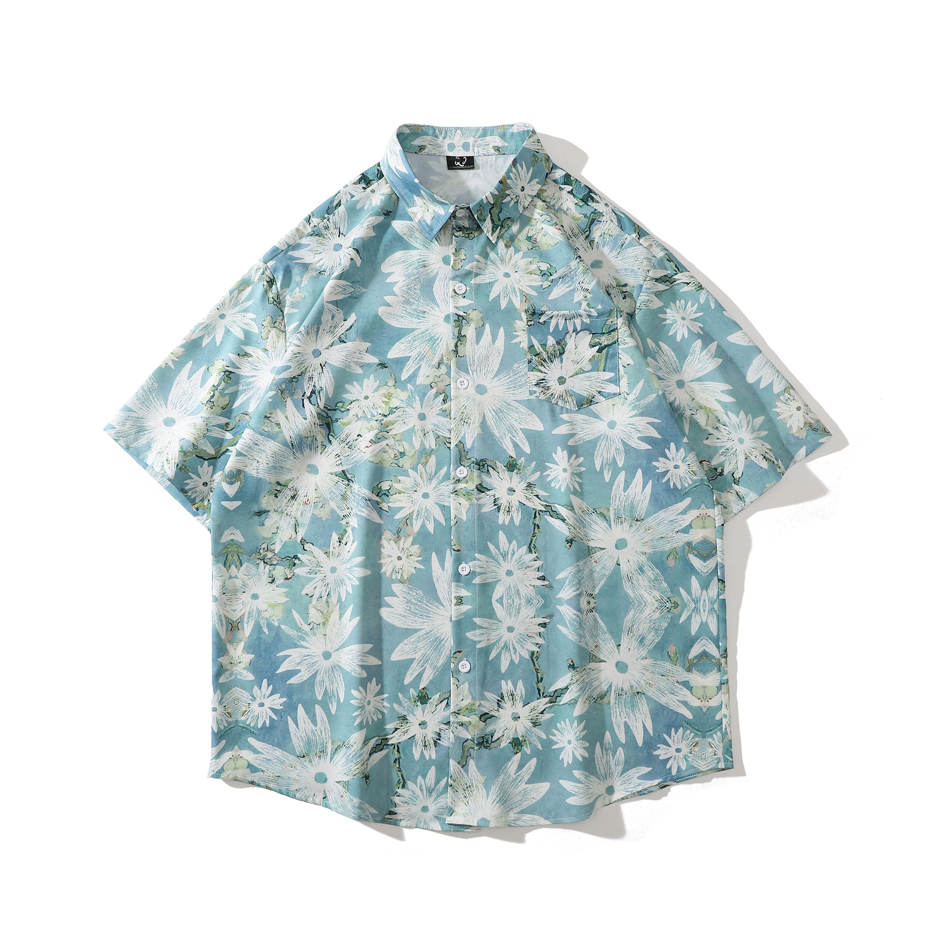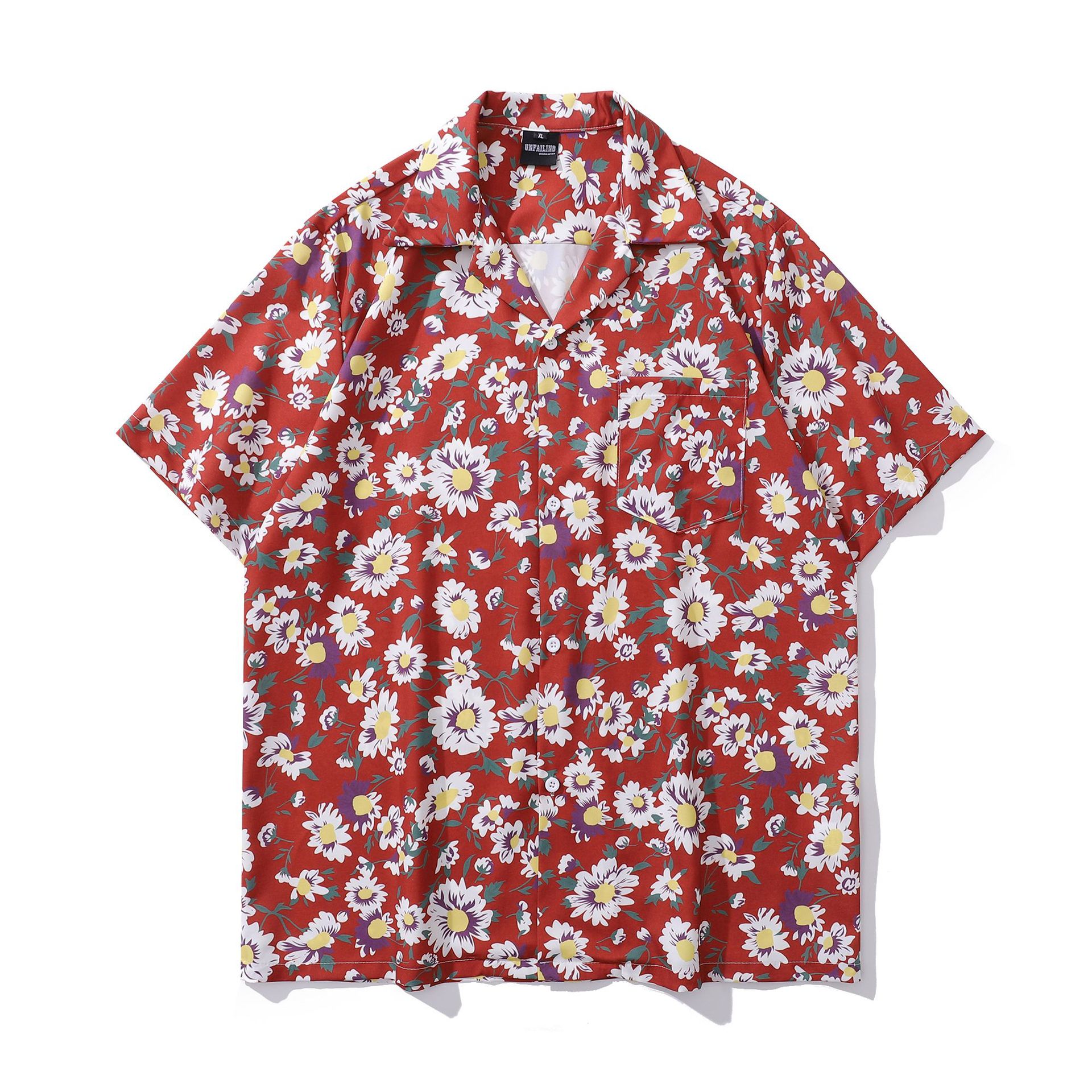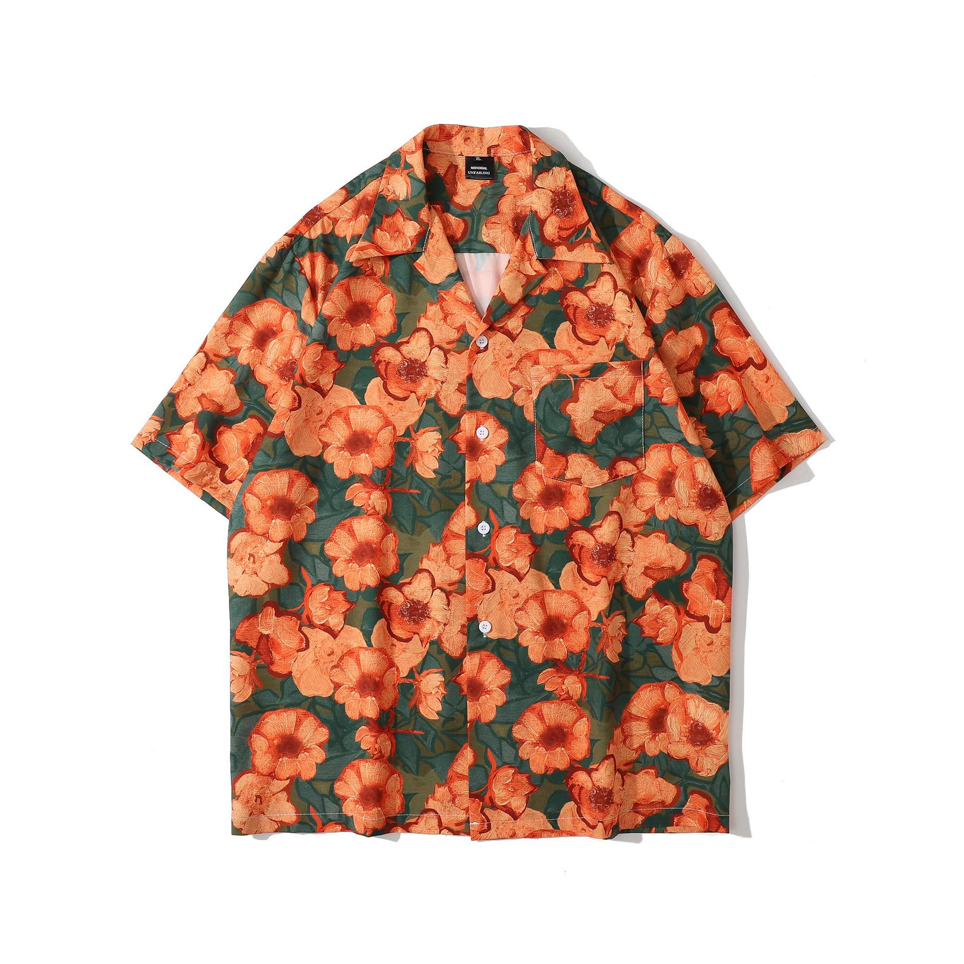 홍콩 스타일 커플 반팔 유화 빈티지 페인트 쿠바 풀 프린트 셔츠 소년과 소녀를위한 하와이안 셔츠스토어 가기
