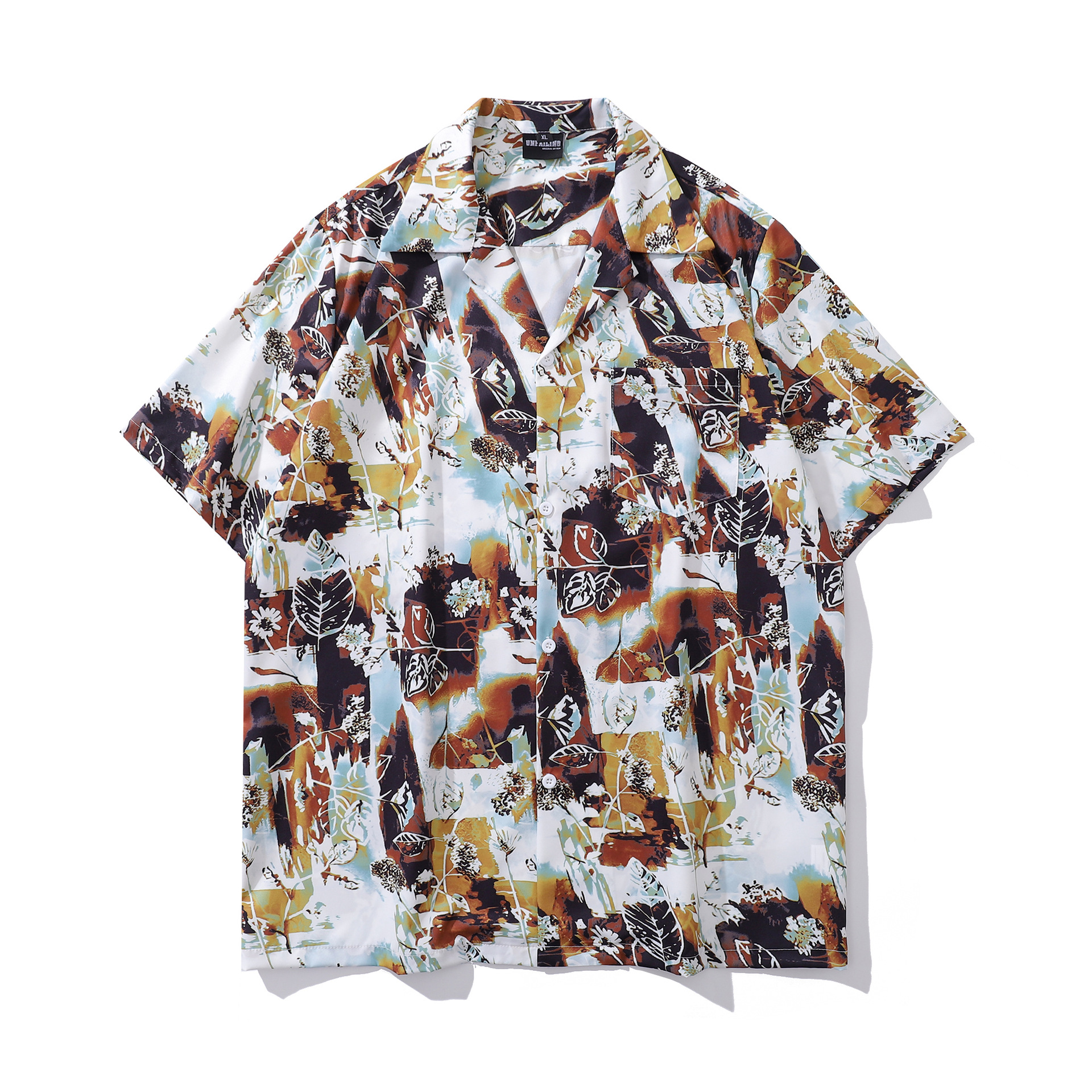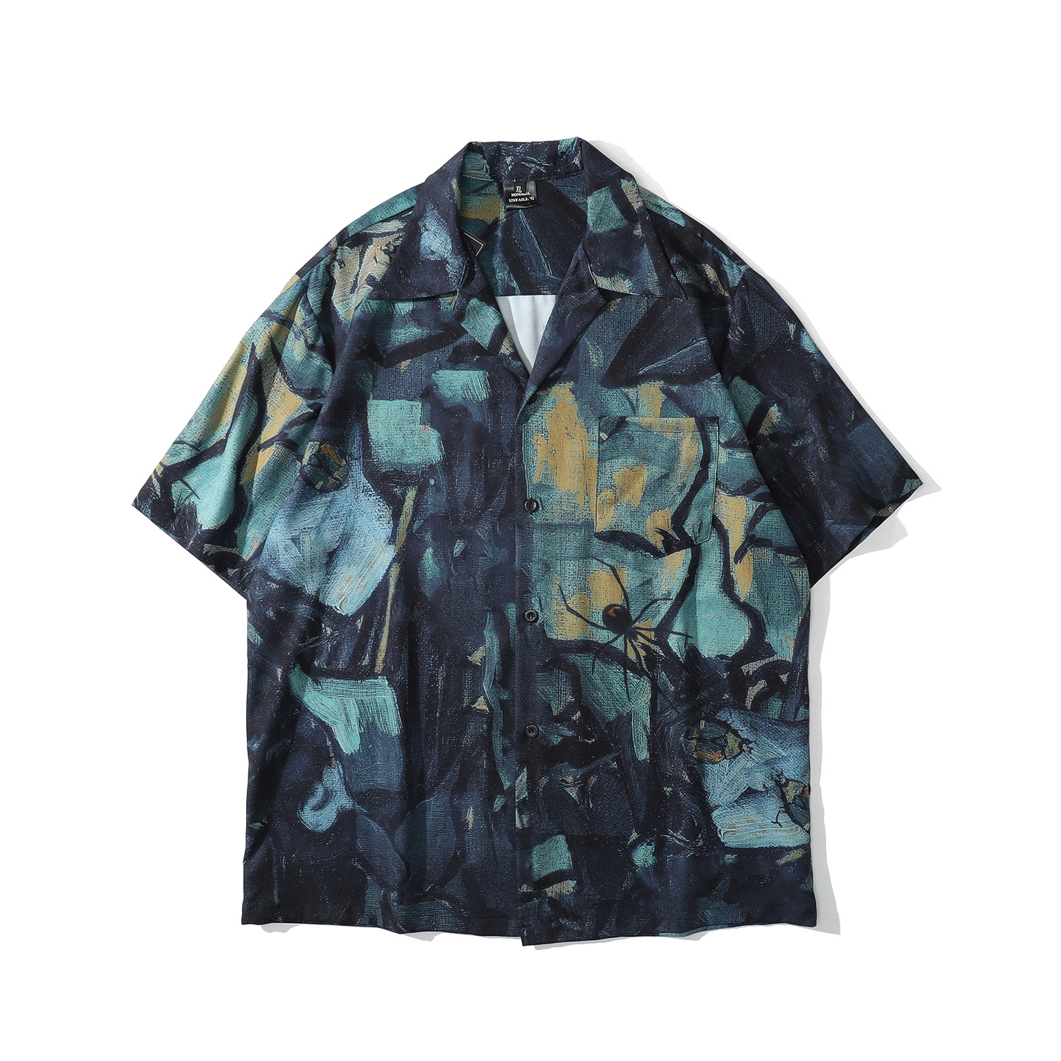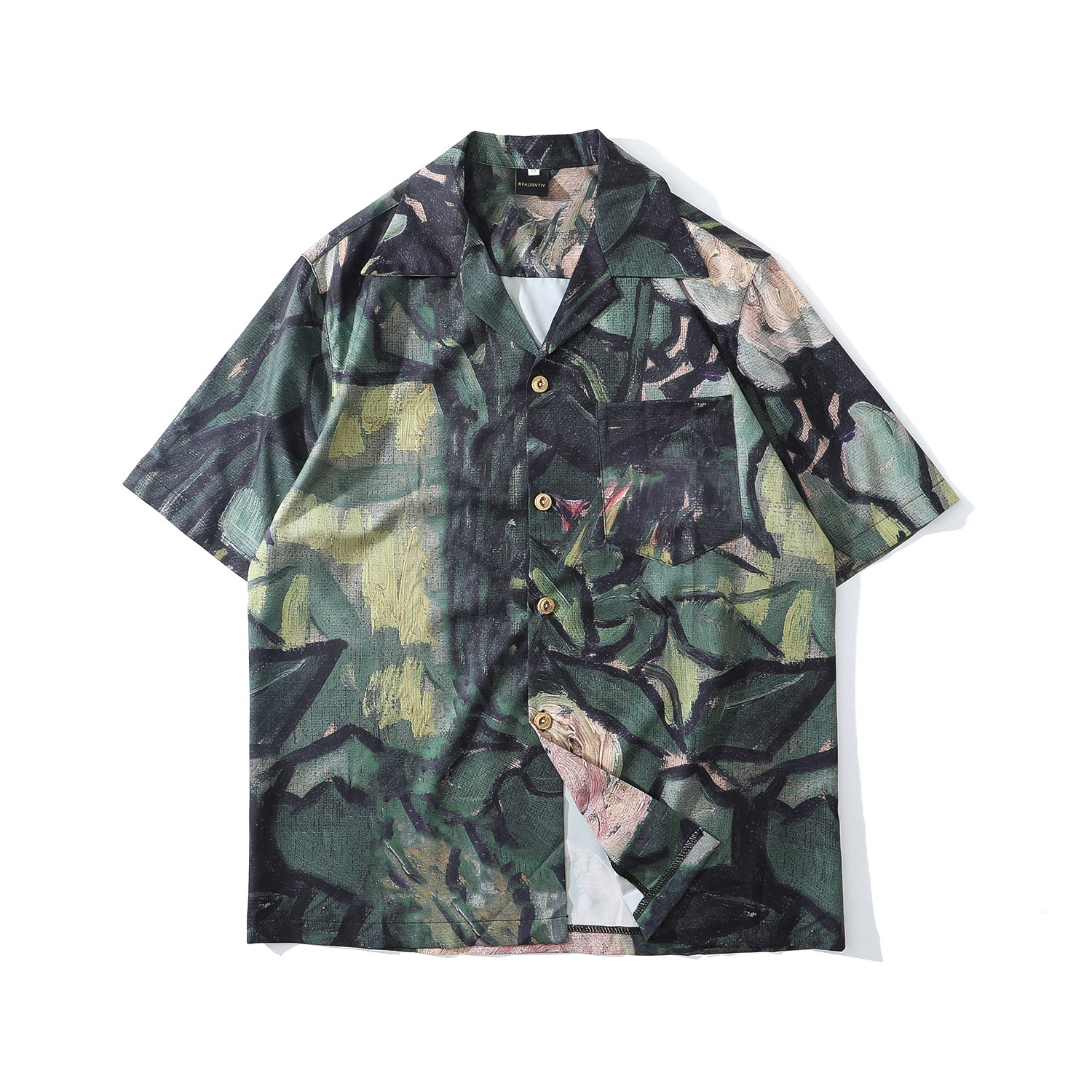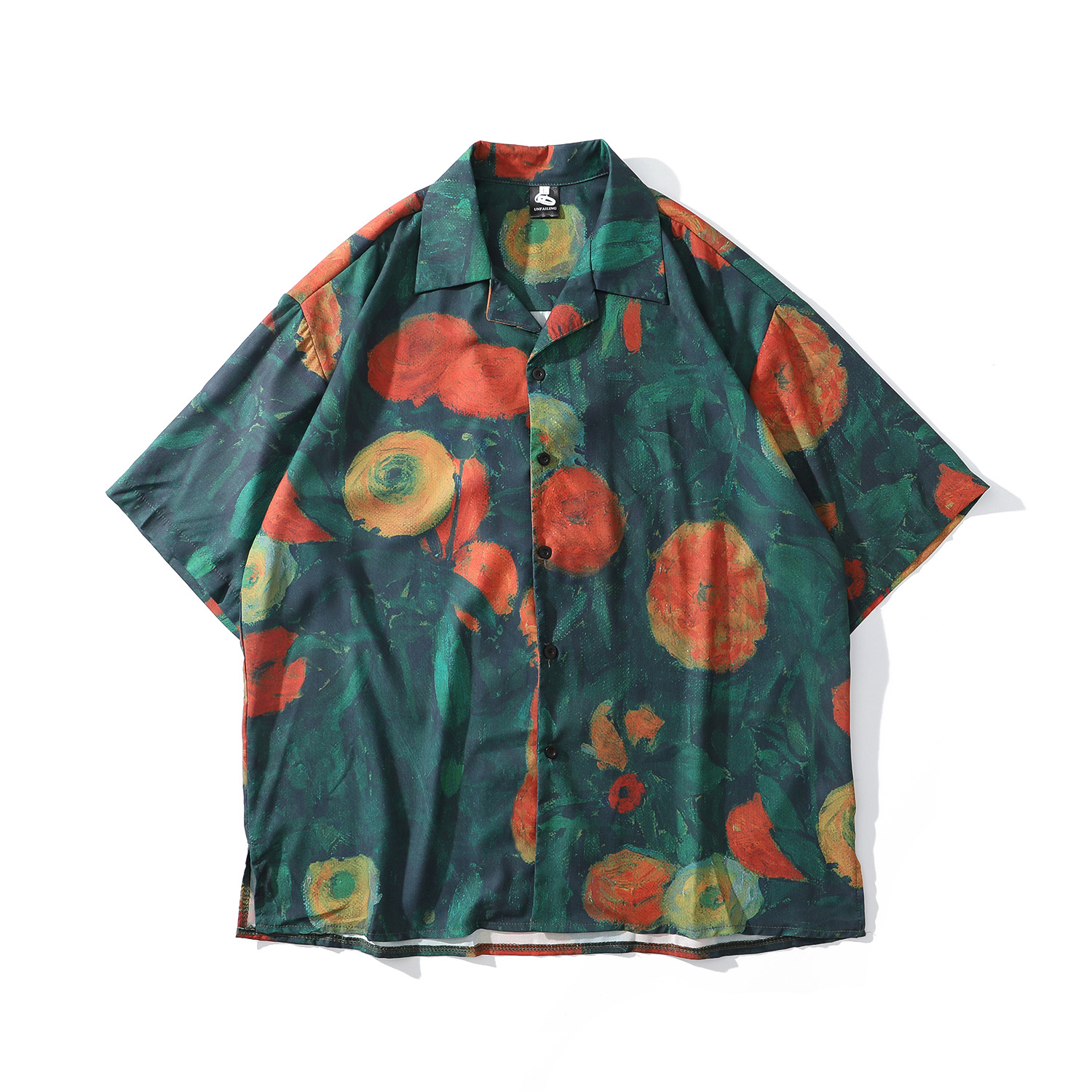 홍콩 스타일 커플 반팔 유화 빈티지 페인트 쿠바 풀 프린트 셔츠 소년과 소녀를위한 하와이안 셔츠