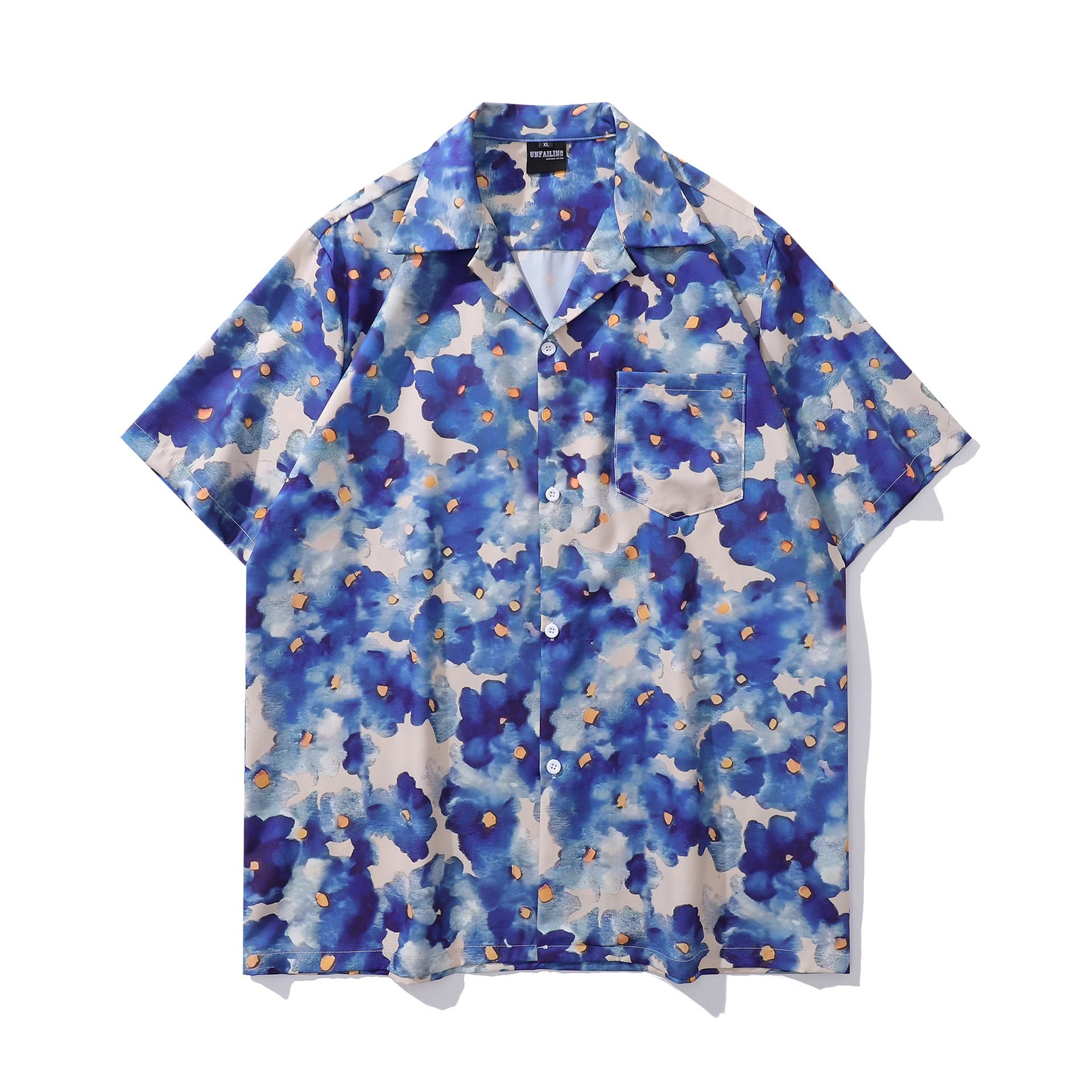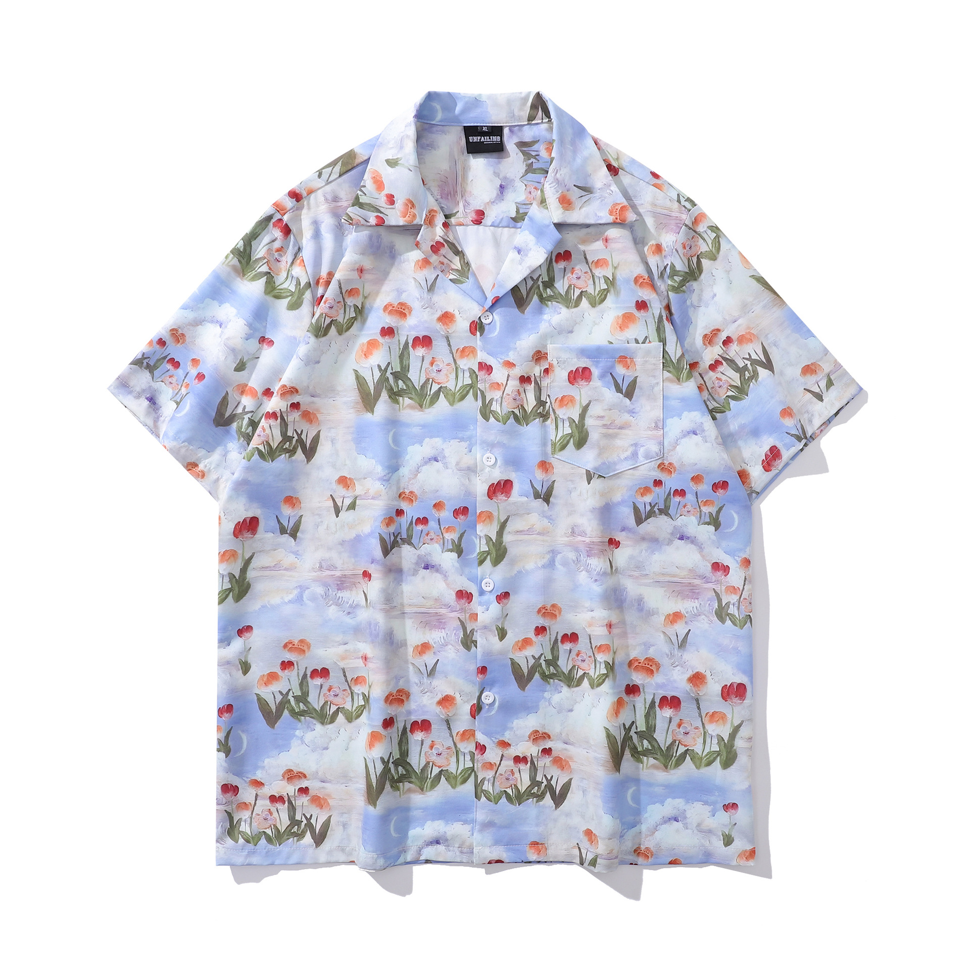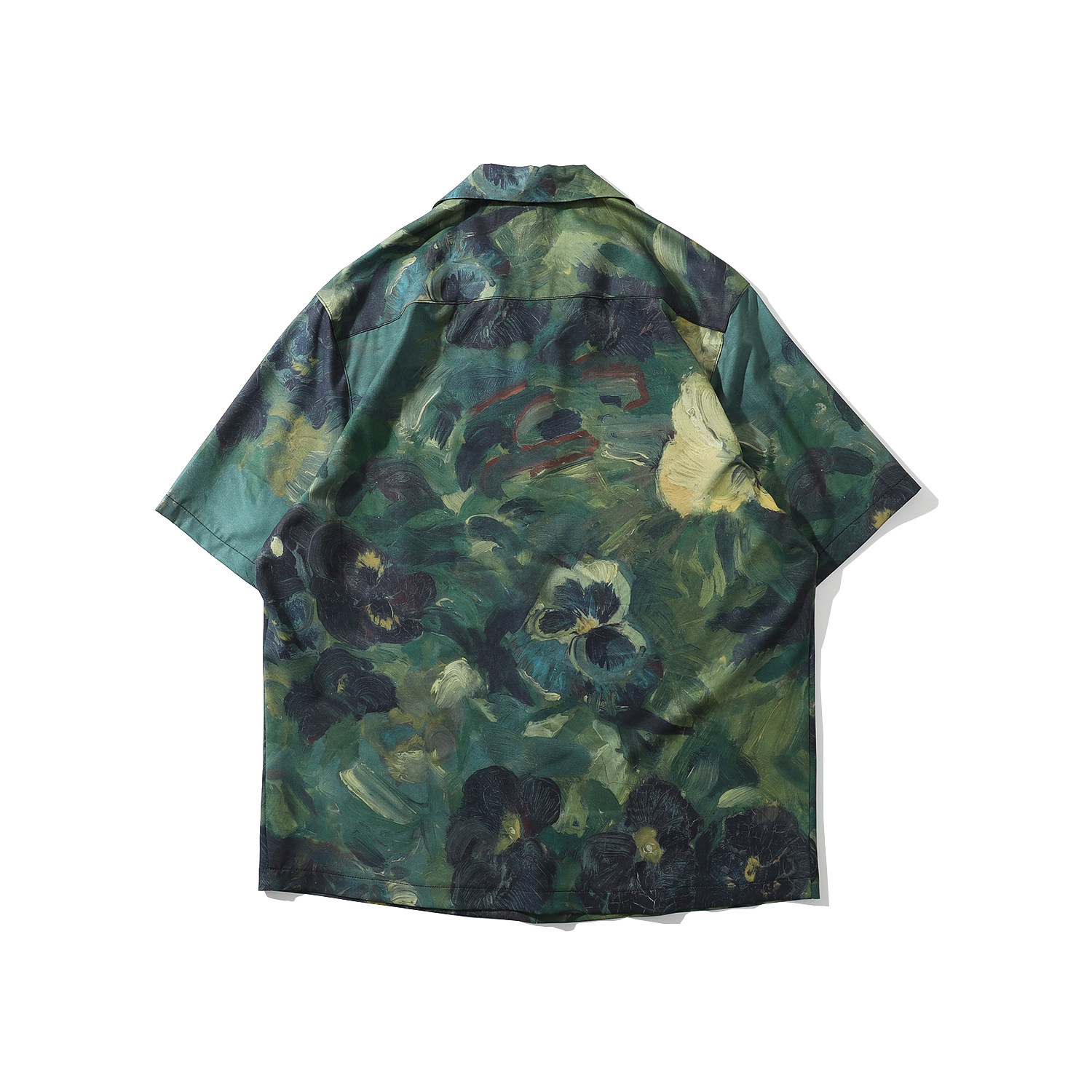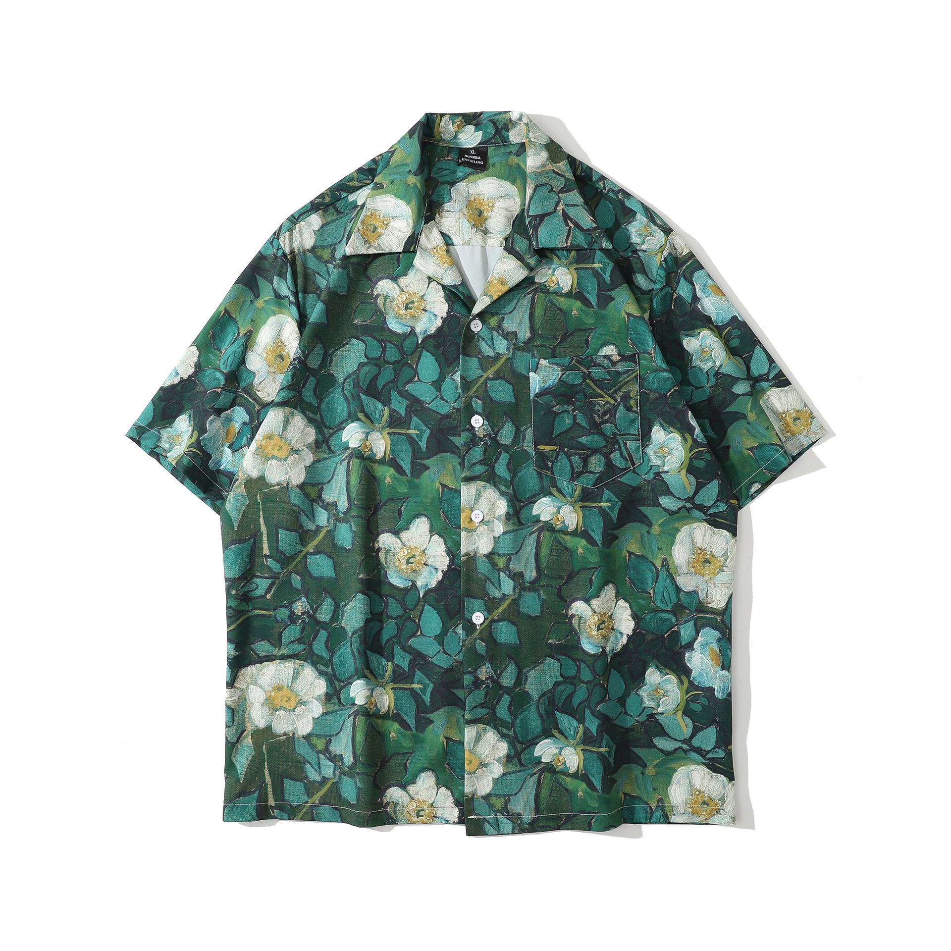 홍콩 스타일 커플 반팔 유화 빈티지 페인트 쿠바 풀 프린트 셔츠 소년과 소녀를위한 하와이안 셔츠