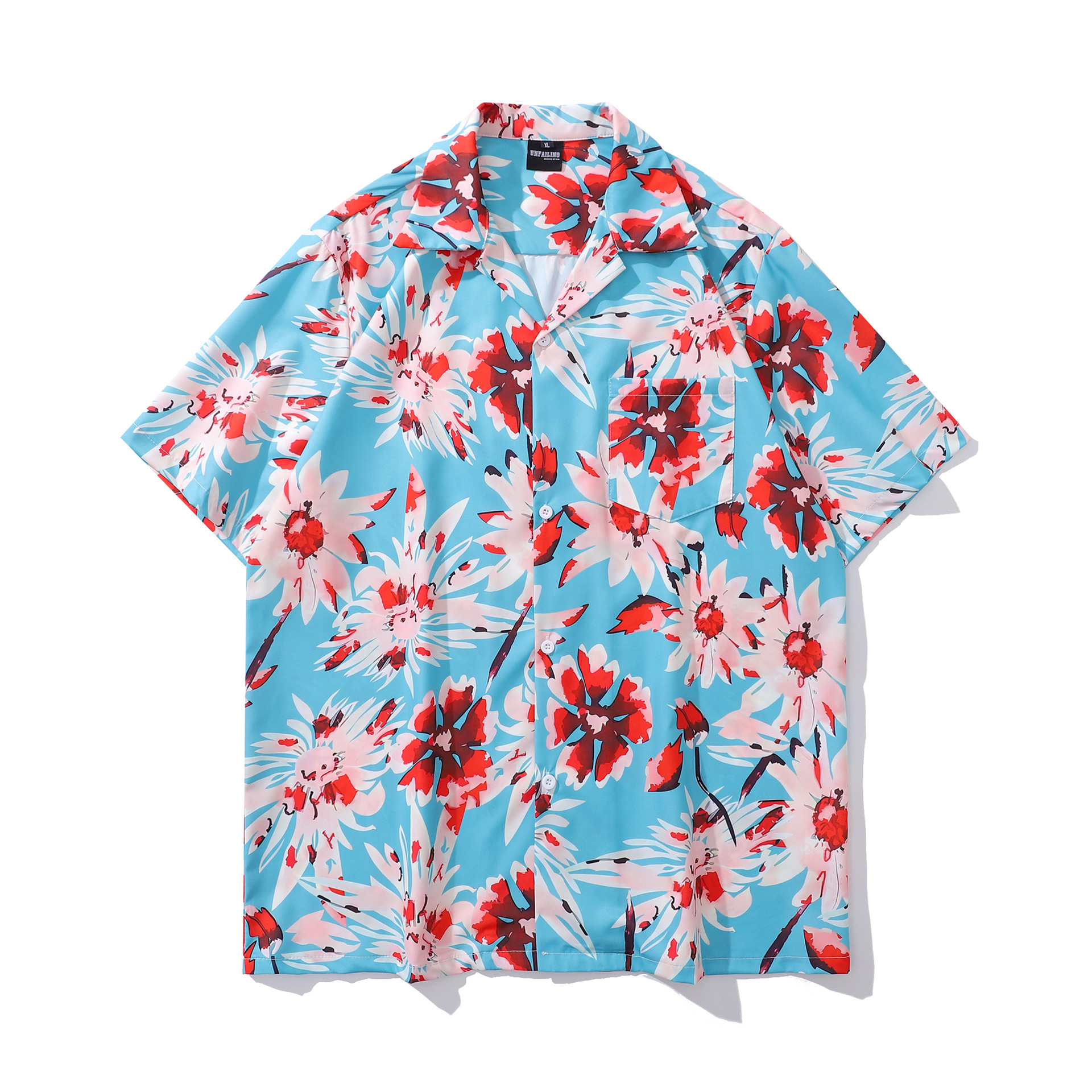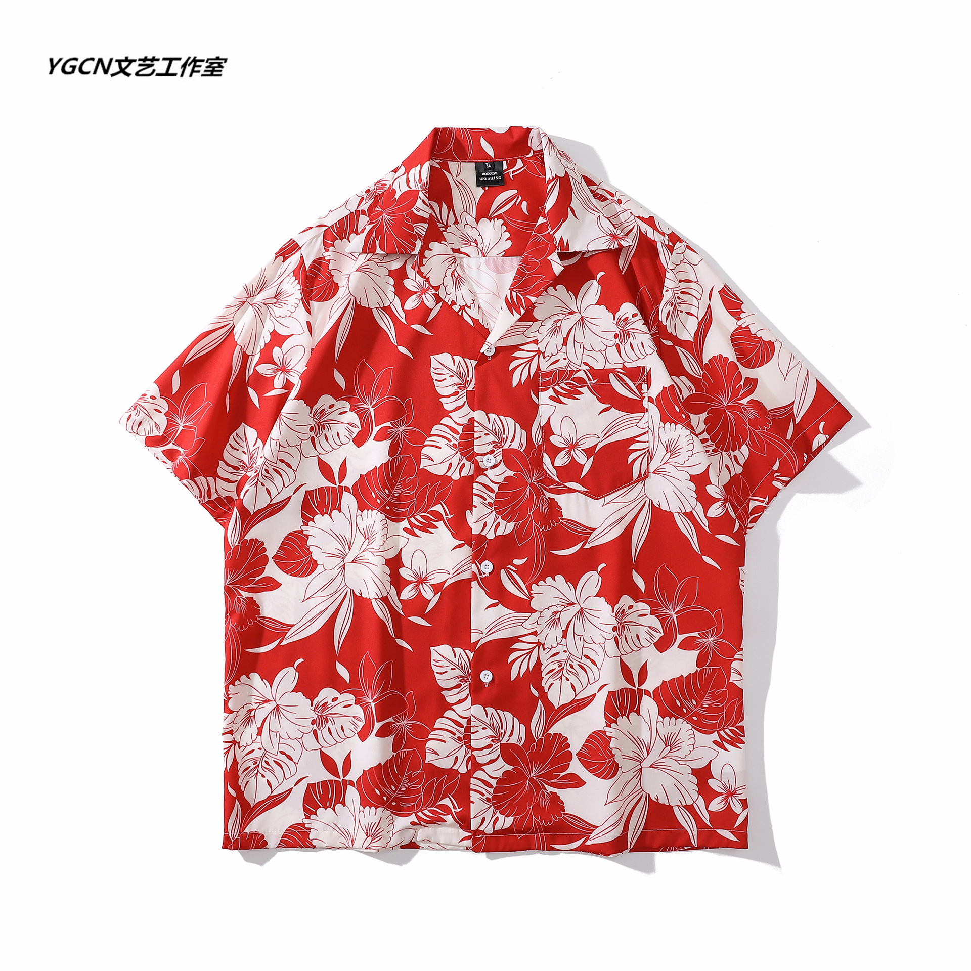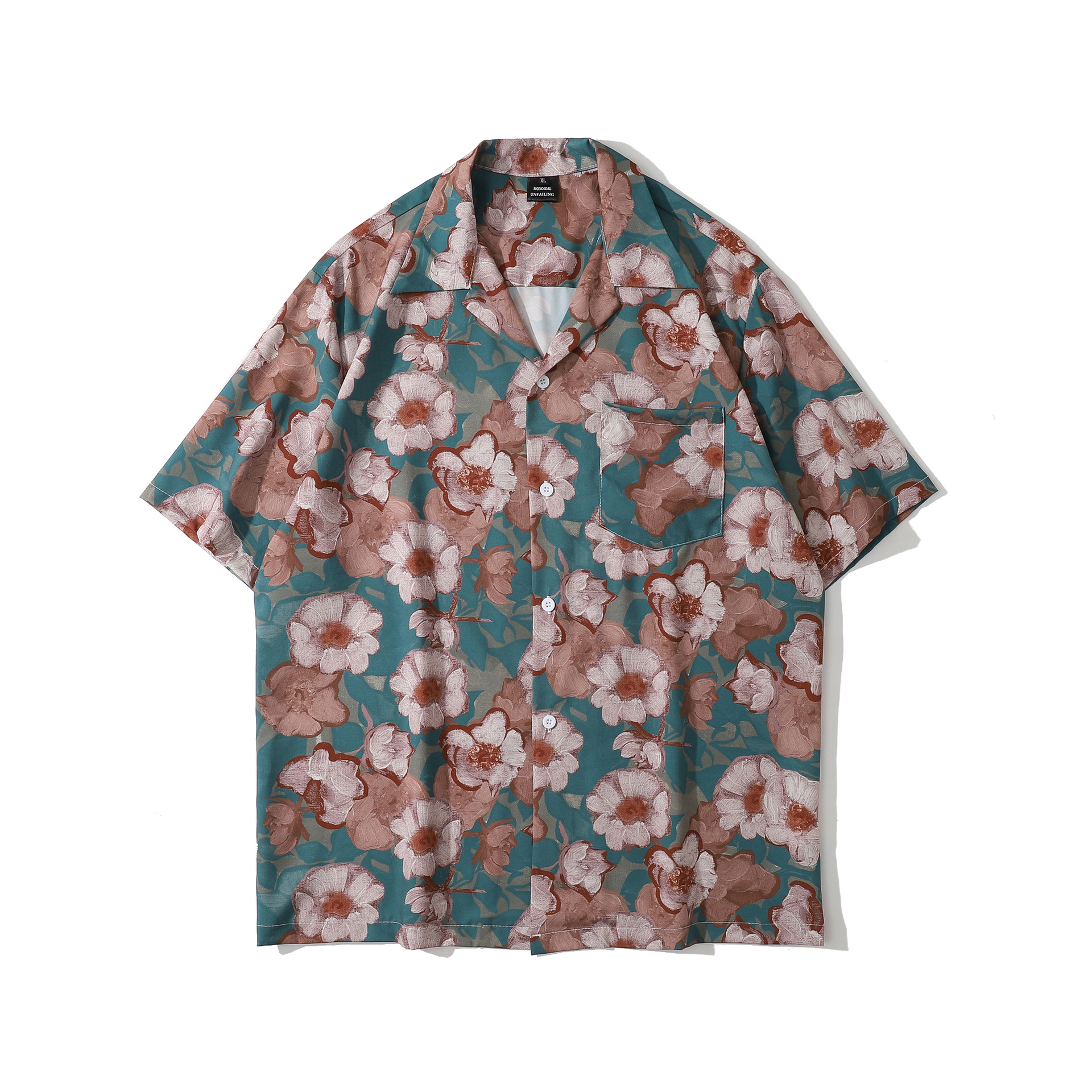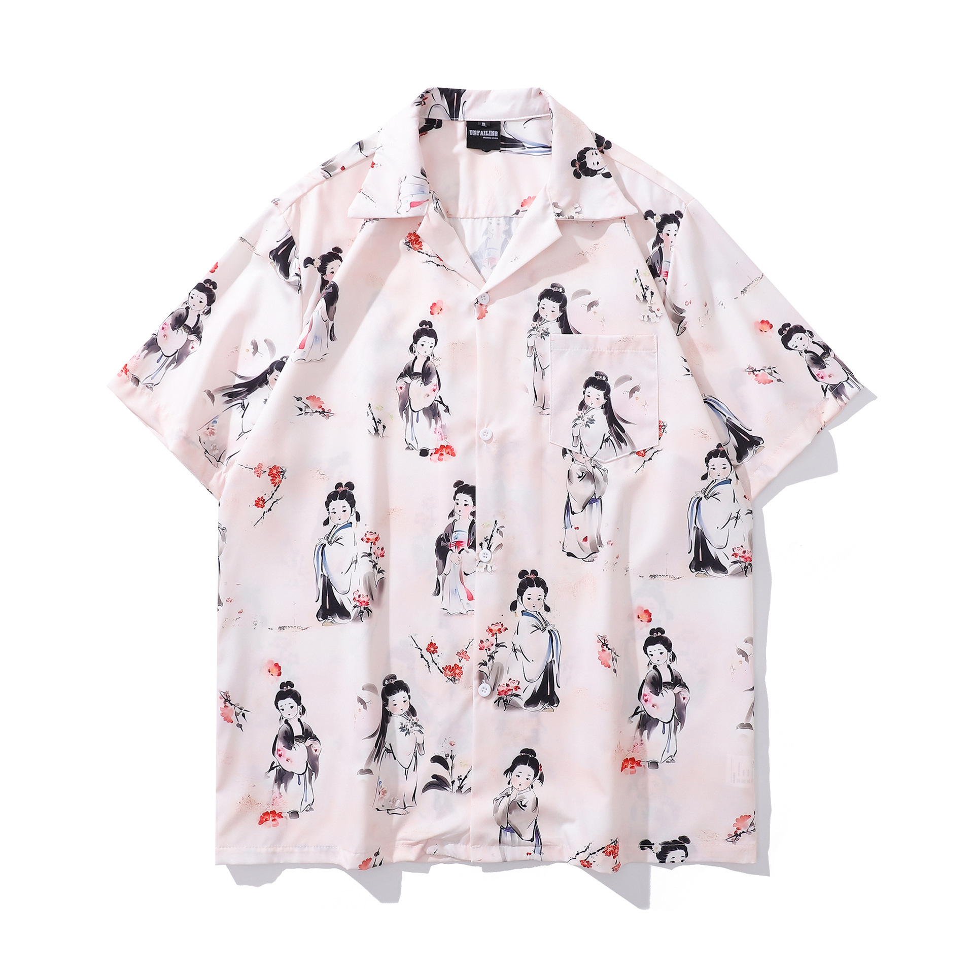 홍콩 스타일 커플 반팔 유화 빈티지 페인트 쿠바 풀 프린트 셔츠 소년과 소녀를위한 하와이안 셔츠