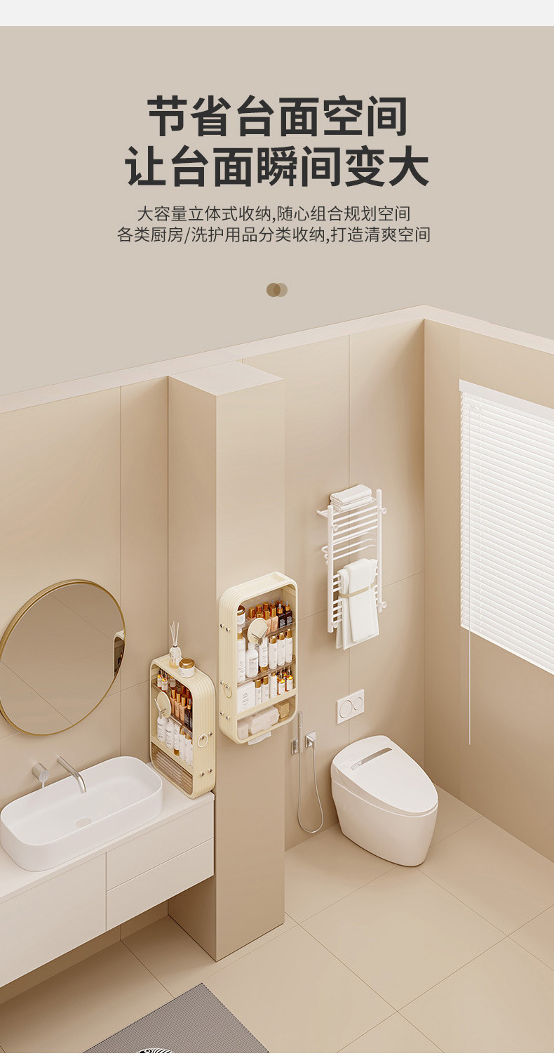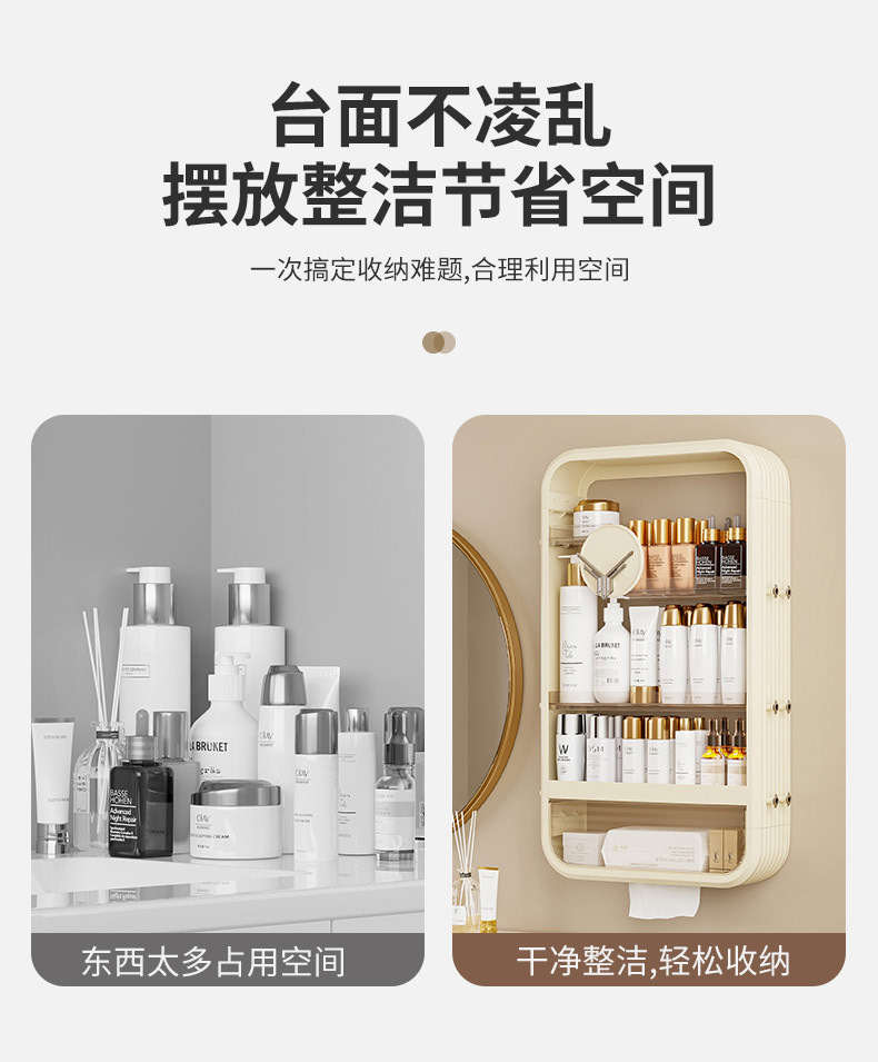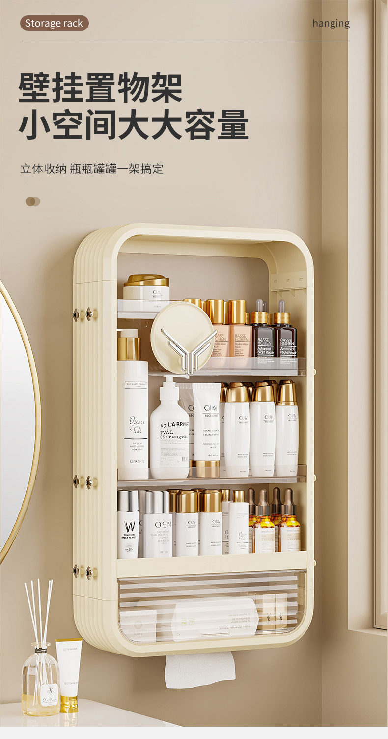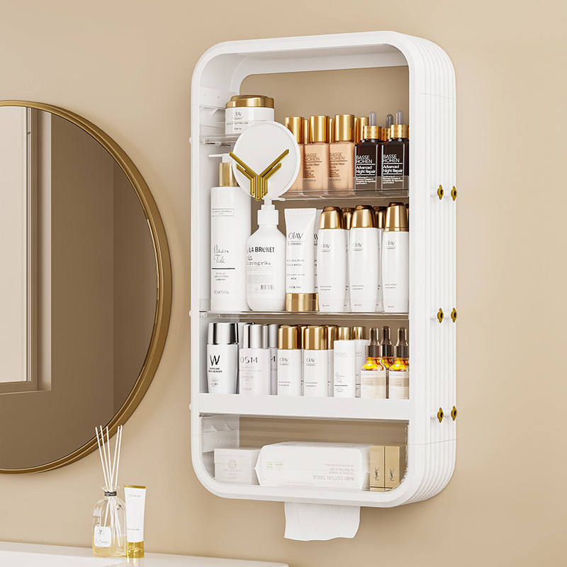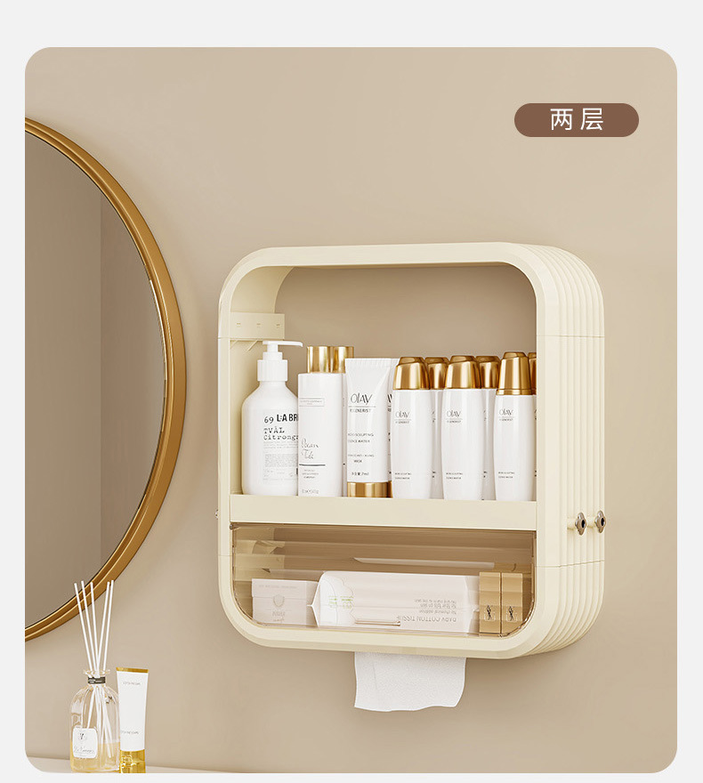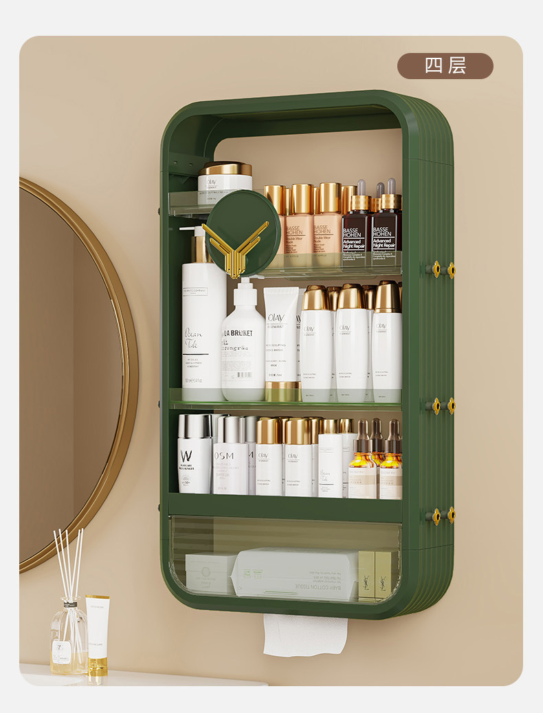 가벼운 고급 욕실 화장실 보관함 화장품 보관함 주방 벽 걸이 천공되지 않은 보관 랙 도매스토어 가기