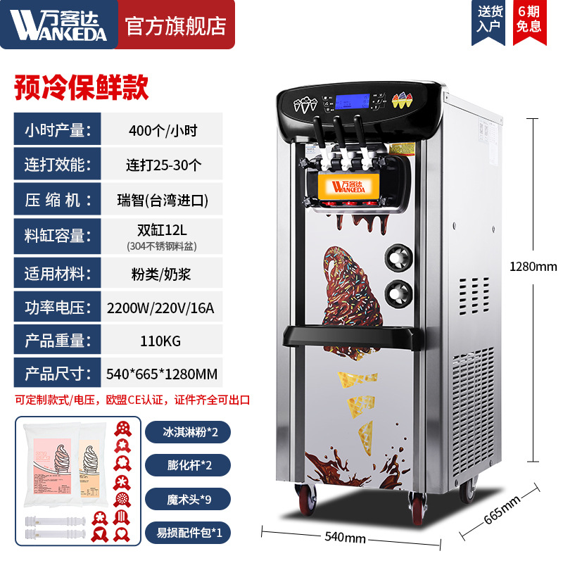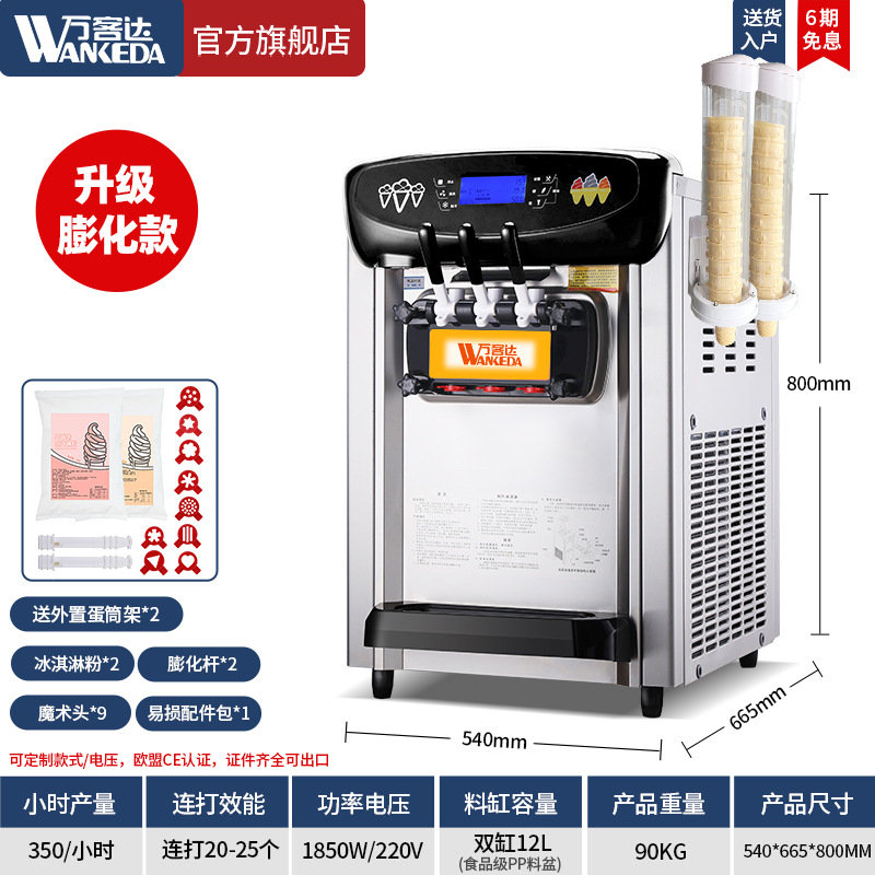 Wankeda 아이스크림 기계 상업 작은 자동 아이스크림 기계 실속 데스크탑 선대 콘 아이스크림 기계스토어 가기