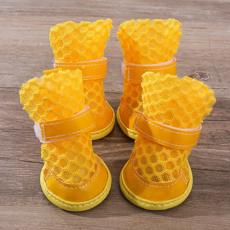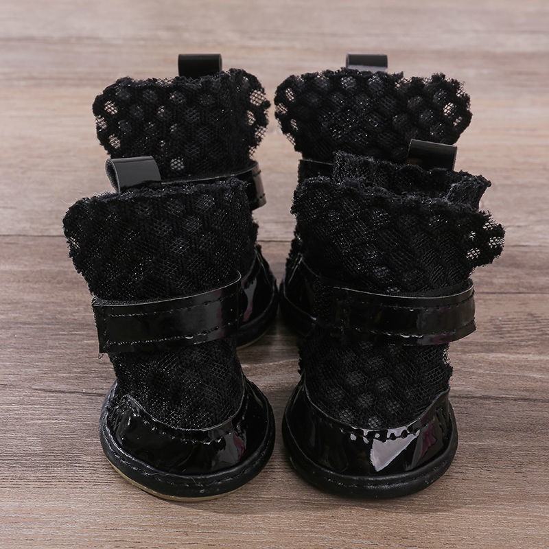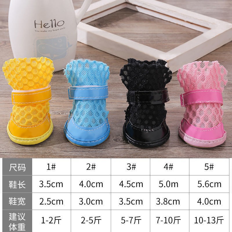개 신발 테디 베어 소프트 솔 신발 작은 개 강아지 안티 드롭 통기성 신발 세트 4 여름 애완 동물 신발