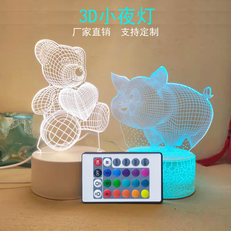 크리 에이 티브 3D 야간 조명 터치 다채로운 원격 제어 아크릴 테이블 램프 만화 분위기 램프 생일 어린이 날 선물