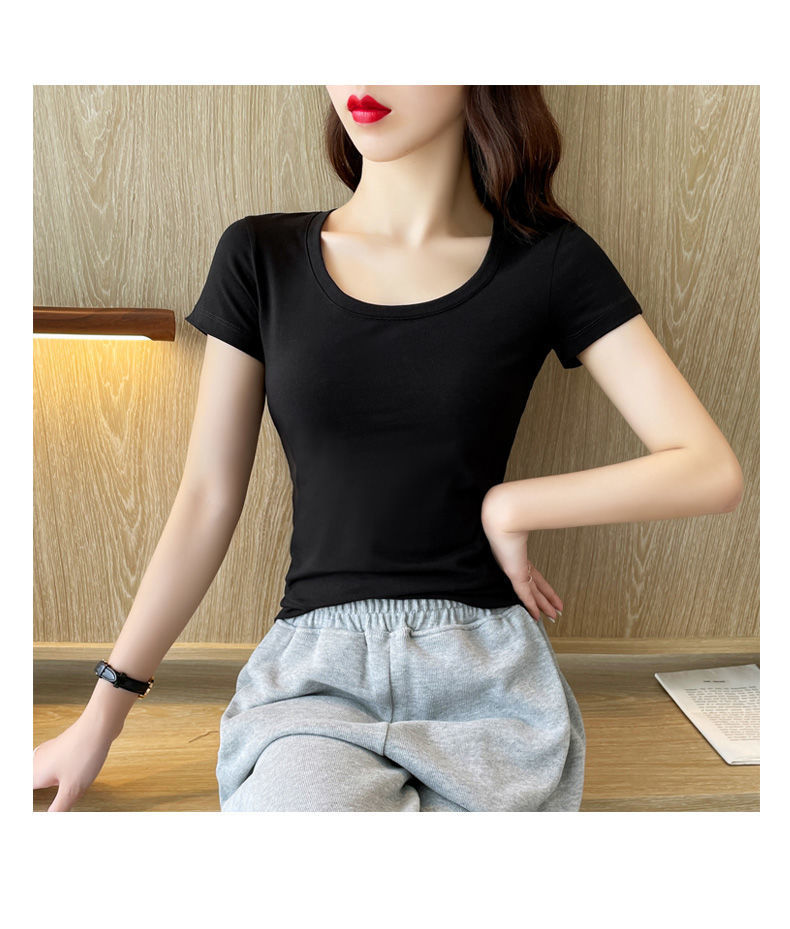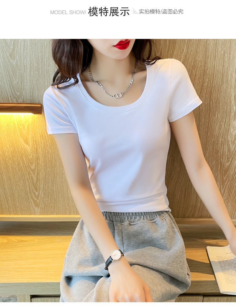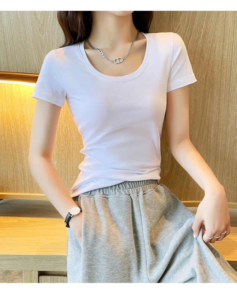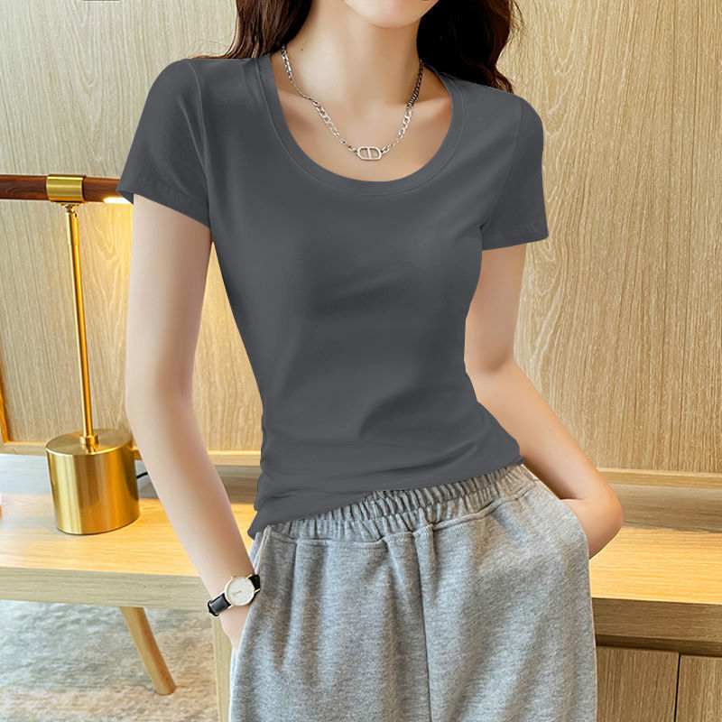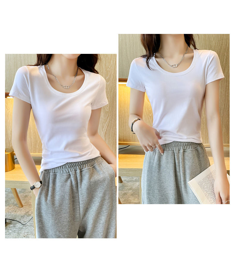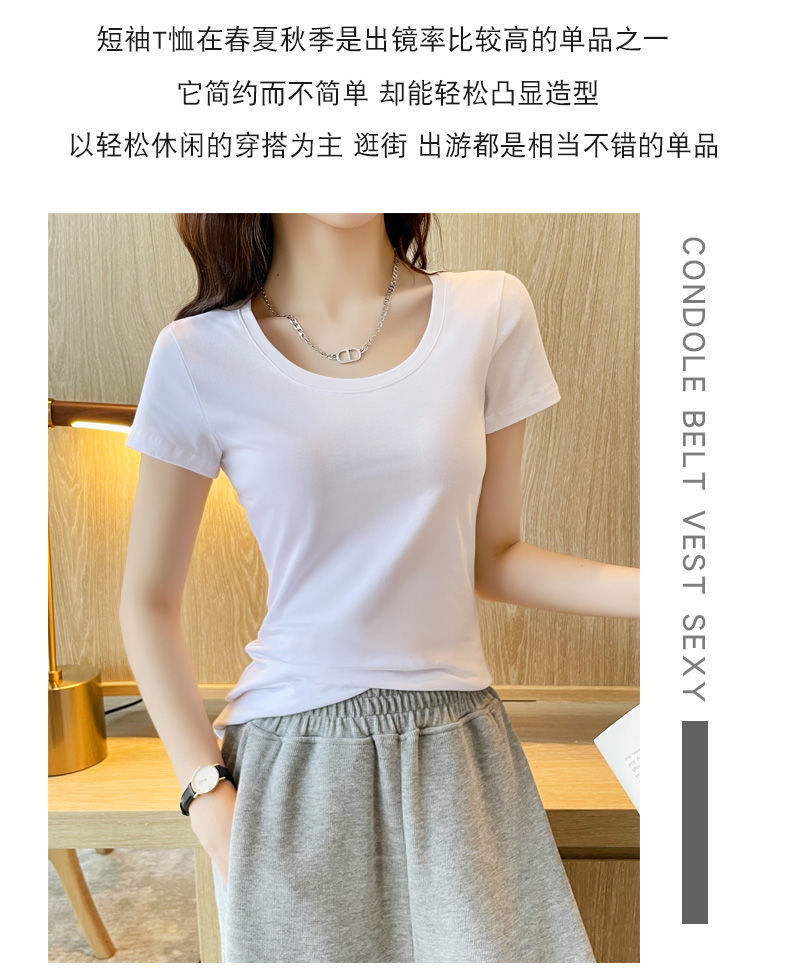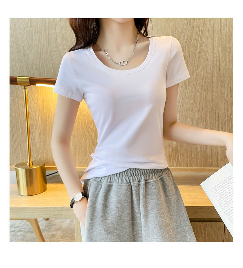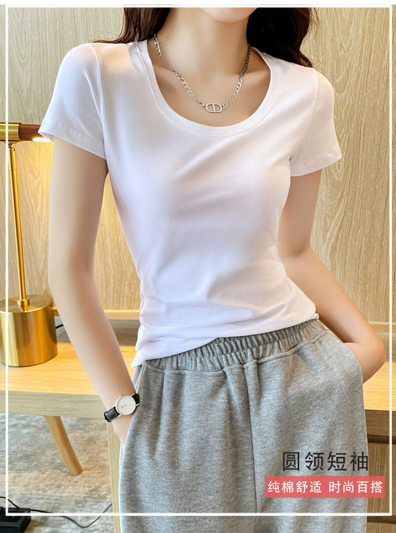 공장 도매 뜨거운 판매 짧은 소매 코튼 티셔츠 여성 여름 2024 새로운 꽉 여성 탑 Bottoming 셔츠 드롭 배송스토어 가기