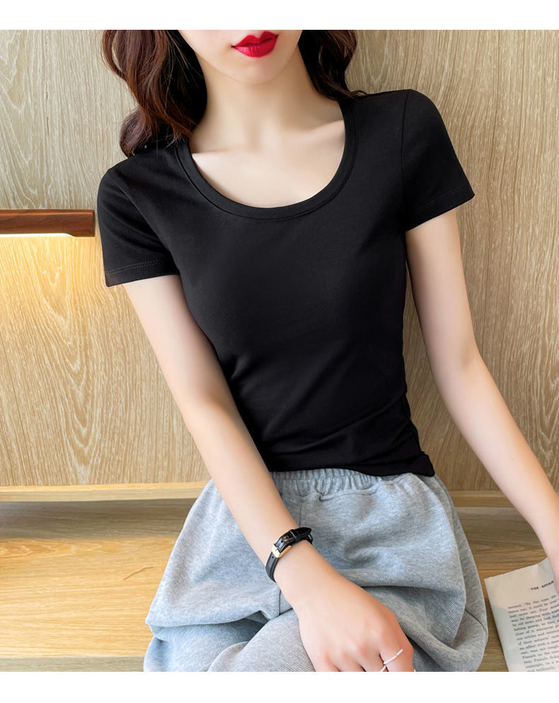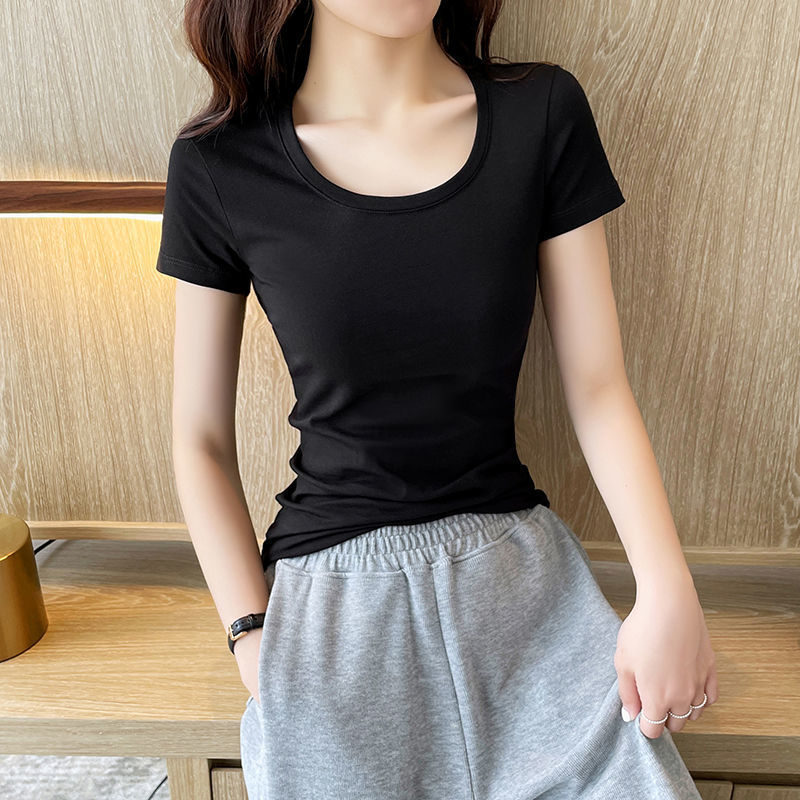 공장 도매 뜨거운 판매 짧은 소매 코튼 티셔츠 여성 여름 2024 새로운 꽉 여성 탑 Bottoming 셔츠 드롭 배송