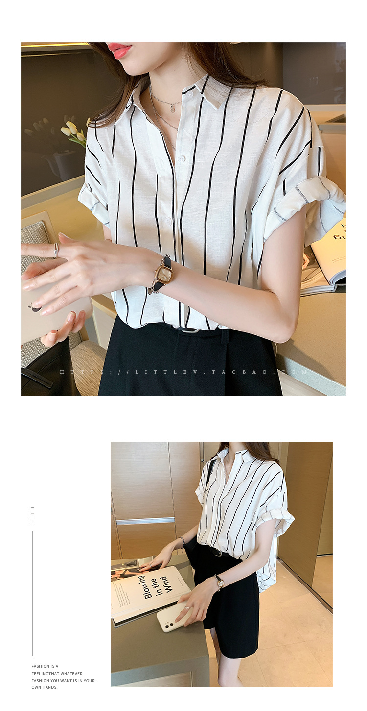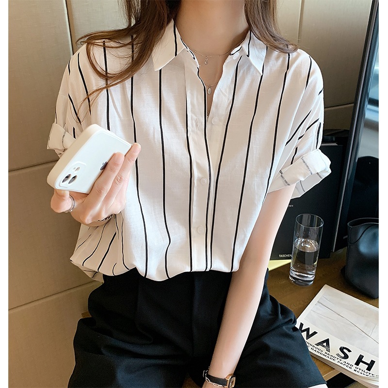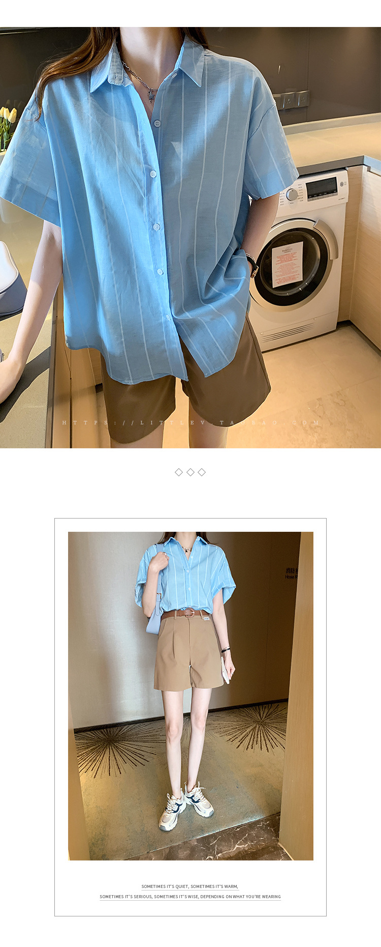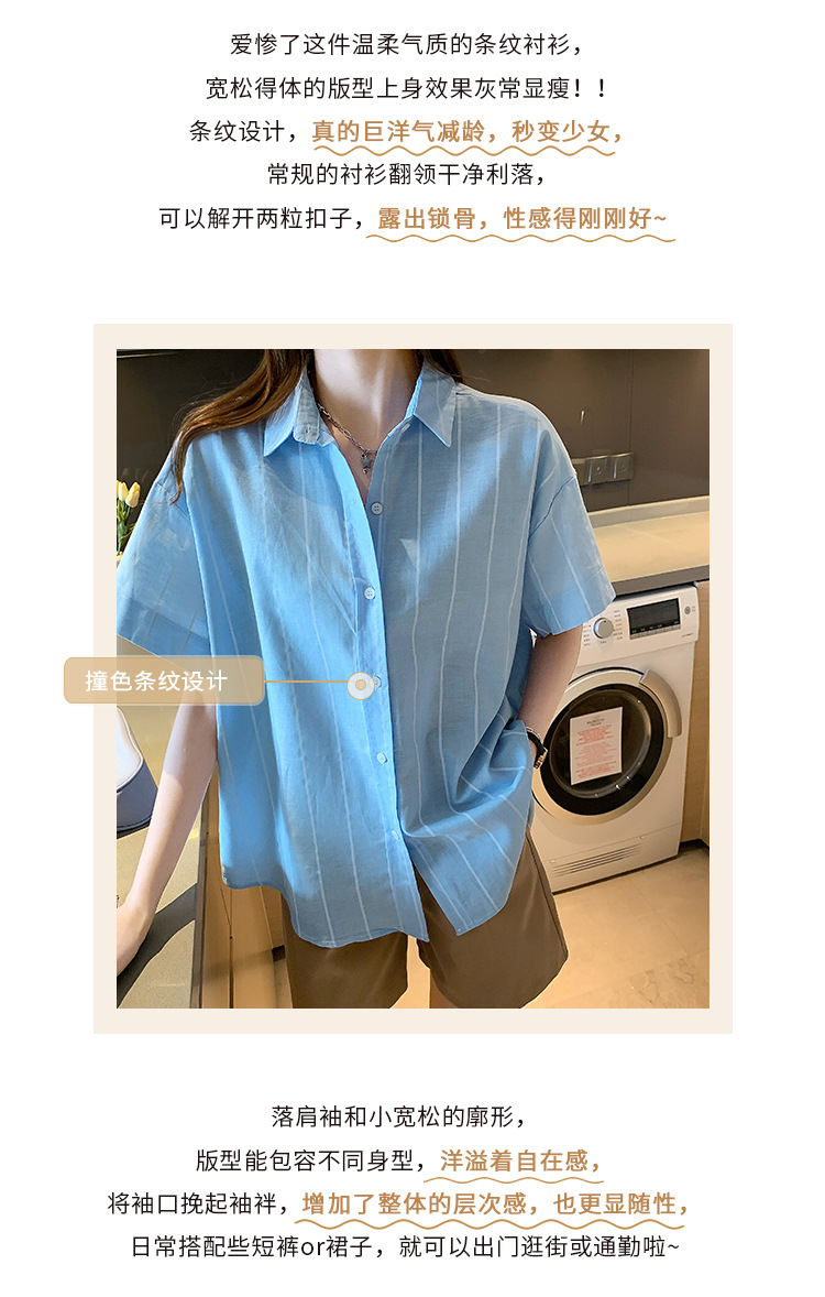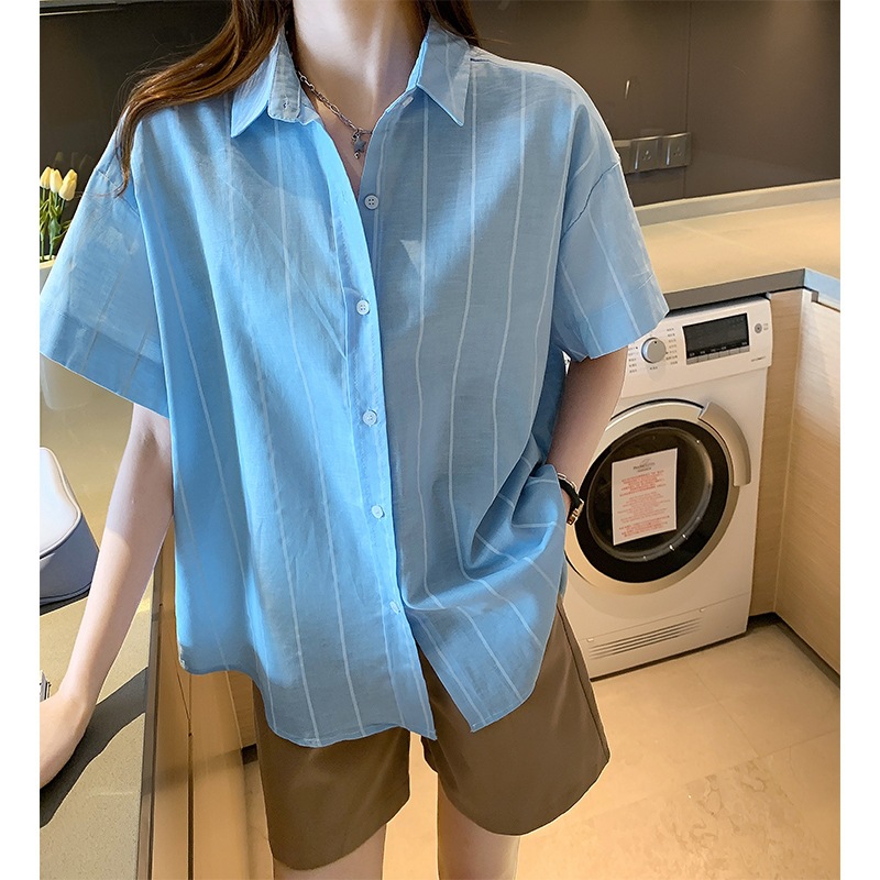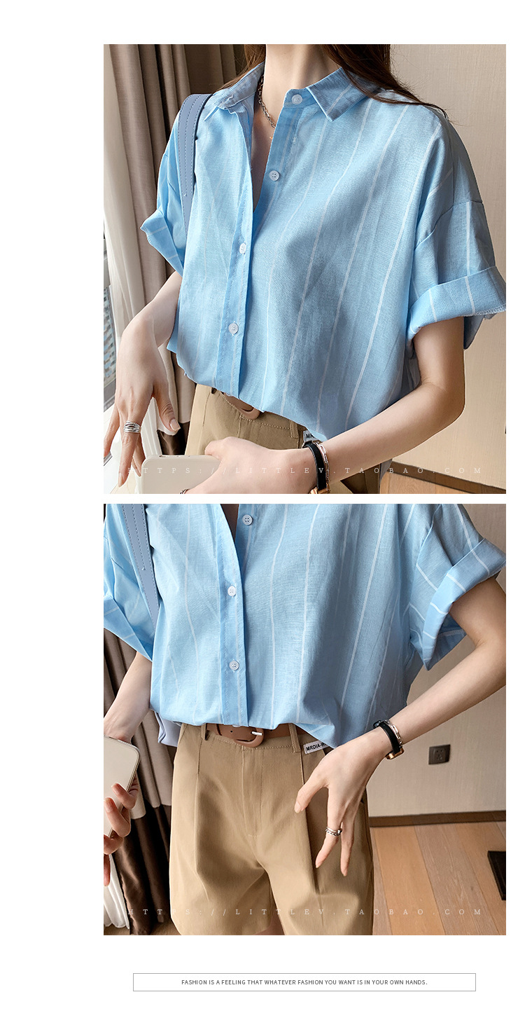 스팟 스트라이프 셔츠 여성 여름 2024 새로운 한국 스타일 느슨한 슬리밍 다목적 폴로 칼라 기질 우아한 반팔스토어 가기