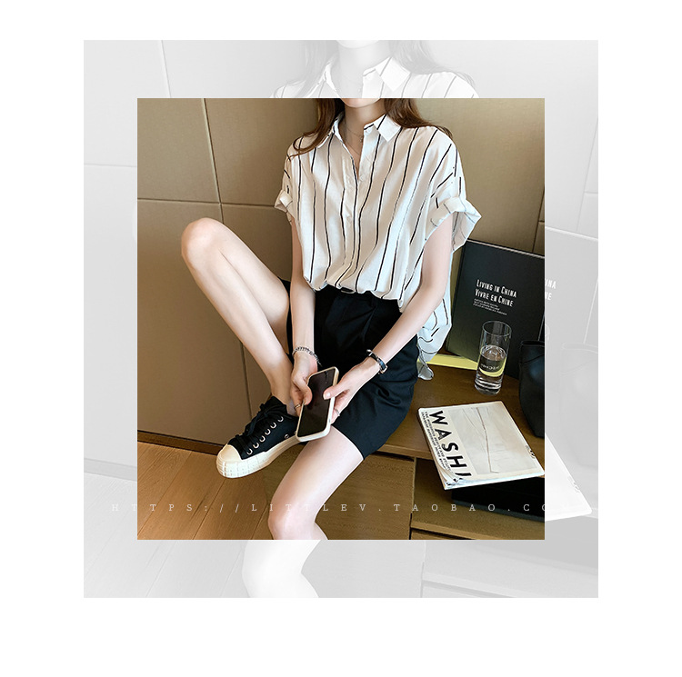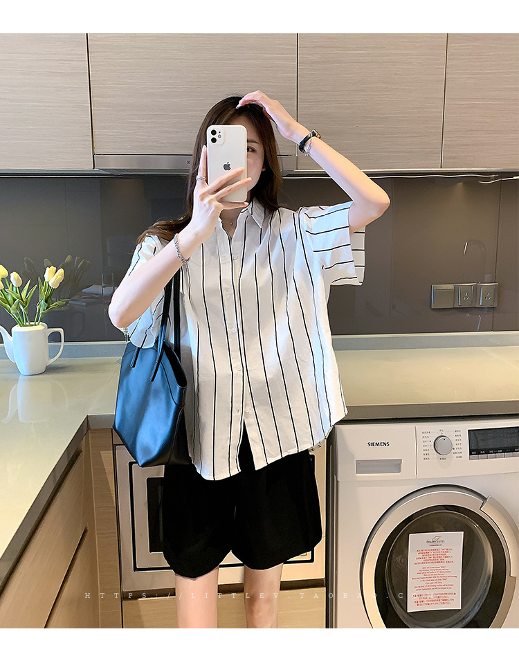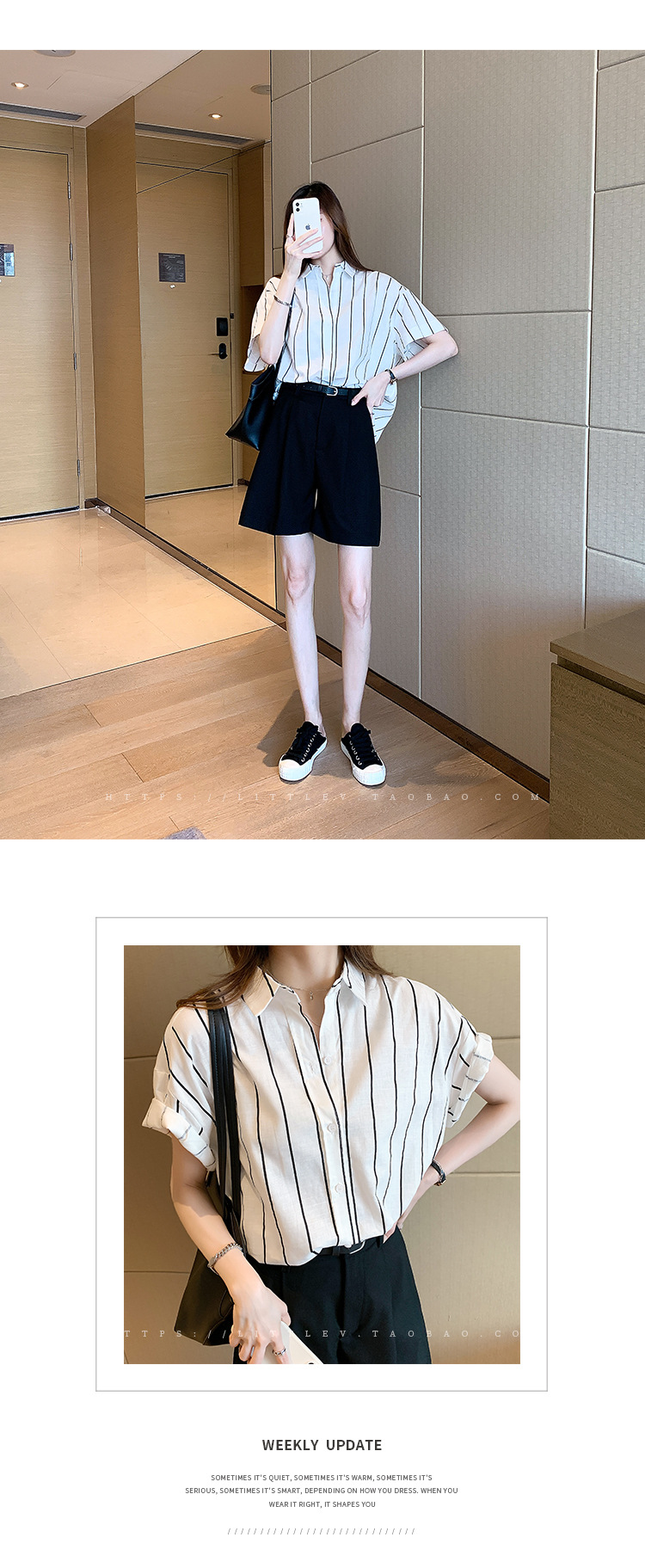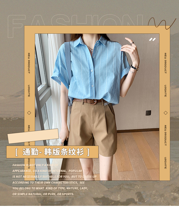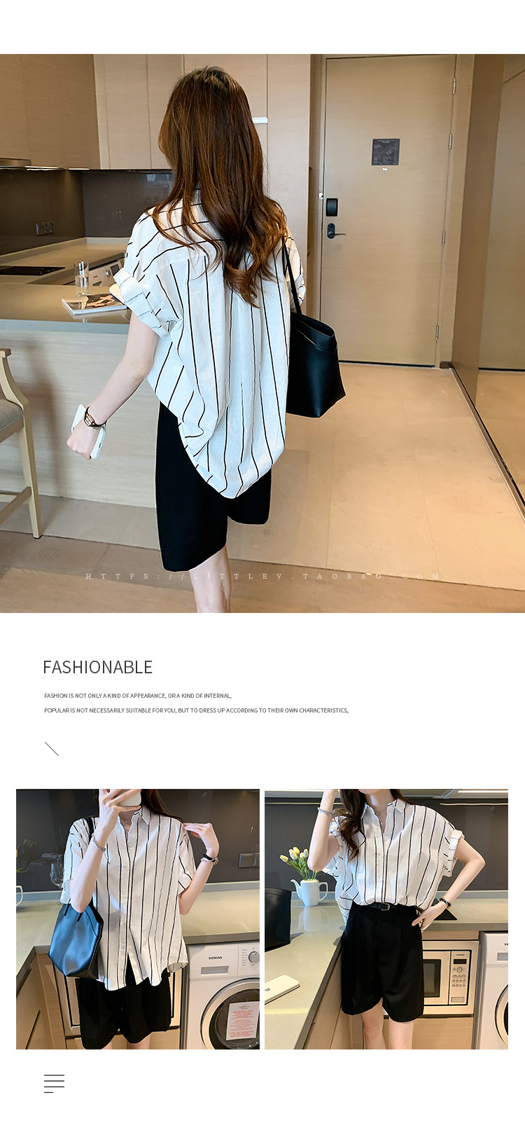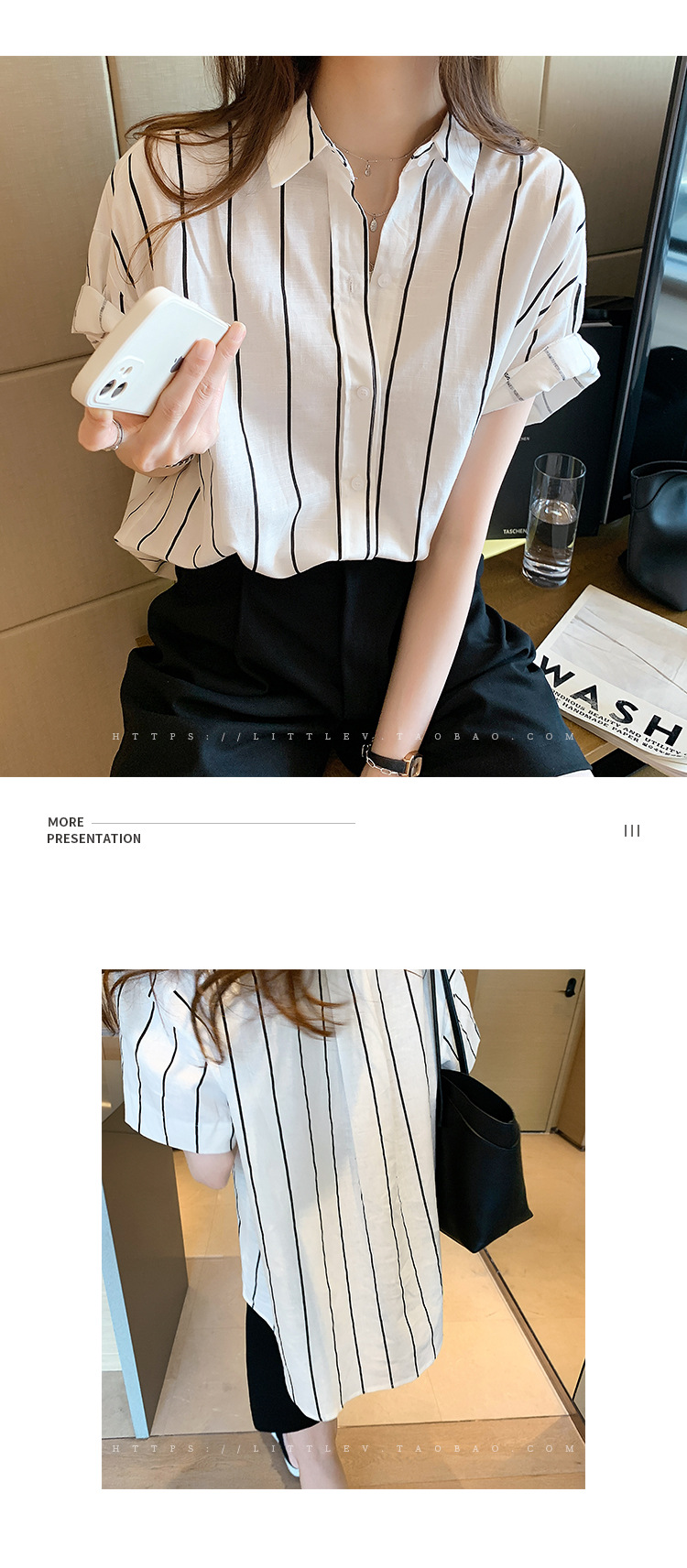 스팟 스트라이프 셔츠 여성 여름 2024 새로운 한국 스타일 느슨한 슬리밍 다목적 폴로 칼라 기질 우아한 반팔스토어 가기