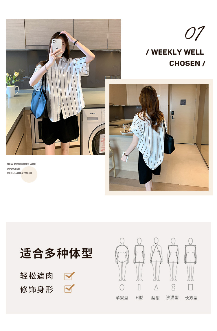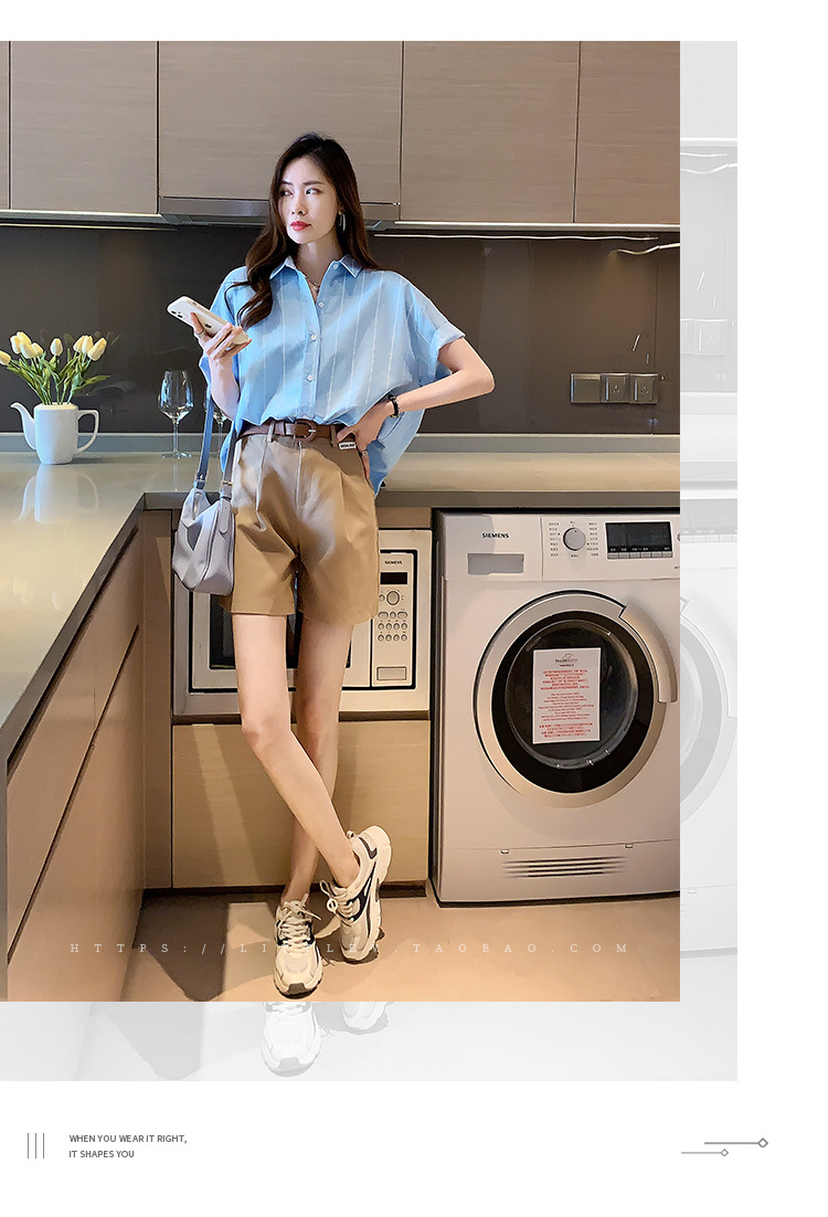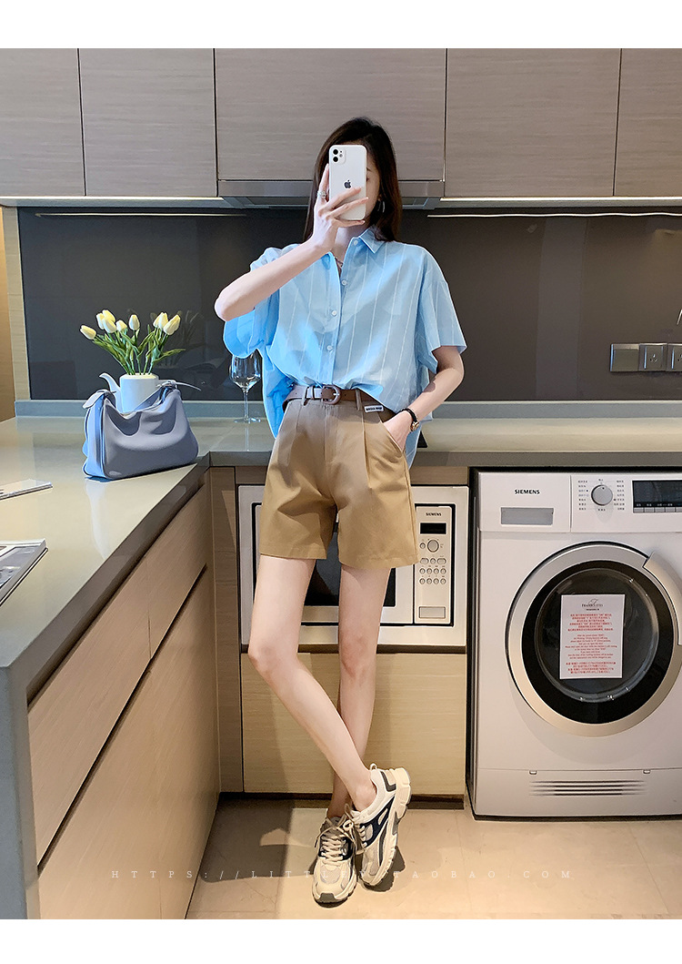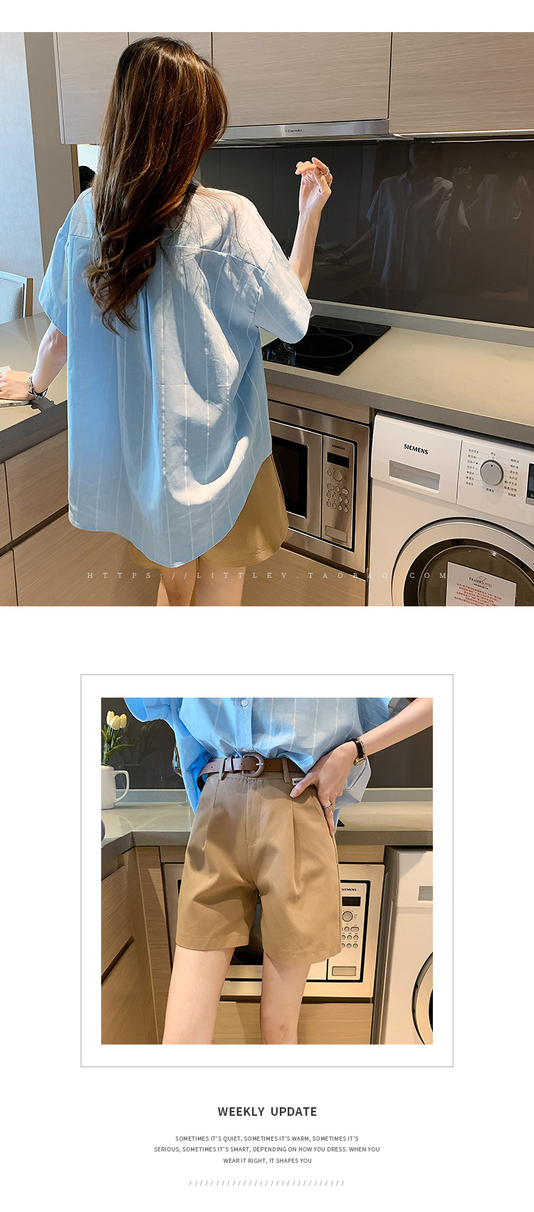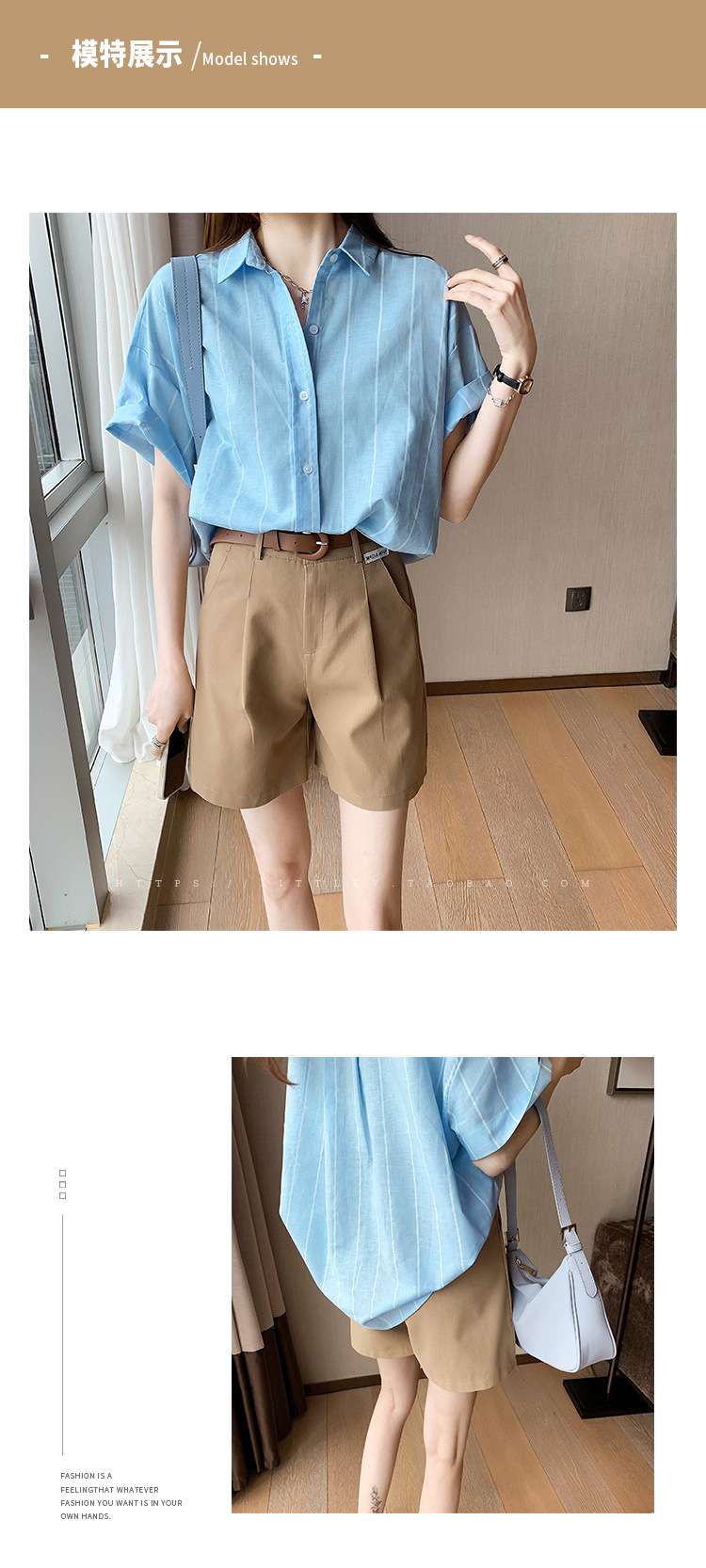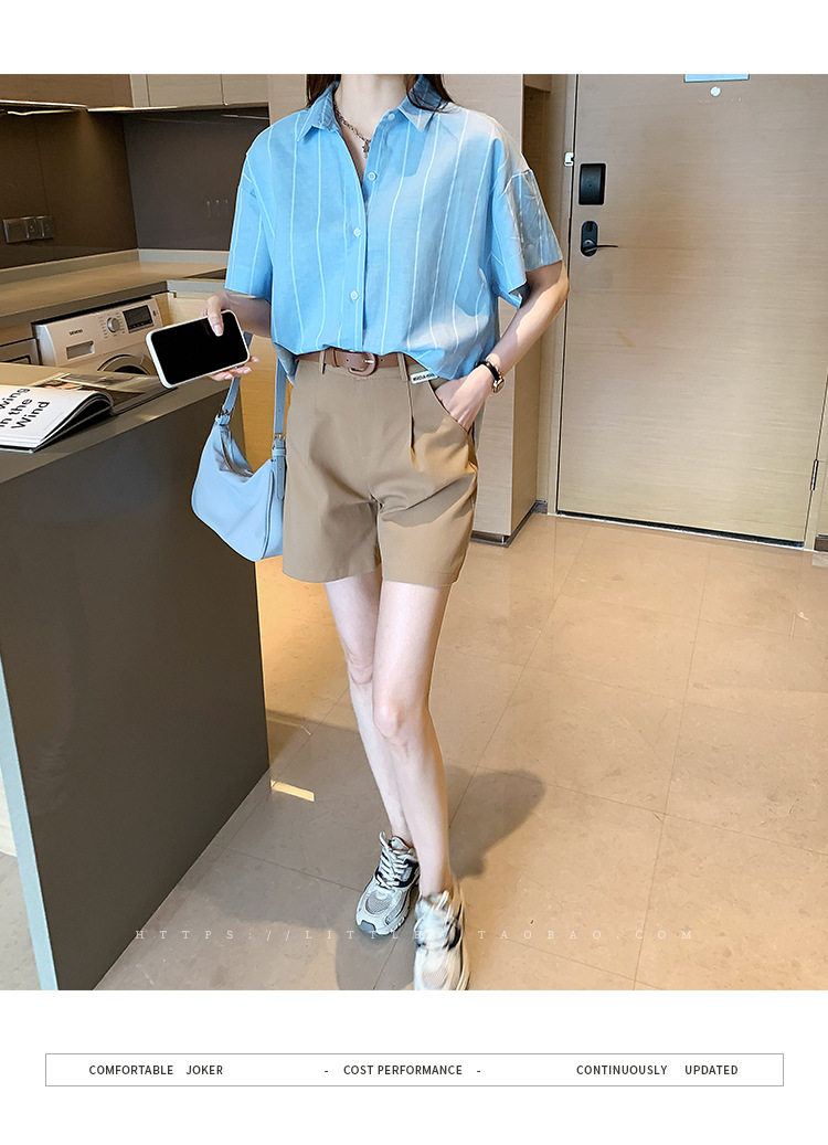 스팟 스트라이프 셔츠 여성 여름 2024 새로운 한국 스타일 느슨한 슬리밍 다목적 폴로 칼라 기질 우아한 반팔스토어 가기