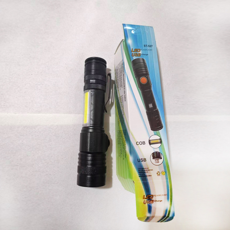 T6 강한 빛 손전등 USB 충전식 텔레스코픽 줌 COB 하이라이트 측면 조명 야외 원격 비상 작업 조명