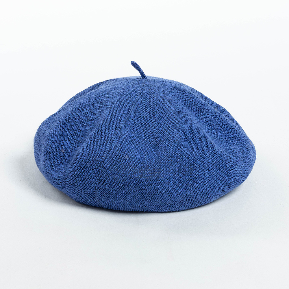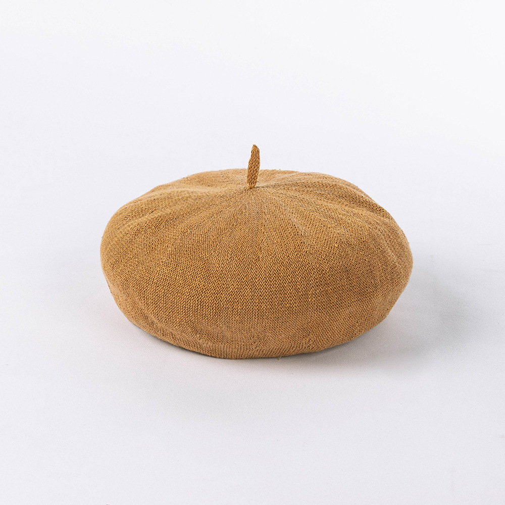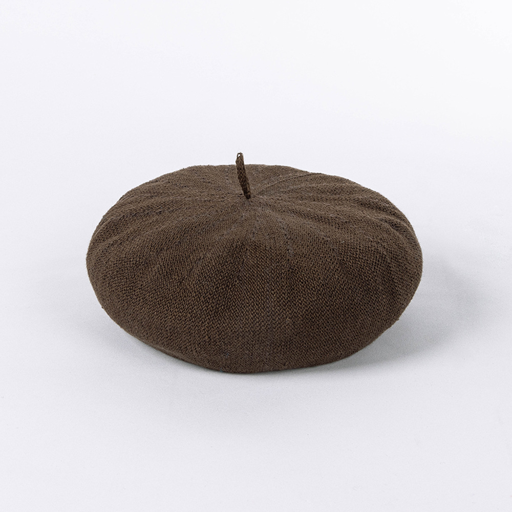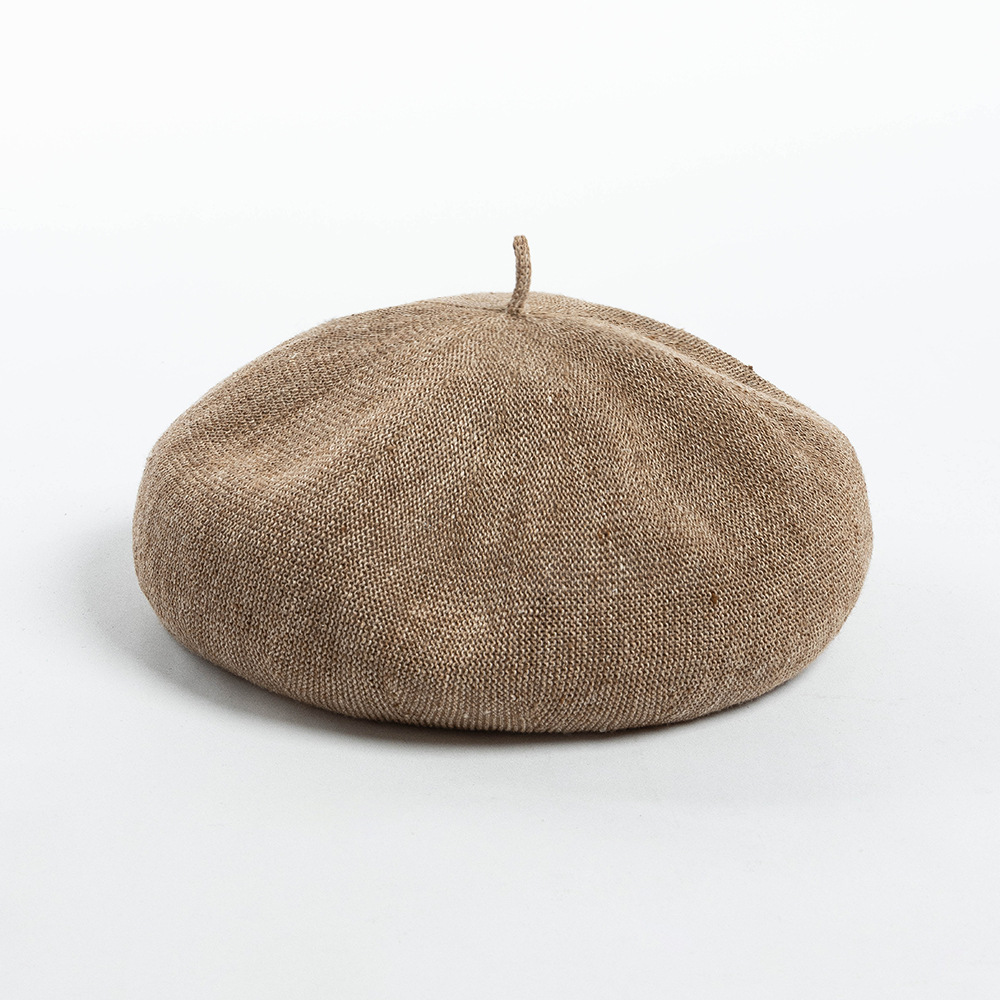 봄과 여름 새로운 패션 캐주얼 통기성 니트 린넨 베레모 그림 모자 여성용 오목 깊은 처마 버섯 모자