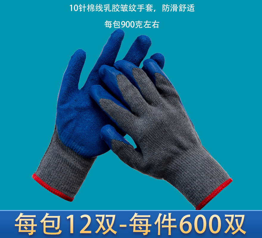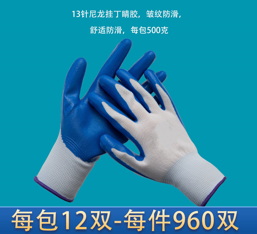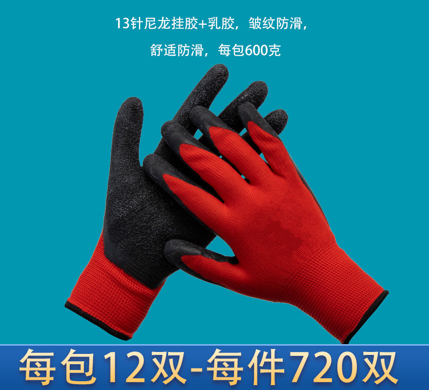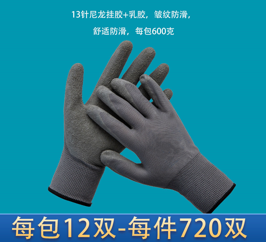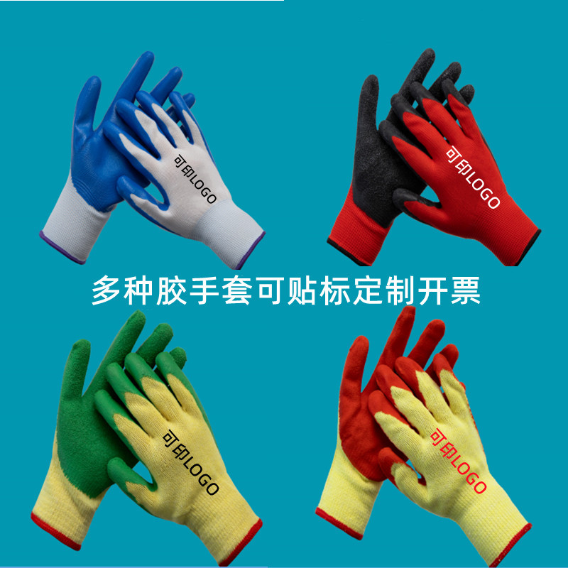 접착제가있는 노동 보호 장갑 Ding Qing 나일론 면사 걸이 접착제 방수 내유성 미끄럼 방지 Ding Qing 주름 라텍스 고무 장갑스토어 가기