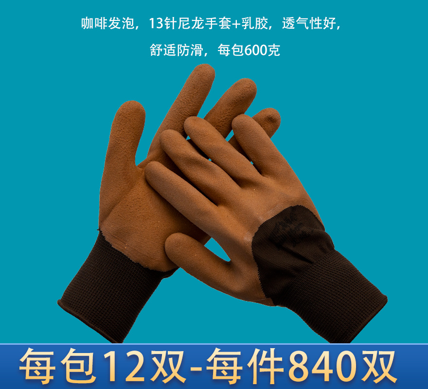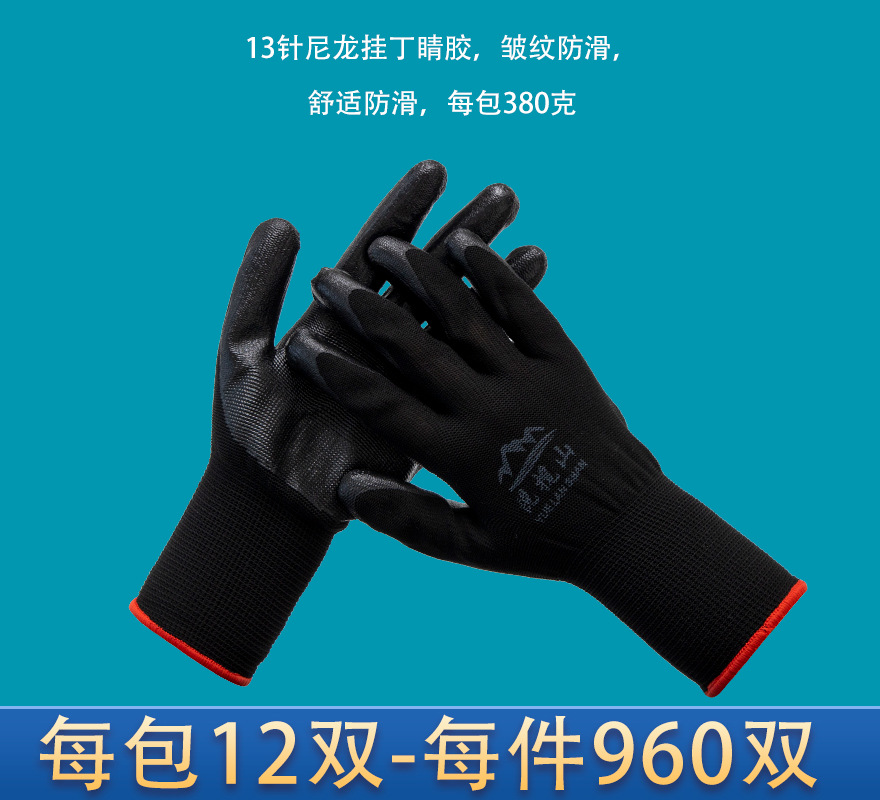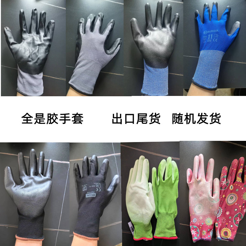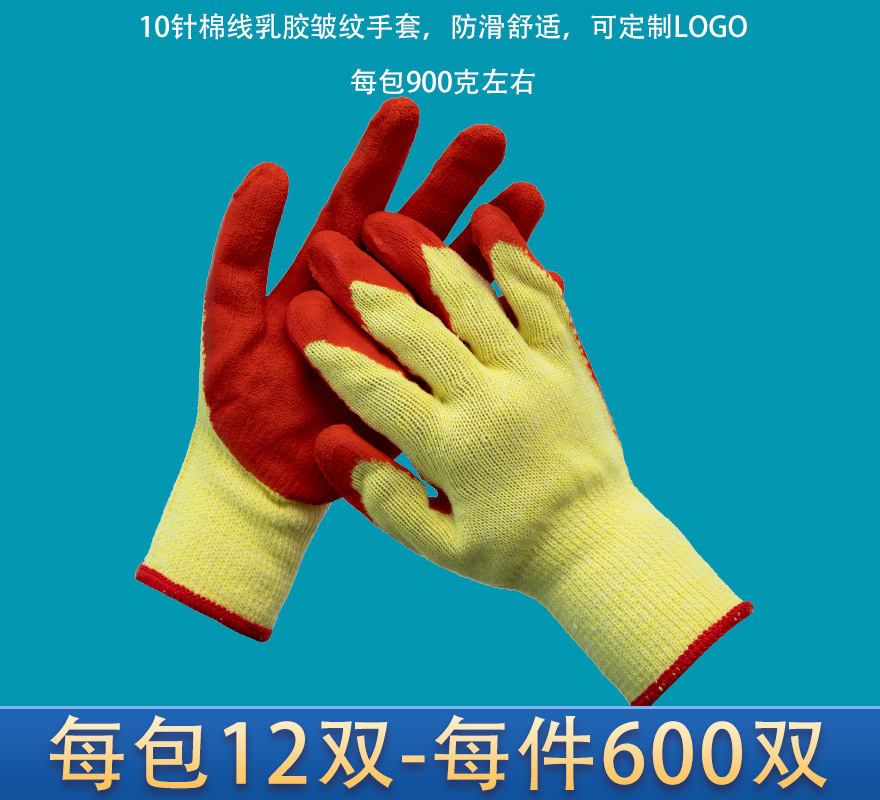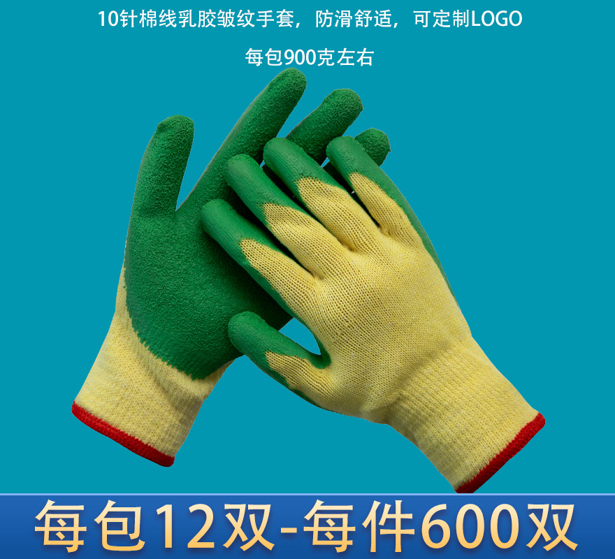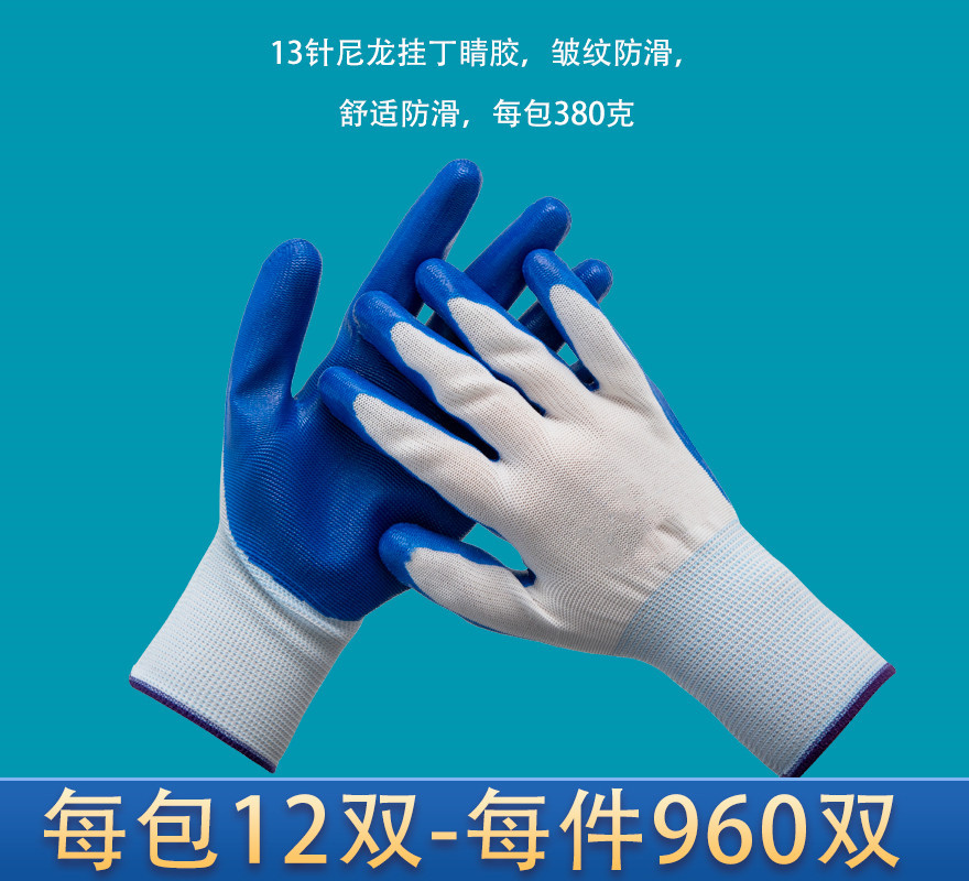 접착제가있는 노동 보호 장갑 Ding Qing 나일론 면사 걸이 접착제 방수 내유성 미끄럼 방지 Ding Qing 주름 라텍스 고무 장갑스토어 가기