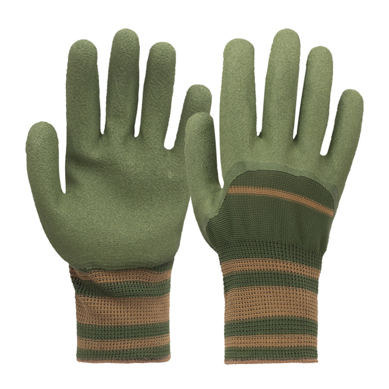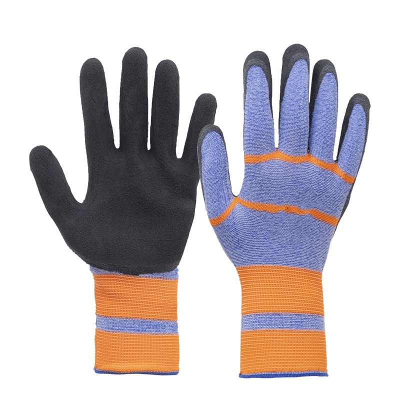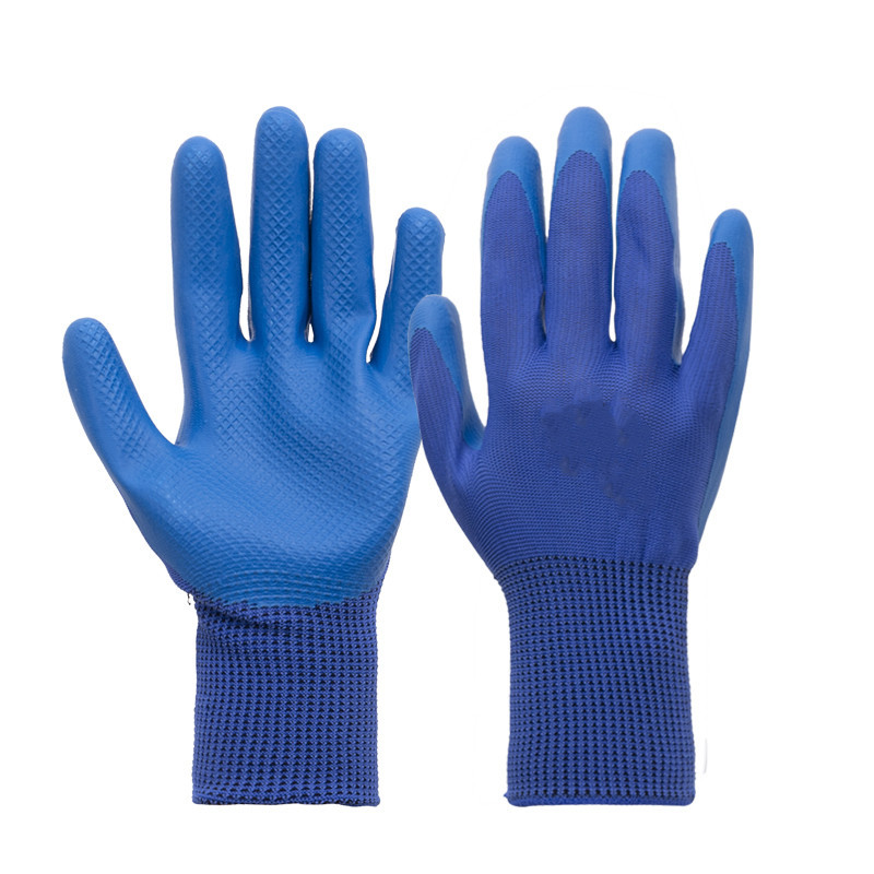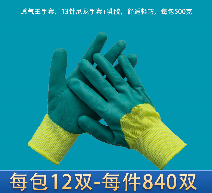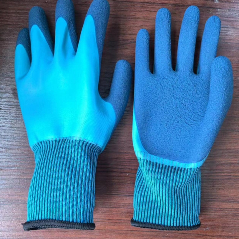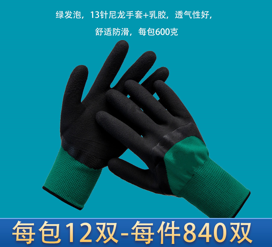 접착제가있는 노동 보호 장갑 Ding Qing 나일론 면사 걸이 접착제 방수 내유성 미끄럼 방지 Ding Qing 주름 라텍스 고무 장갑