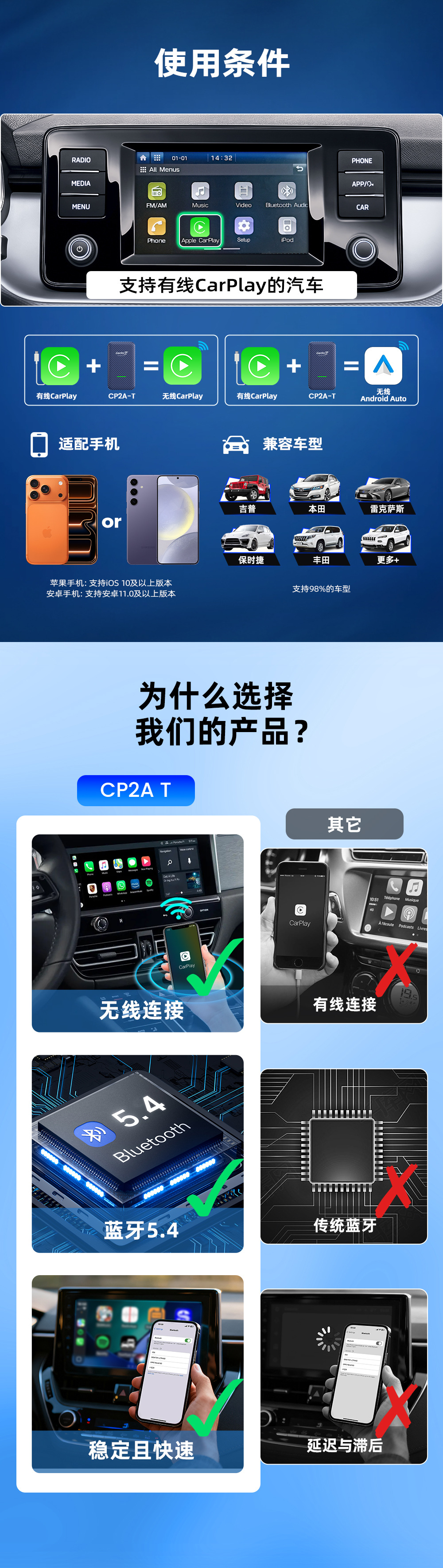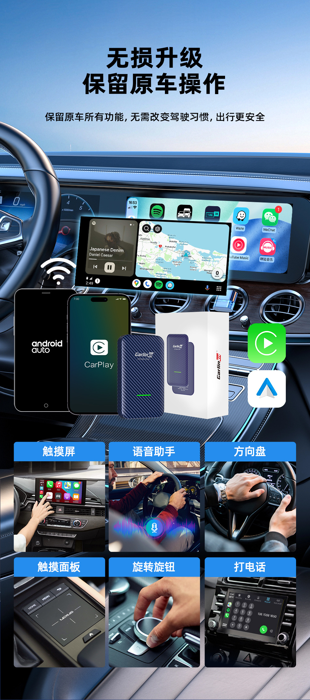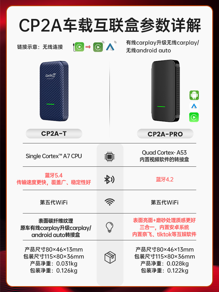 • 【CP2A-T】유선 카플레이를 무선 카플레이/안드로이드 자동 탄소 섬유 중립 모델로 업그레이드