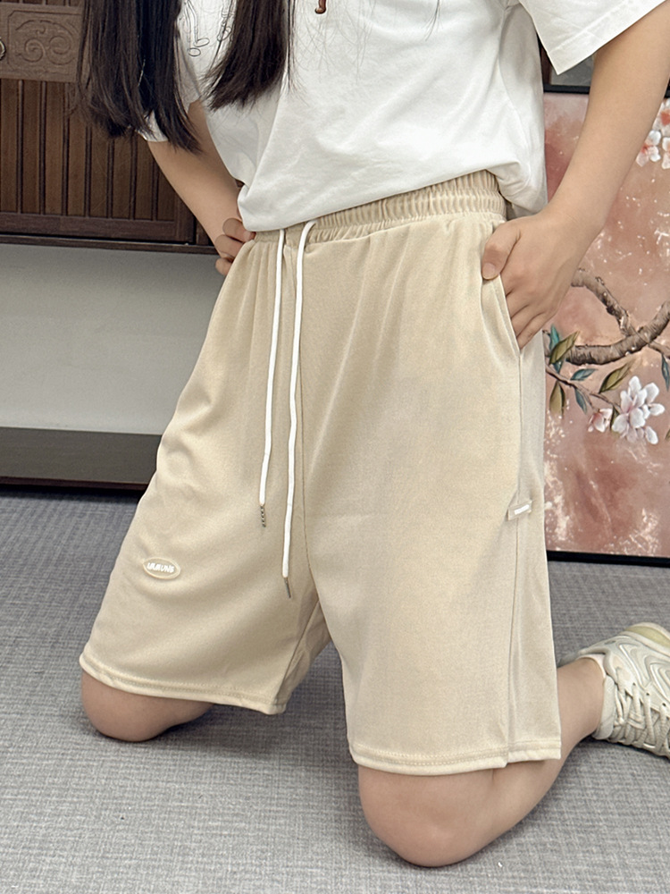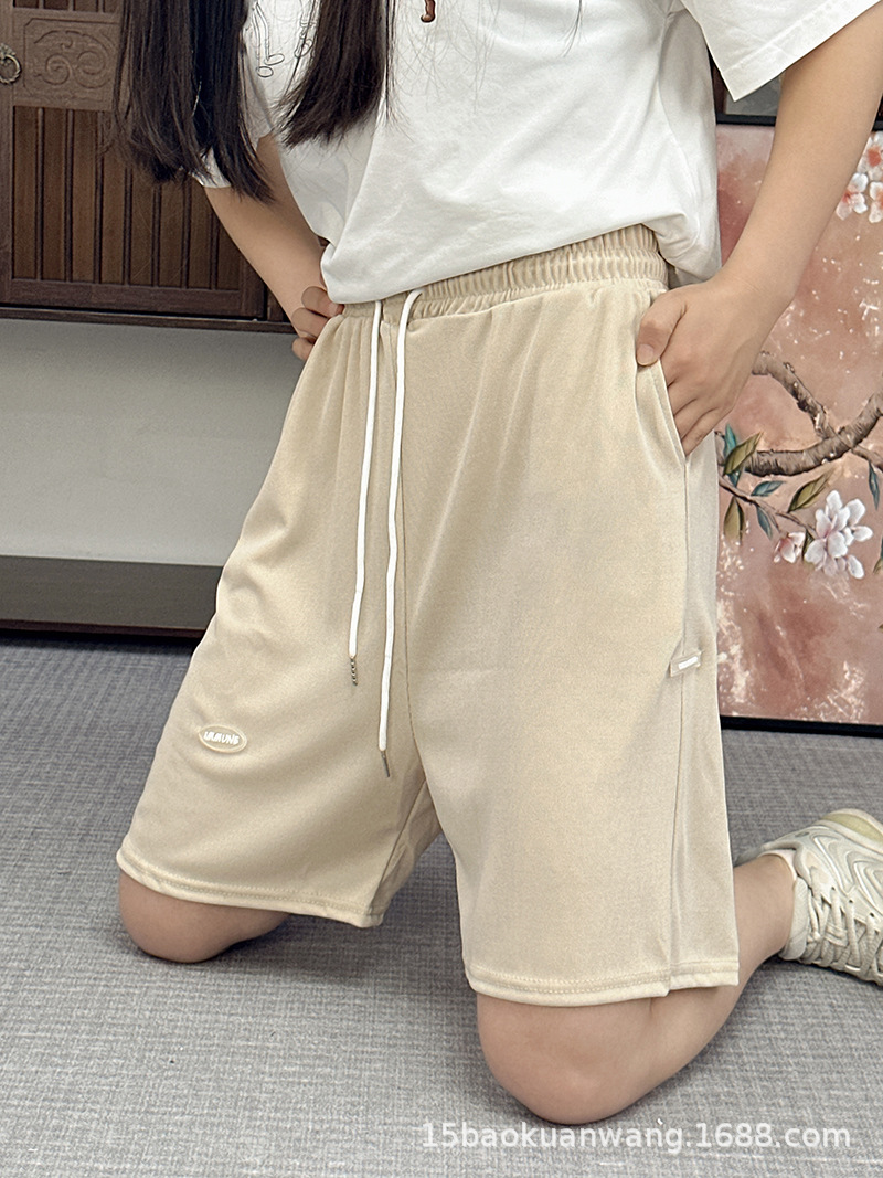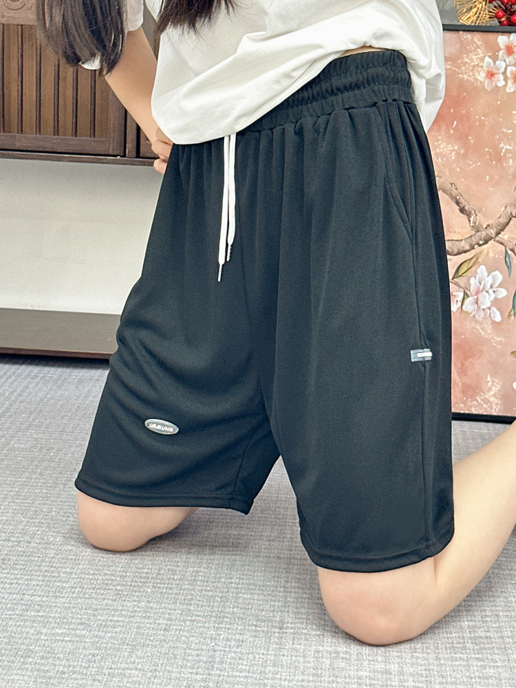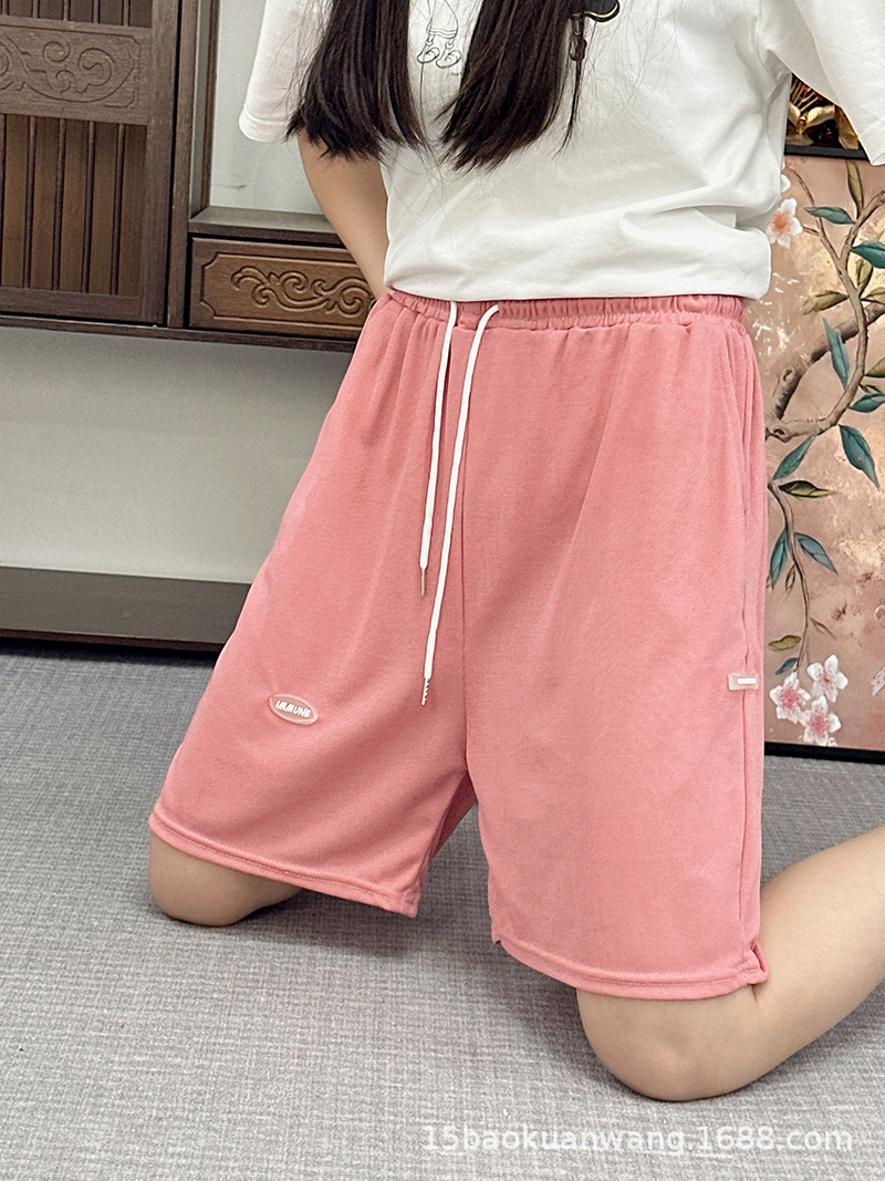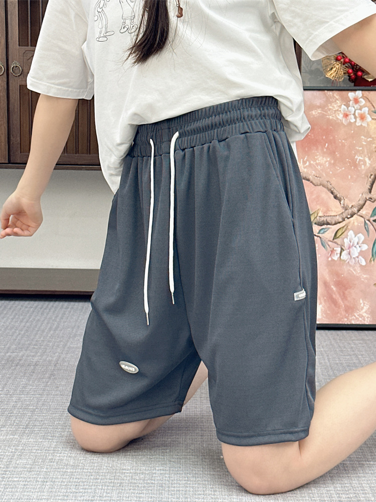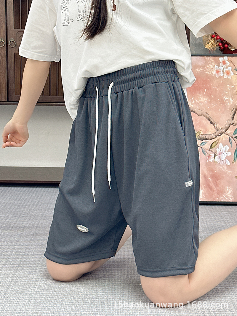 드로우 스트링 여름 아이스 실크 반바지 여성 핏 스트립 캐주얼 아우터웨어 스포츠 여성용 바지 느슨한 스트레이트 반바지 높은 허리