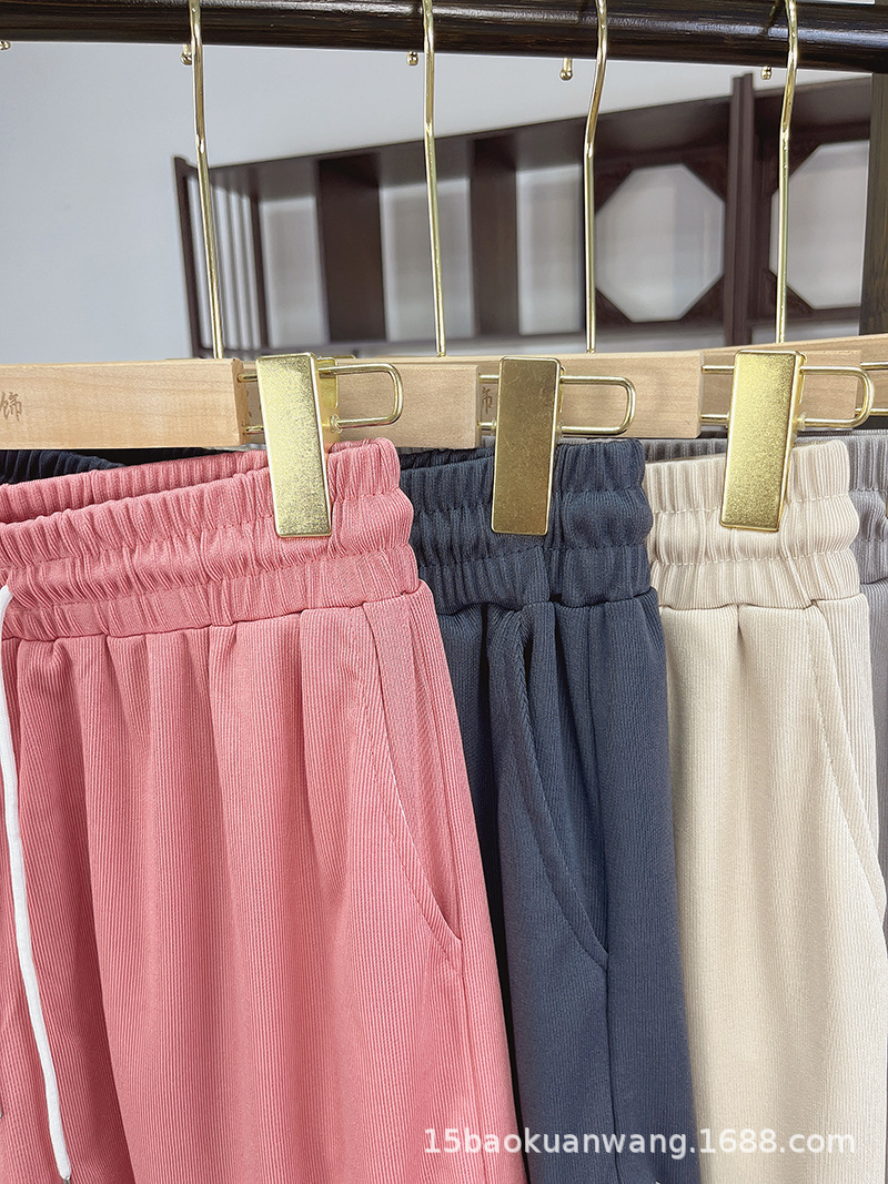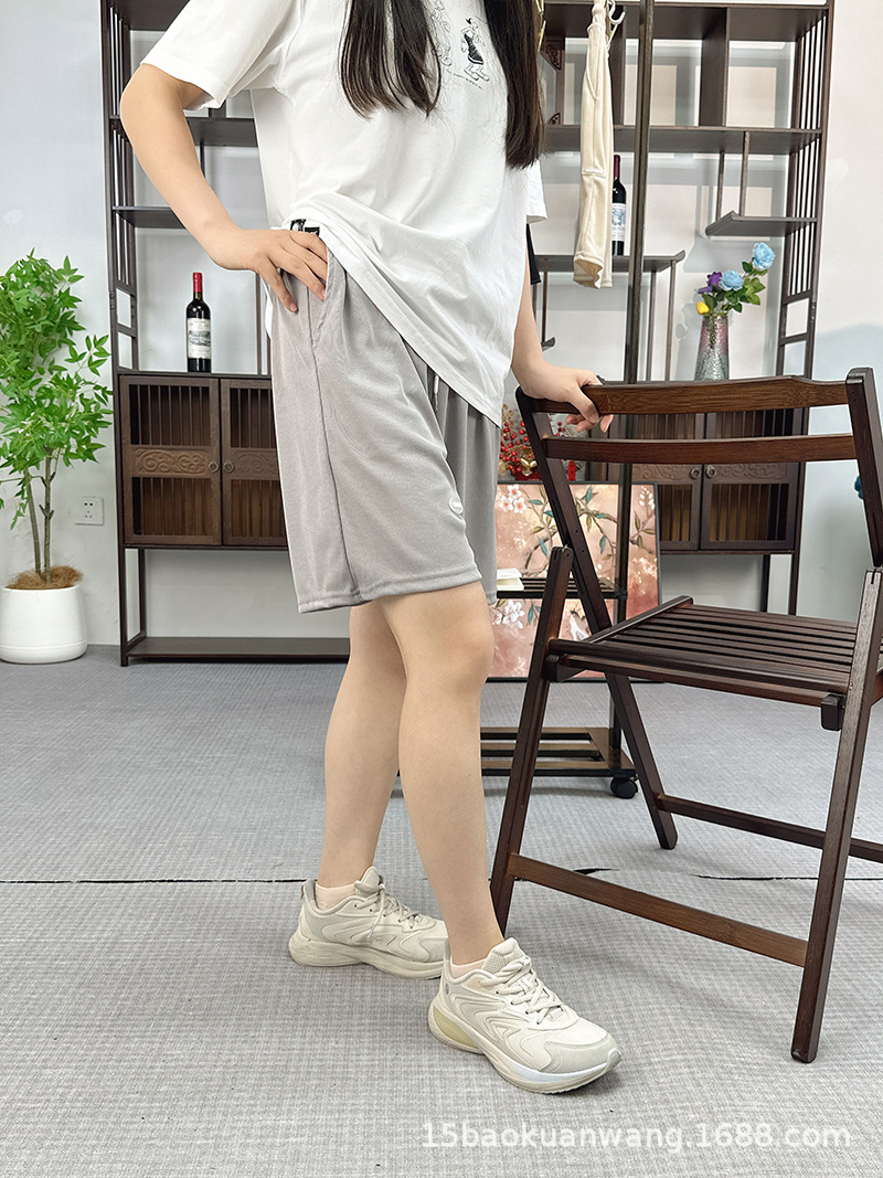 드로우 스트링 여름 아이스 실크 반바지 여성 핏 스트립 캐주얼 아우터웨어 스포츠 여성용 바지 느슨한 스트레이트 반바지 높은 허리스토어 가기