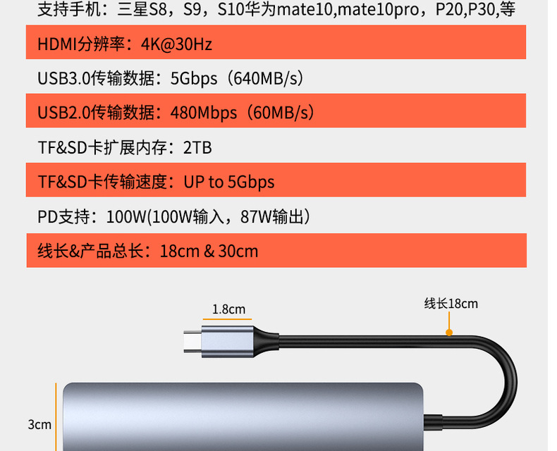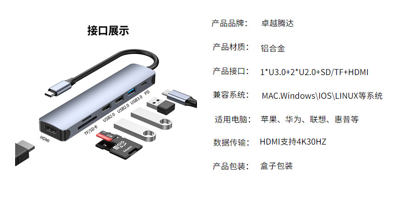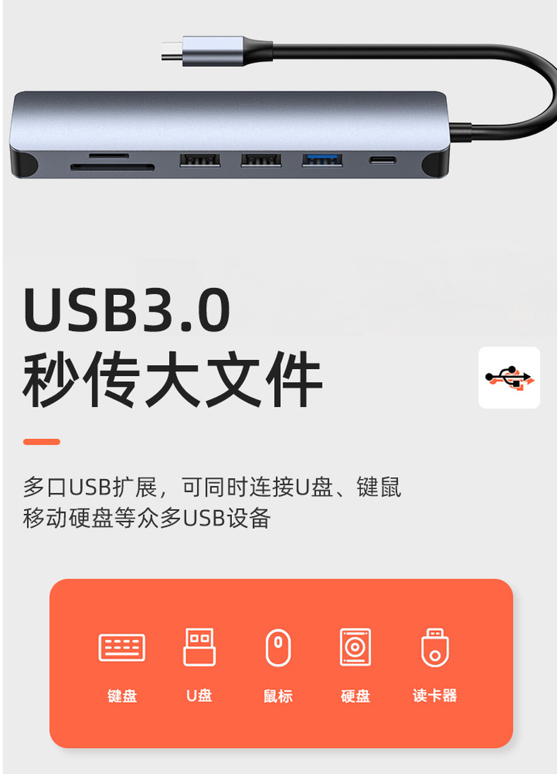 새로운 USB-c HUB3.0 확장 노트북 확장 허브 용 7-in -1 타입-c 도킹