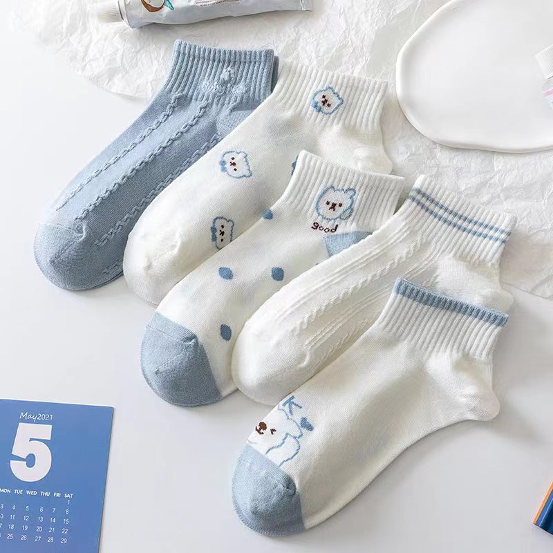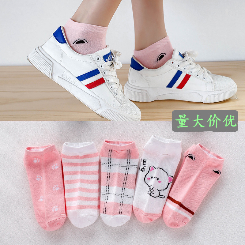 새로운 양말 여성 양말 봄과 여름 얇은 여성 보트 양말 일본 귀여운 얕은 양말 흰색 만화 짧은 양말
