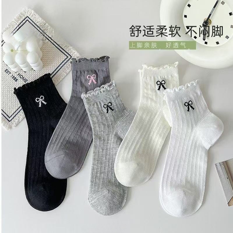 • MT5 신상 여성용 양말 4가지 색상 랜덤 1켤레 추가 [땡땡이 리본]