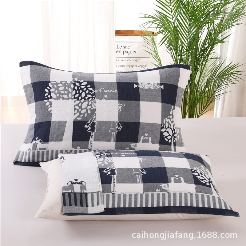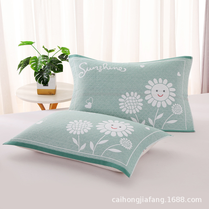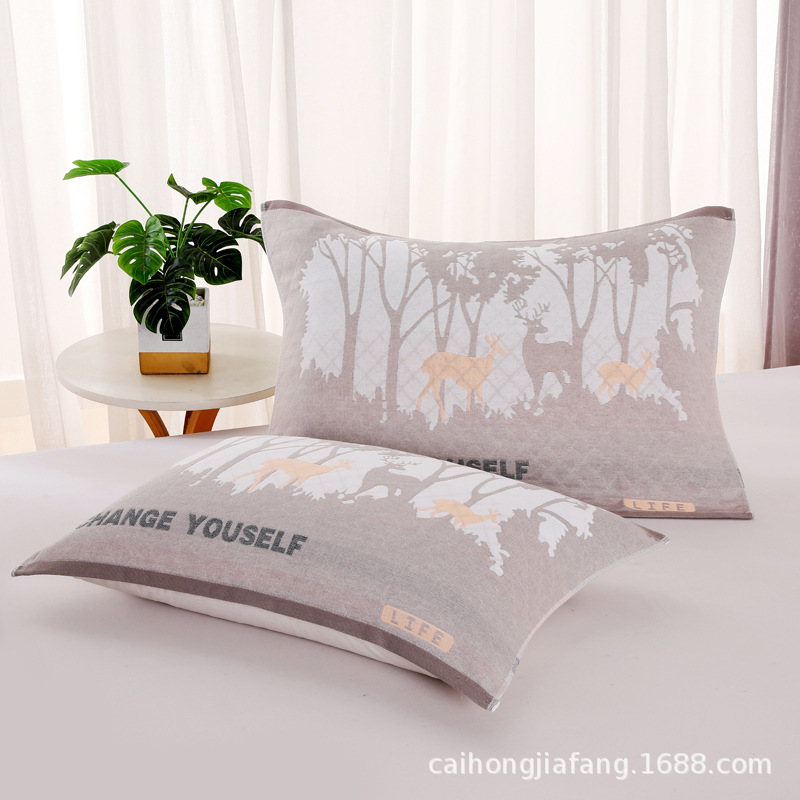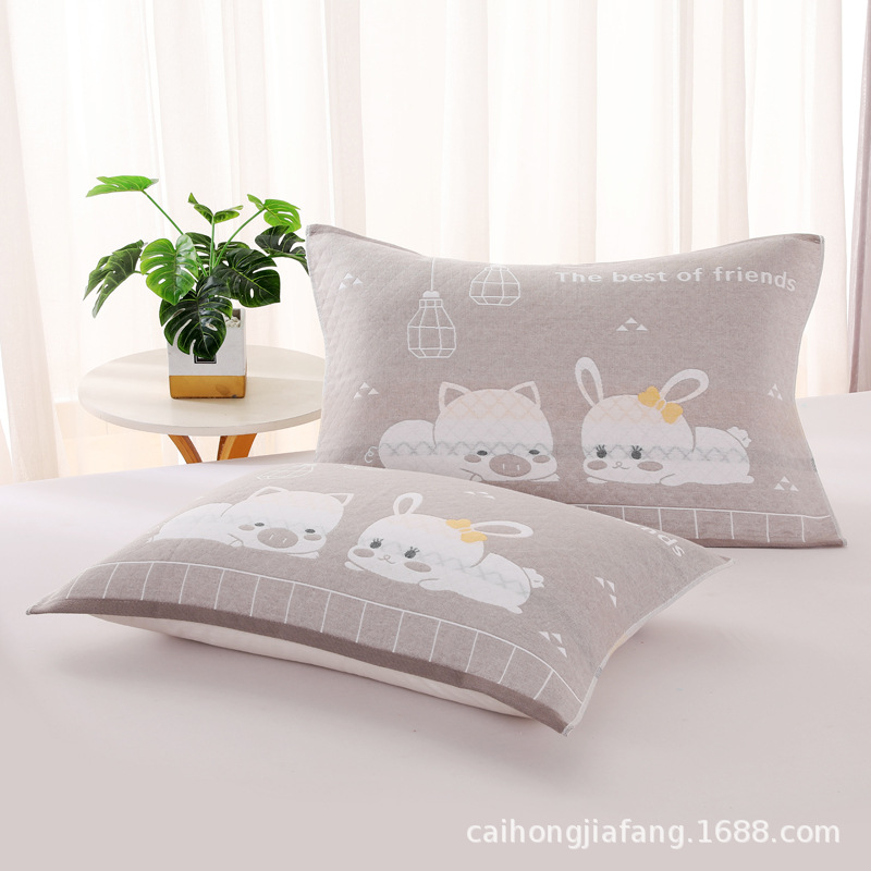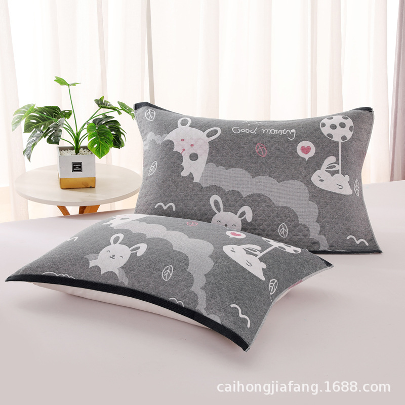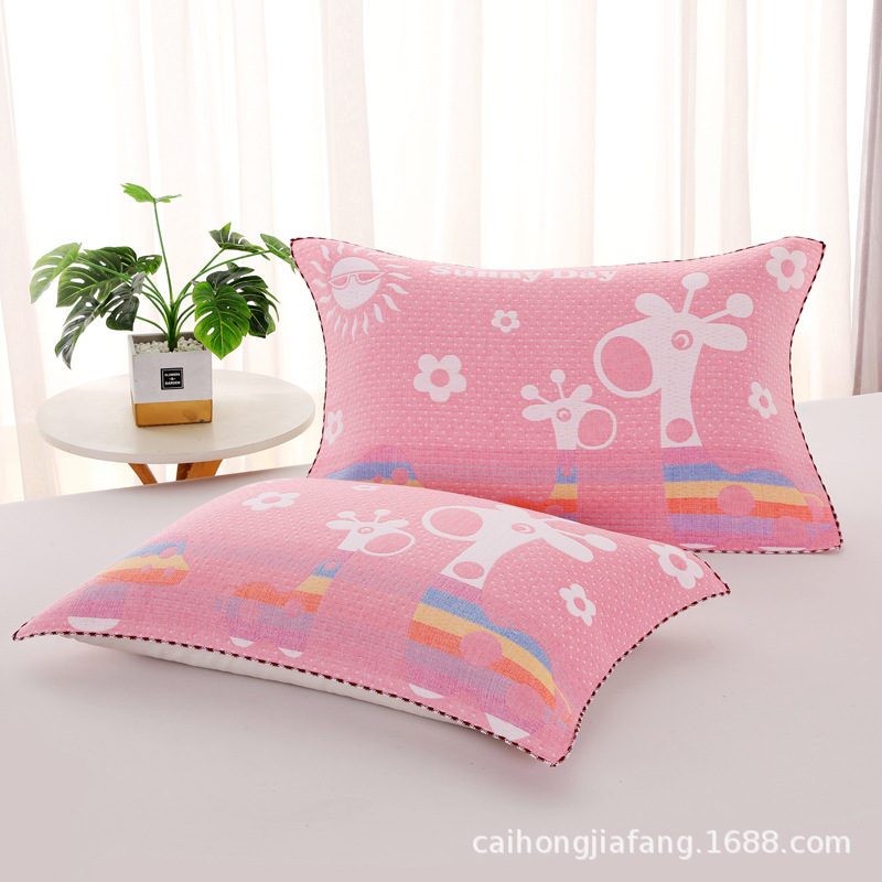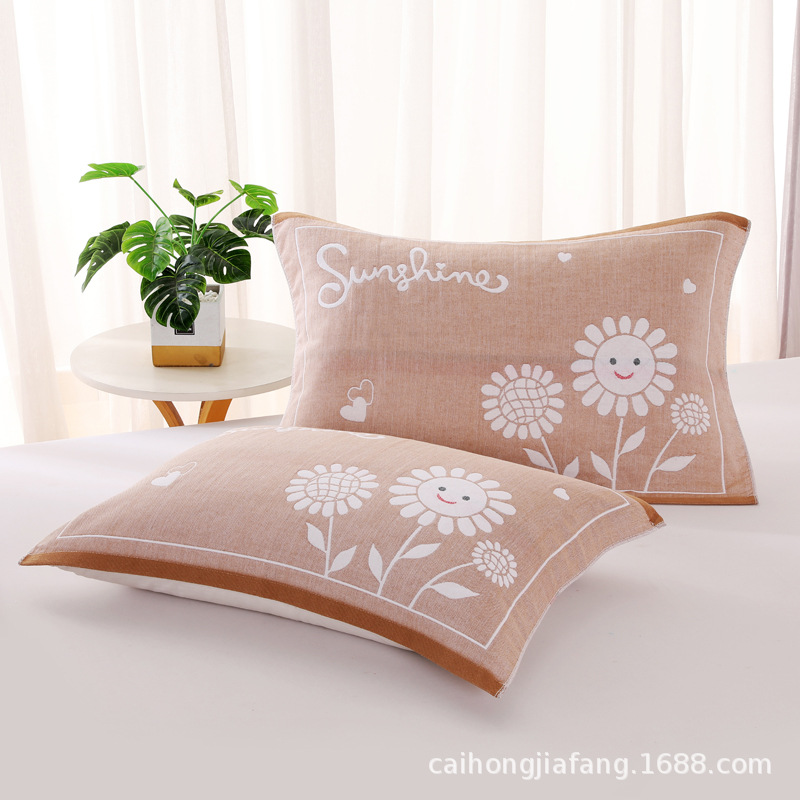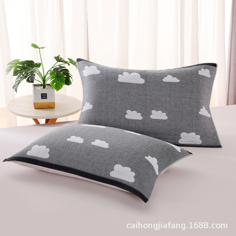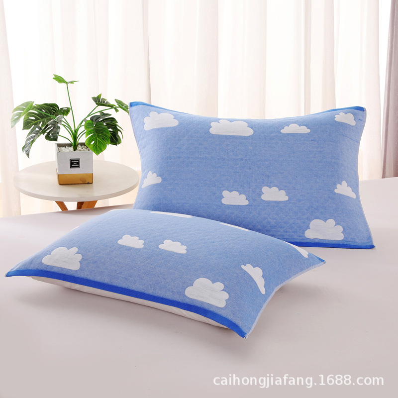 베갯잇 새로운 여름 인 스타일 심플 베개 타월 순면 면 거즈 쌍 두꺼운 3 층 어린이 싱글 더블스토어 가기