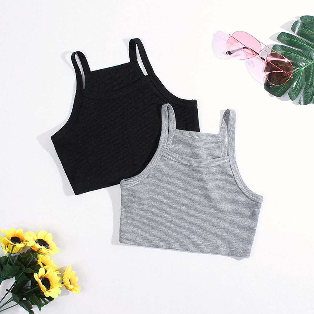 2022 새로운 여름 통기성 어린이 단색 면 조끼 소녀 캐미솔 어린이 바닥 유럽과 미국 핫스토어 가기