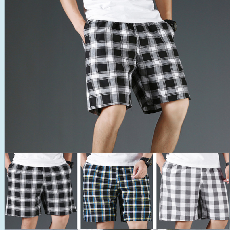 여름 해변 바지 남성용 느슨한 캐주얼 5 점 파자마 바지 플러스 사이즈 홈 체크 무늬 반바지 빠른 건조 대형 반바지 얇은면스토어 가기