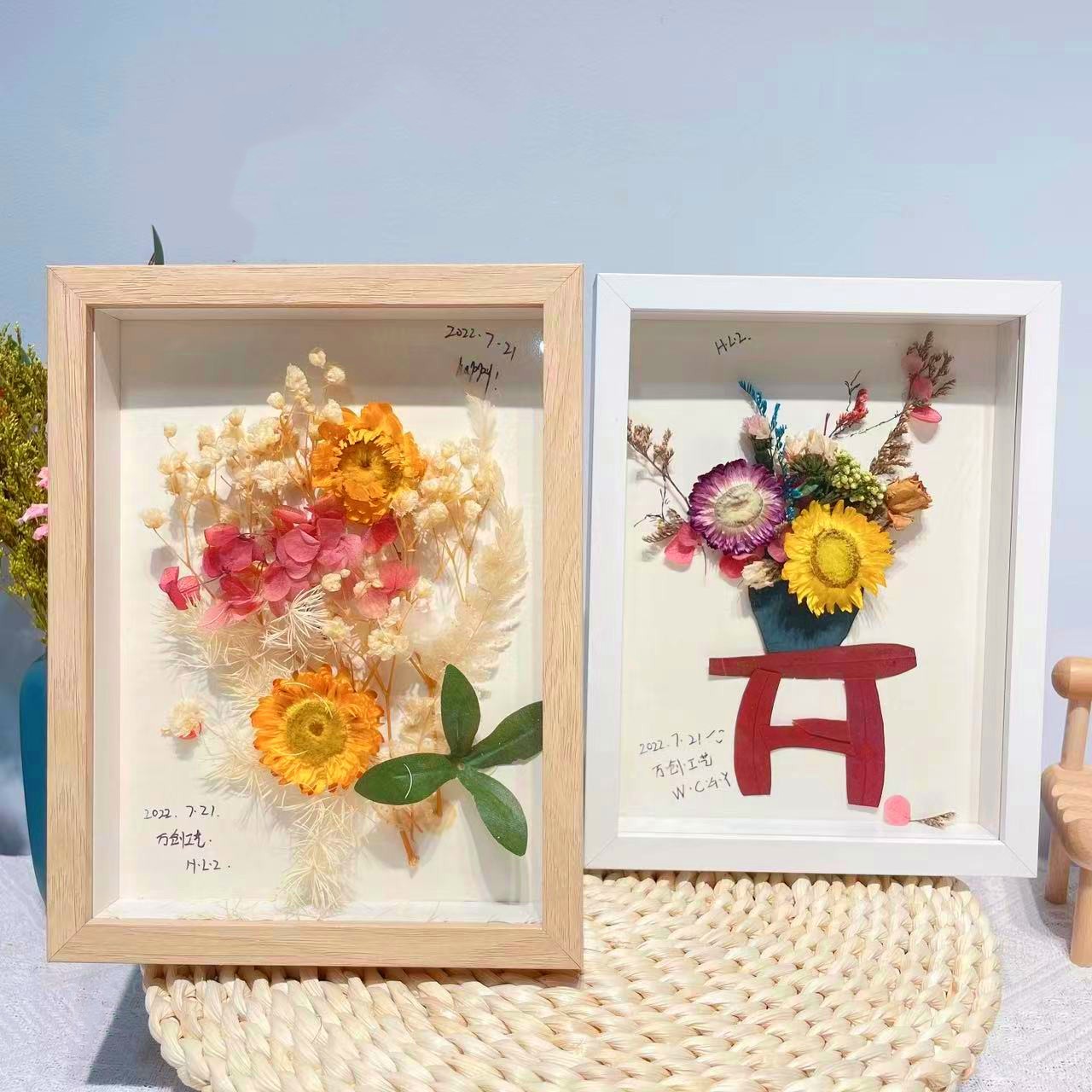 母亲节团建干花相框手工diy木质中空立体双面透明亚克力摆台批发