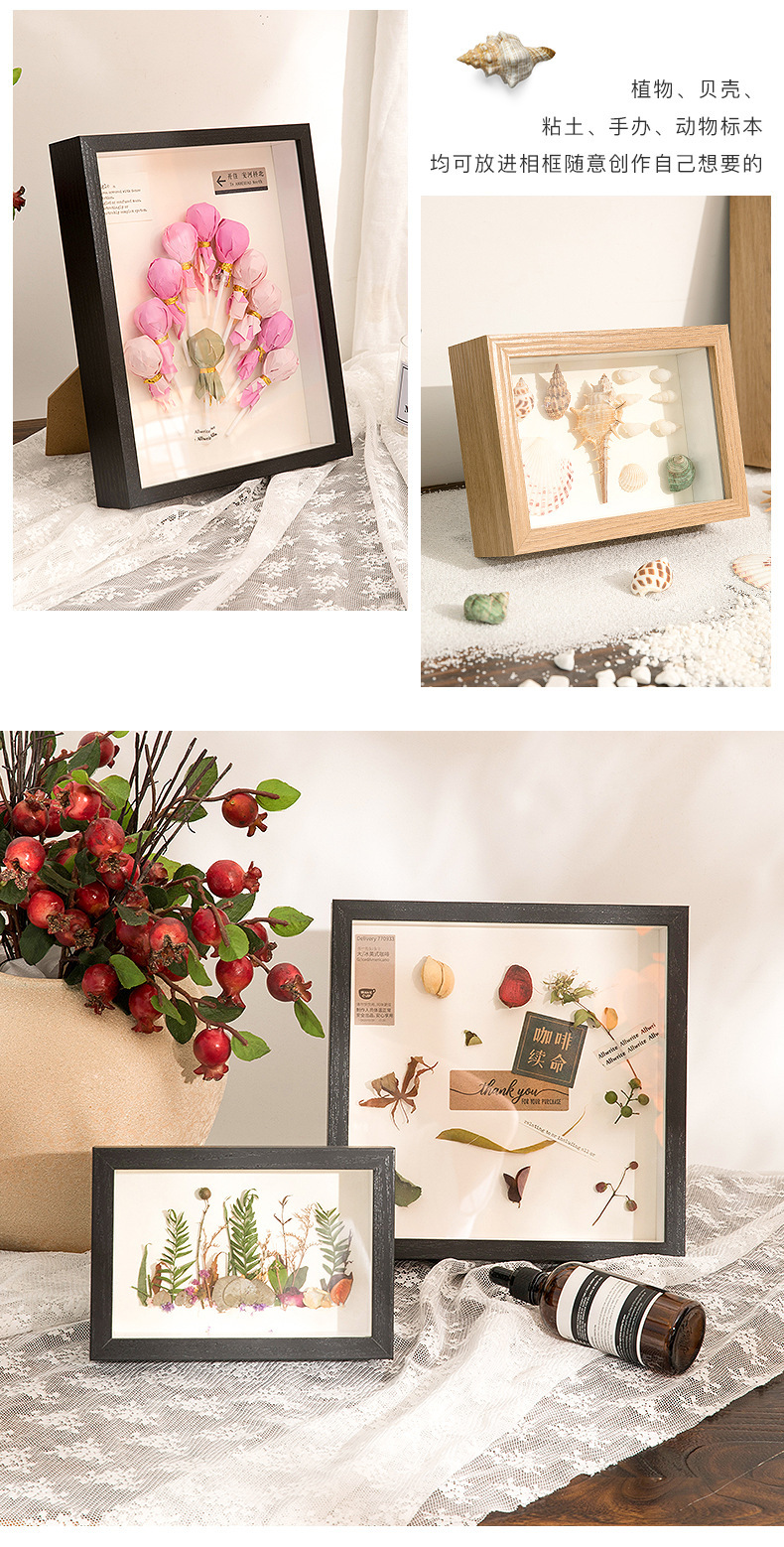 中空3cm立体北欧相框手工diy装裱植物干花贝壳正方形四九宫格画框