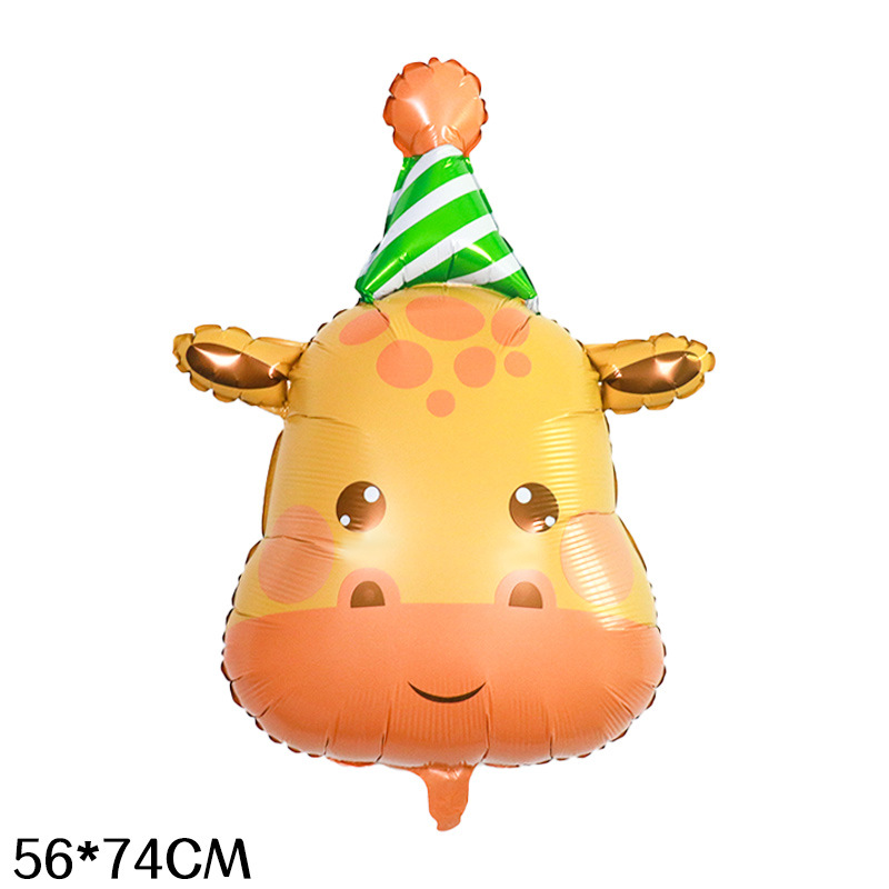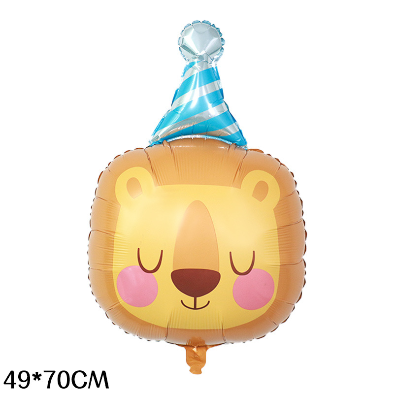 새로운 만화풍 숲속 동물 알루미늄 필름 풍선 생일 모자 사자 호랑이 기린 Q버전 귀여운 동물스토어 가기