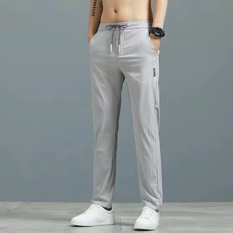 남성용 아이스 실크 바지 여름 얇은 비즈니스 캐주얼 바지 신축성 통기성 한국 스타일 스트레이트 핫셀링 스포츠 바지