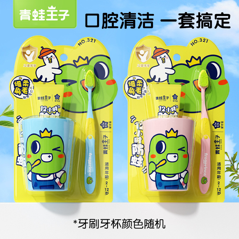 개구리 왕자 어린이 치약 칫솔 컵 세트 3-5-6-12세 이상 치아교정기용 구강세정컵