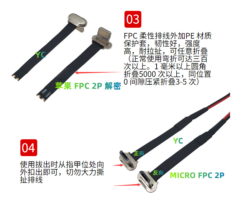 TYPE-C双向FPC排线公头对公头 安卓转苹果转type-c双头充电传数据
