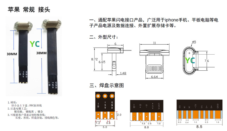 苹果iPhone无线充电公头FPC软排线2P解密带IC快充 手机支架尾插头