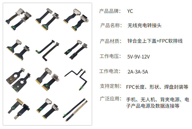公头type-c带排线 TYPE-C无线充电接头FPC软排线2P正负极3P带电阻