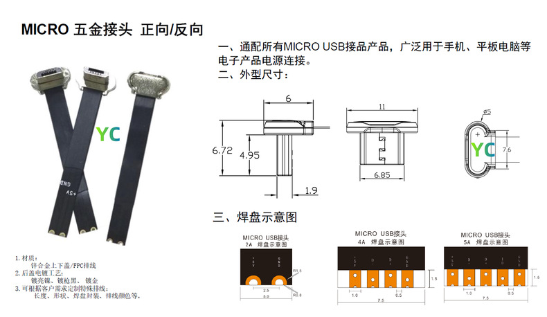 안드로이드 무선 충전 남성 FPC 소프트 케이블 충전 데이터 전송 MICRO 모바일 전원 백 클립 케이블 용접 케이블